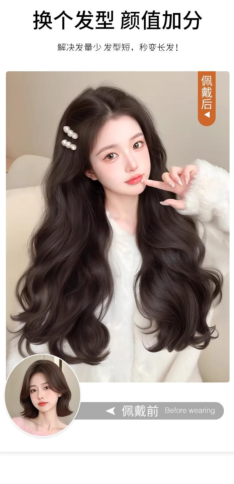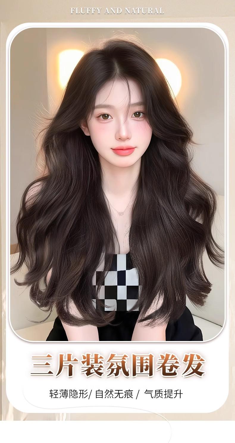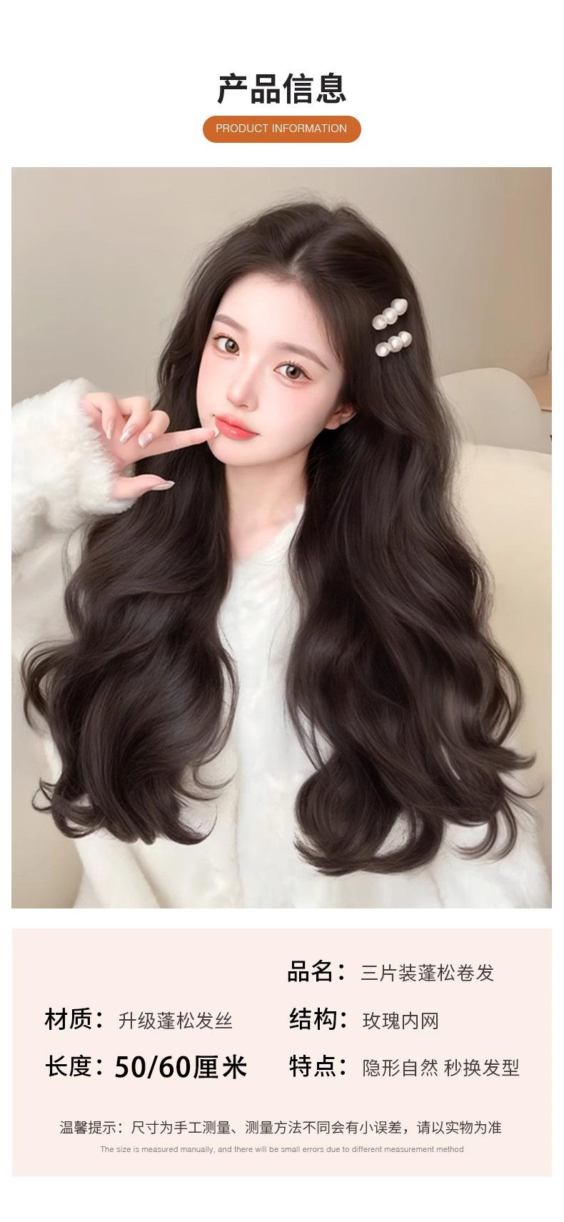 Peluca de cabello rizado con ondas grandes, pieza de tres piezas, extensión de cabello, volumen, reemplazo de cabello esponjoso, simulación de cabello largo para mujer, extensión de cabello corto, artefacto