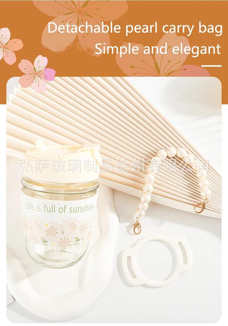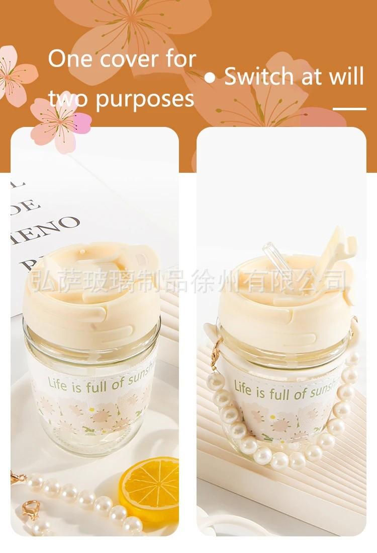 Compra Taza doble para beber con regalo de mano, taza de vidrio de alta apariencia, taza de perla, taza con pajita, taza de agua de regalo pequeña, taza de café para niña al por mayor en Joom.pro