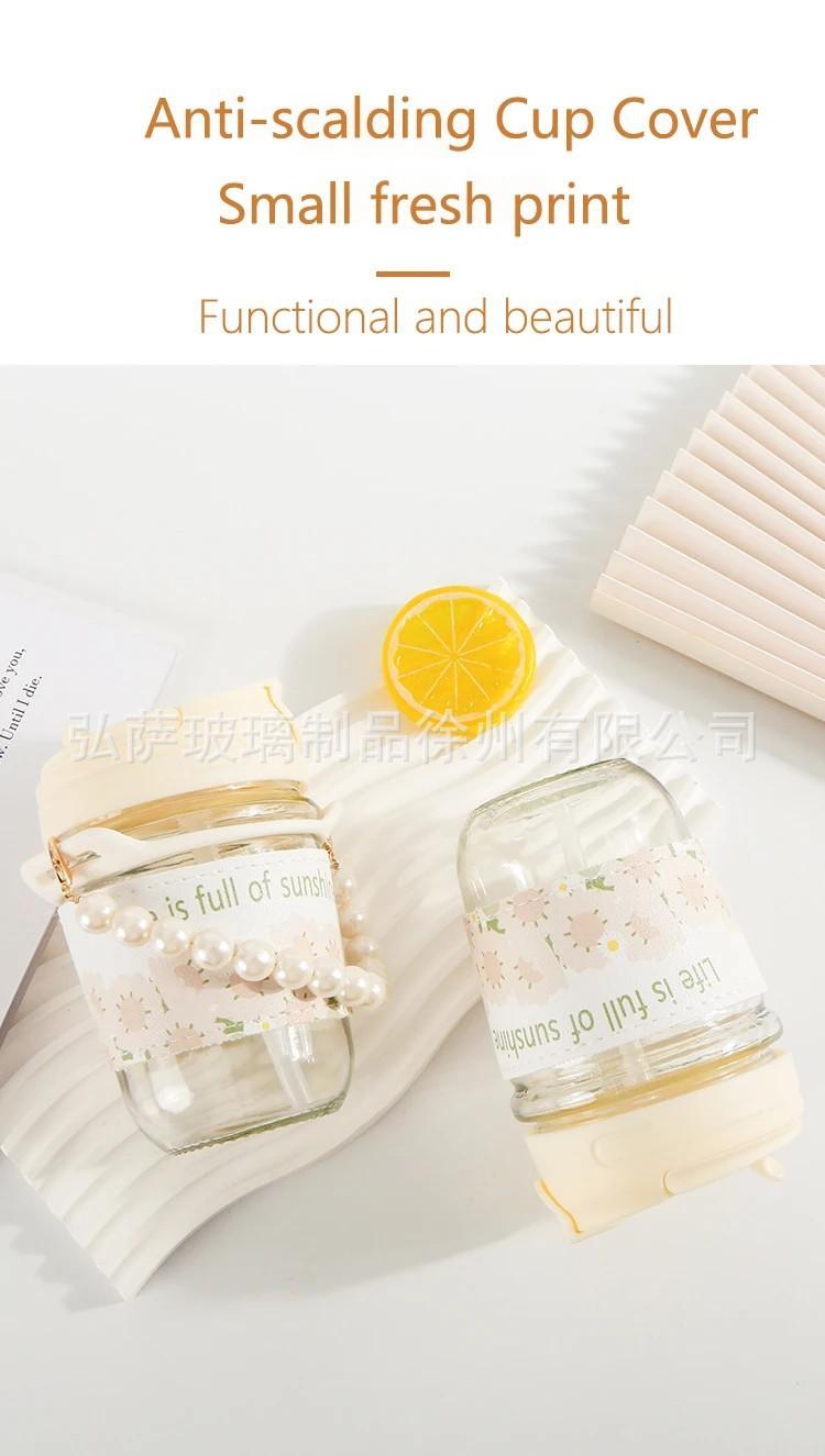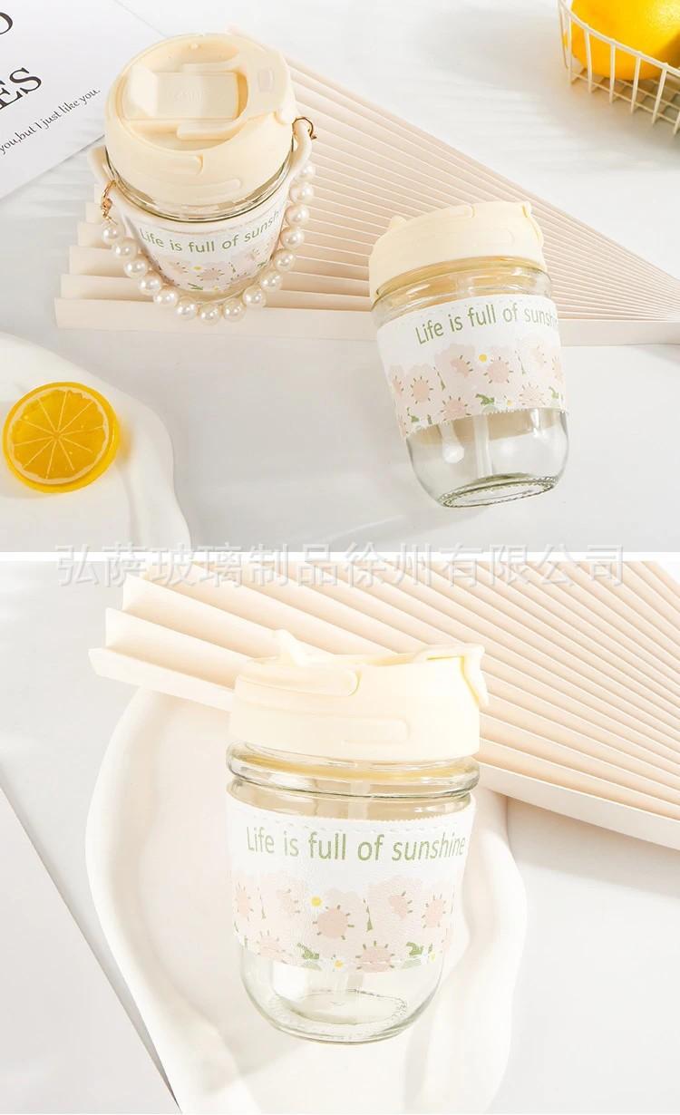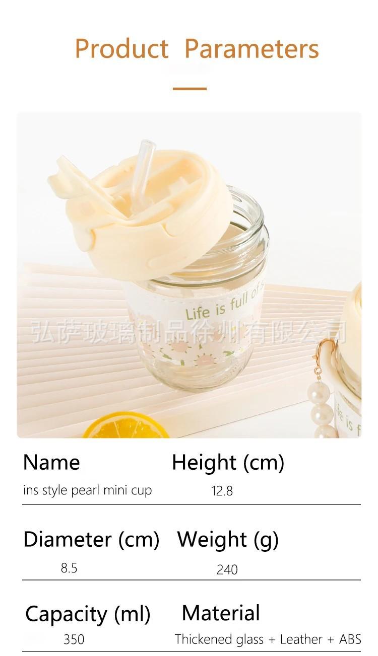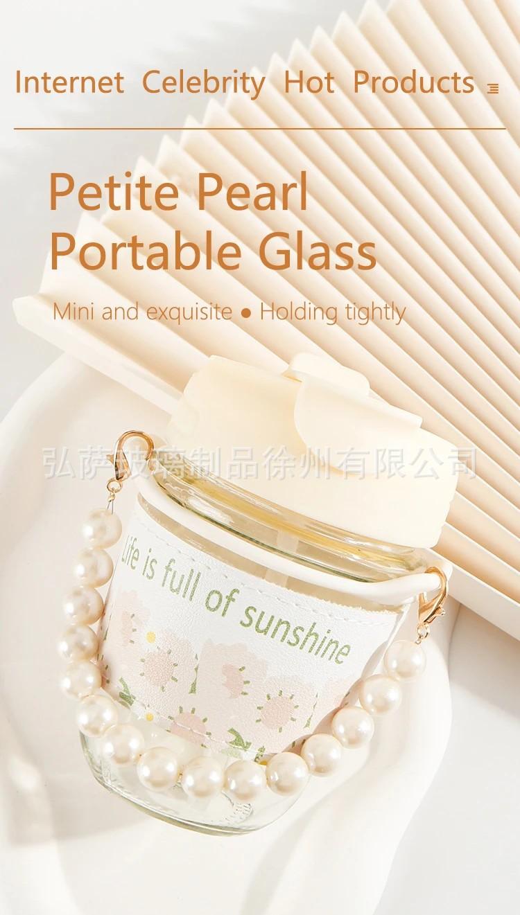 Taza doble para beber con regalo de mano, taza de vidrio de alta apariencia, taza de perla, taza con pajita, taza de agua de regalo pequeña, taza de café para niña