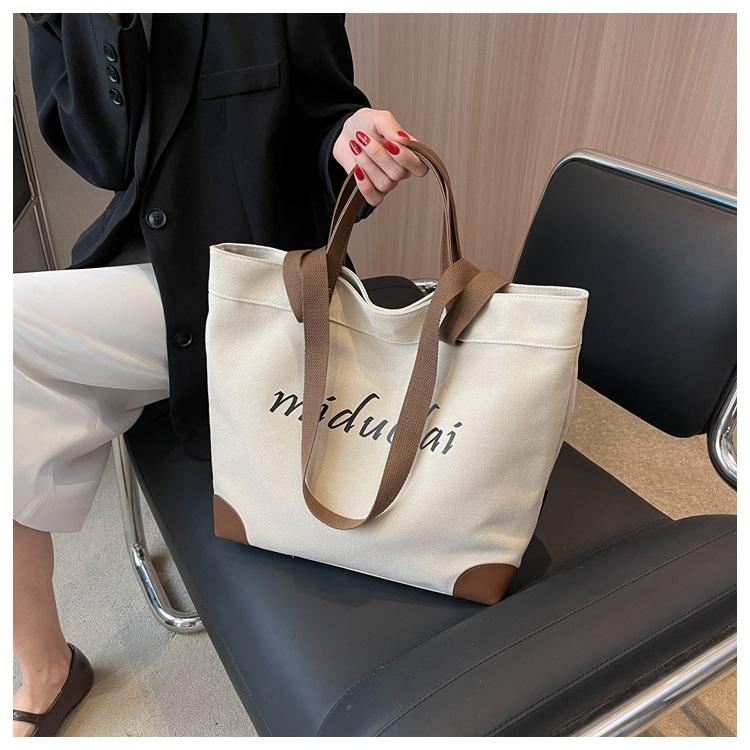 Bolso de lona para mujer, gran capacidad, novedad de 2023, bolso de hombro sencillo y combinable para verano, bolso de tela, bolso de mano para ir al trabajo.