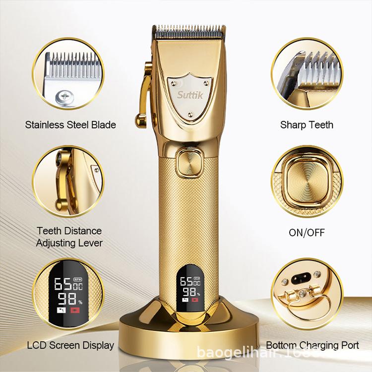Cortadora eléctrica transfronteriza, cabezal de afeitado, base de carga doméstica, pantalla digital LCD, cortadora de cabello eléctrica inteligente de alta potencia