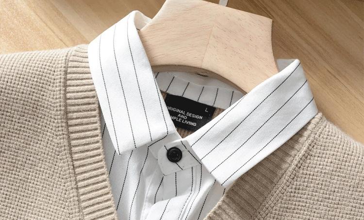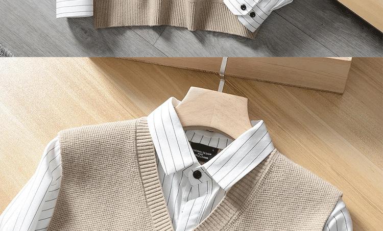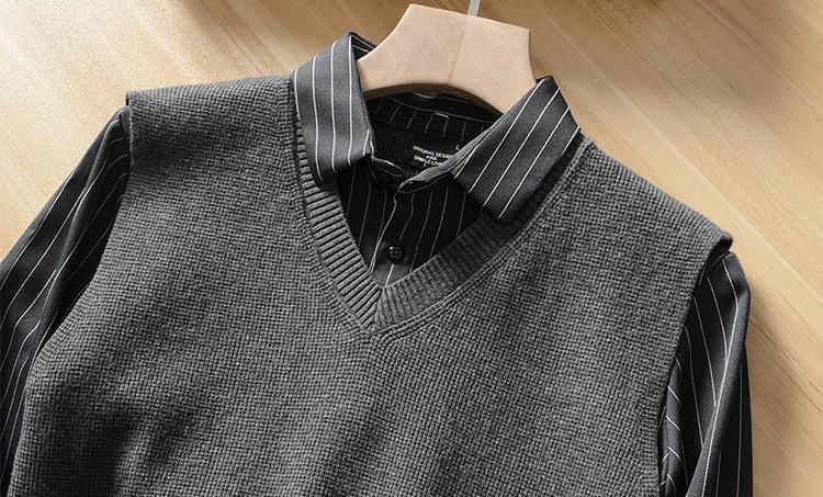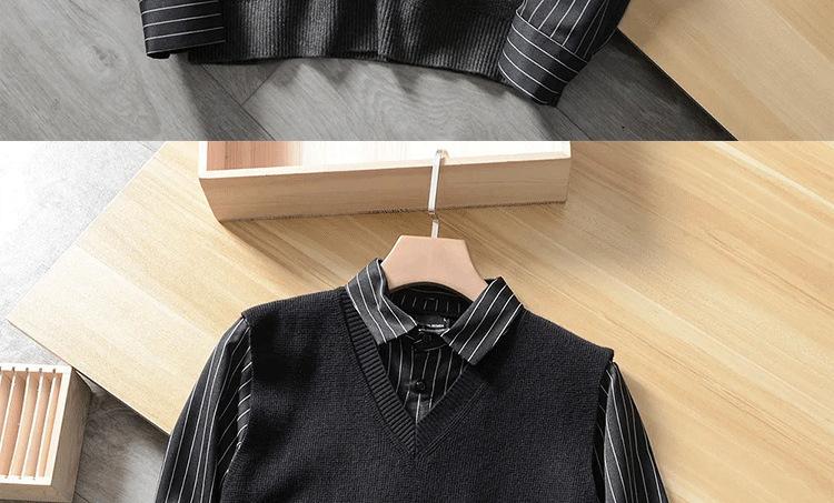 Suéter de hombre, camisa informal con cuello alto, novedad de otoño e invierno de 2023, suéter de camisa de dos piezas falso de manga larga para jóvenes