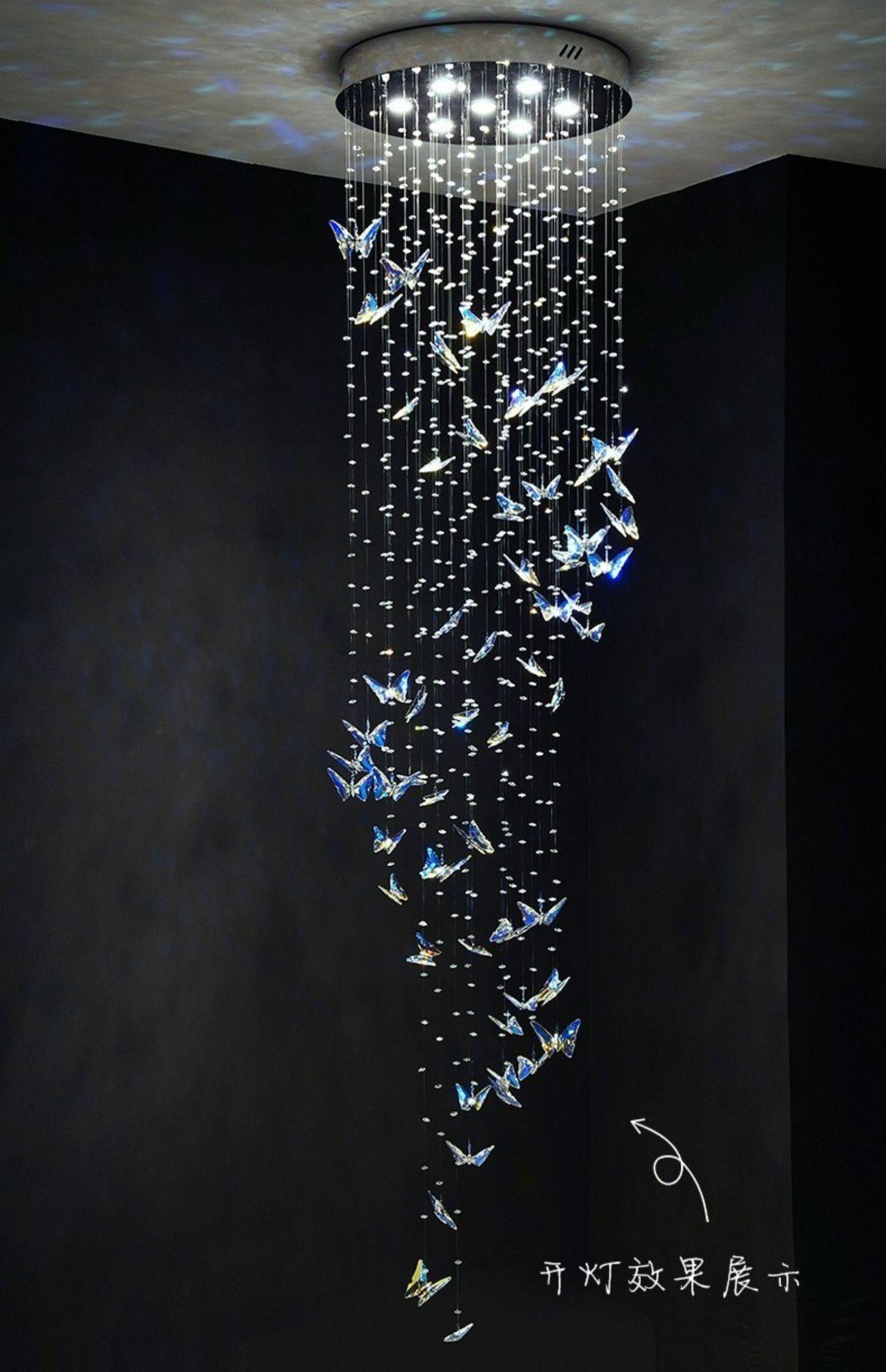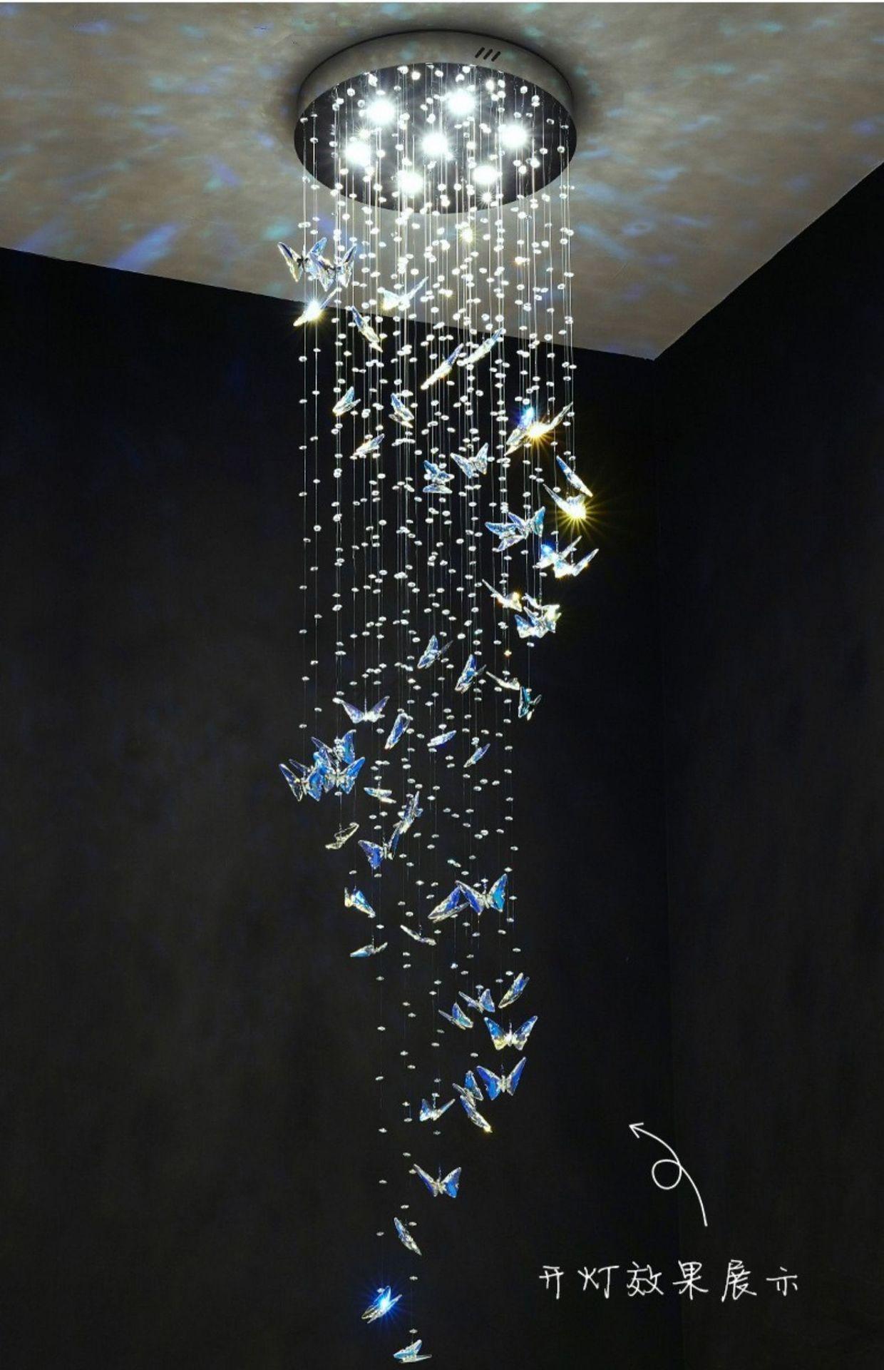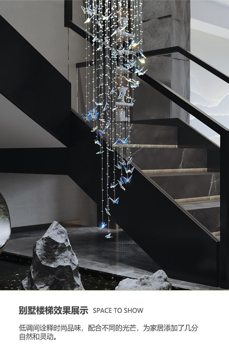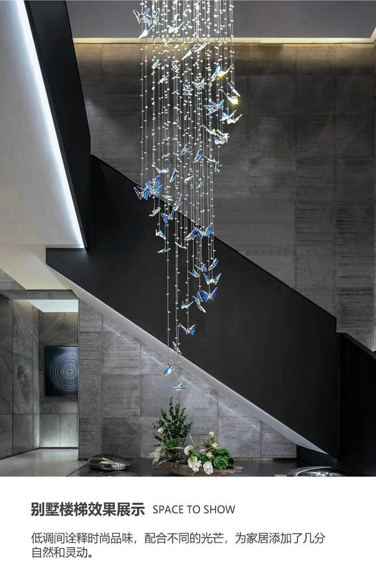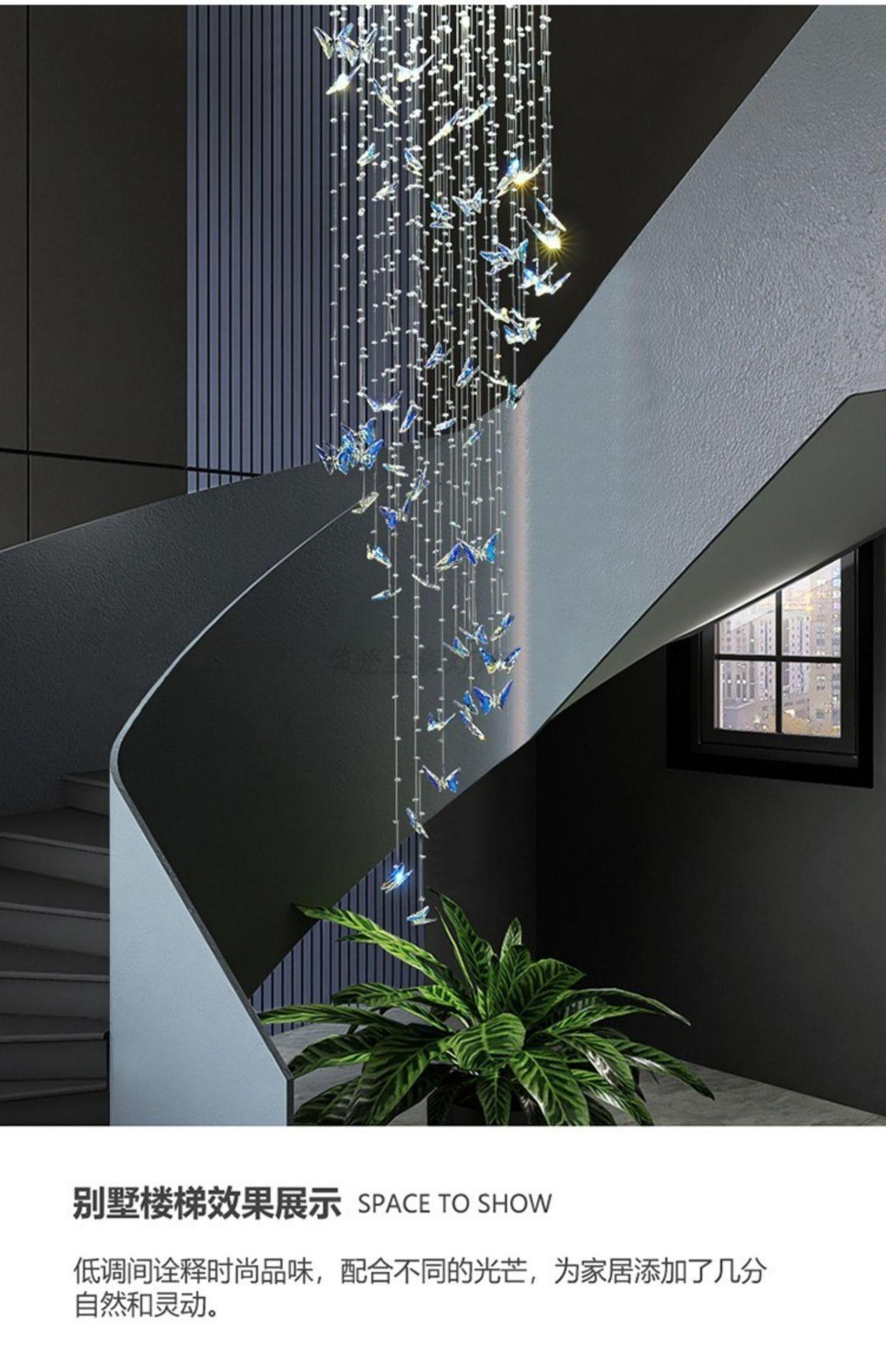 Lámpara de araña de escalera, lámpara de araña larga, lámpara decorativa de cristal de mariposa, lámpara de ingeniería giratoria para edificio dúplex, villa, hotel y club