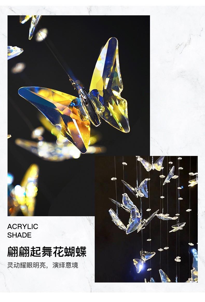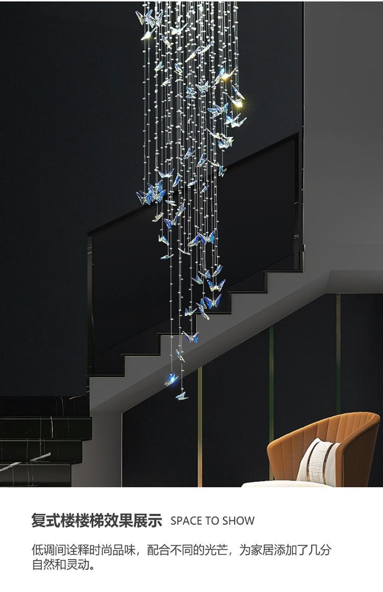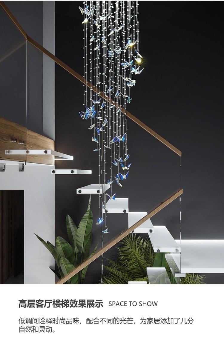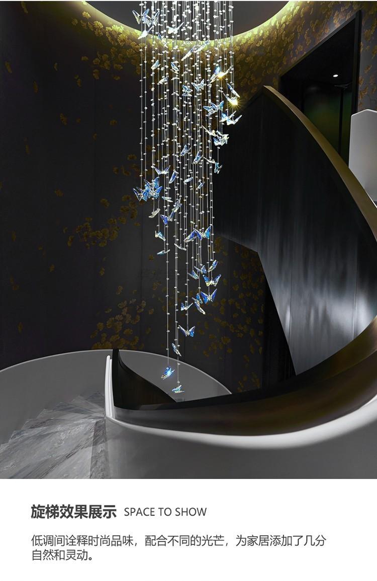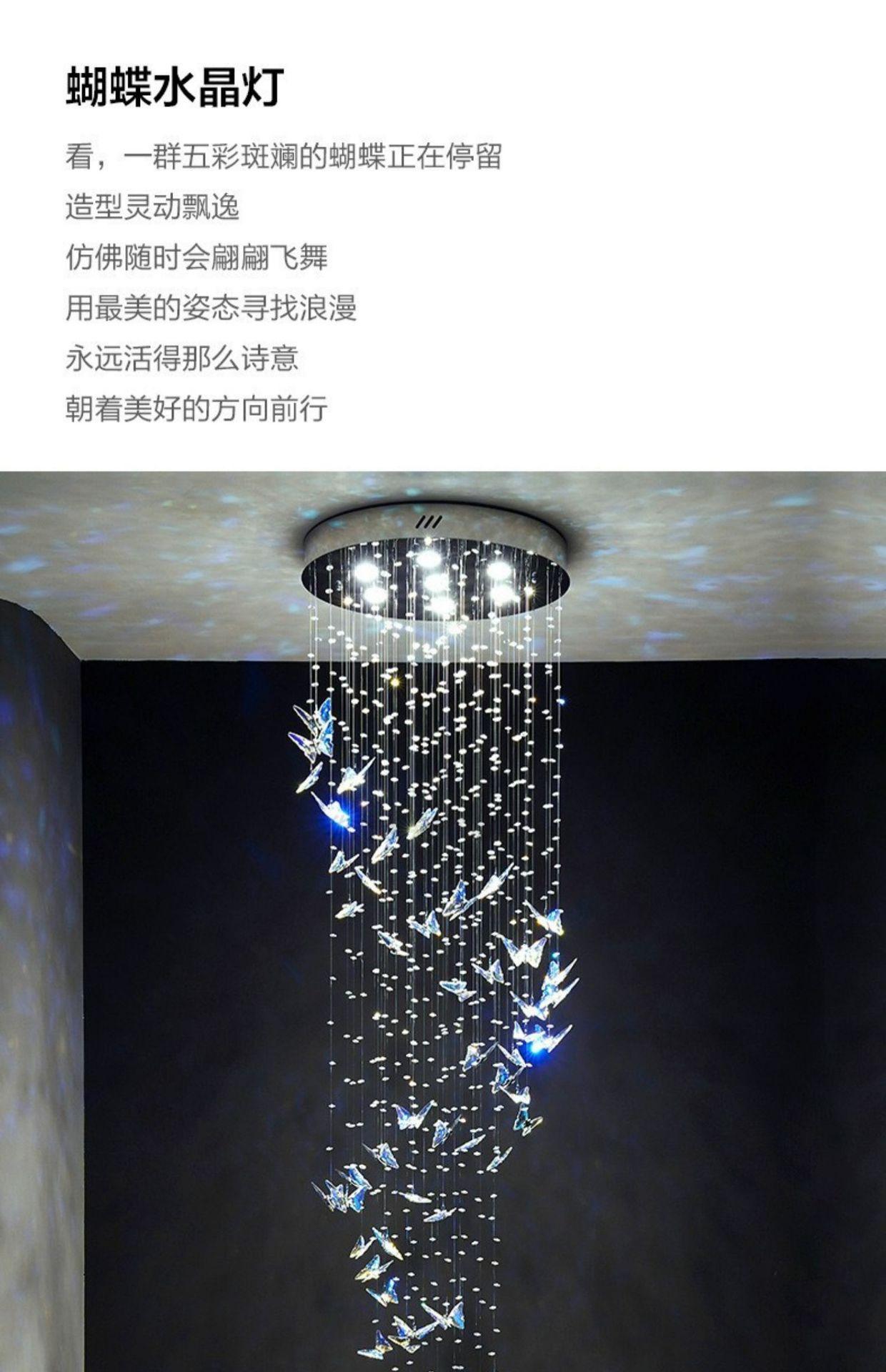 Lámpara de araña de escalera, lámpara de araña larga, lámpara decorativa de cristal de mariposa, lámpara de ingeniería giratoria para edificio dúplex, villa, hotel y club