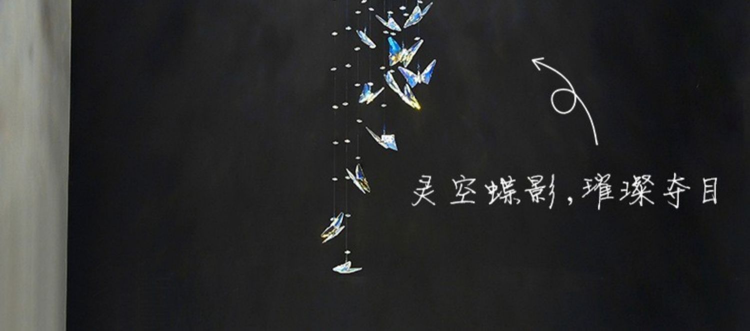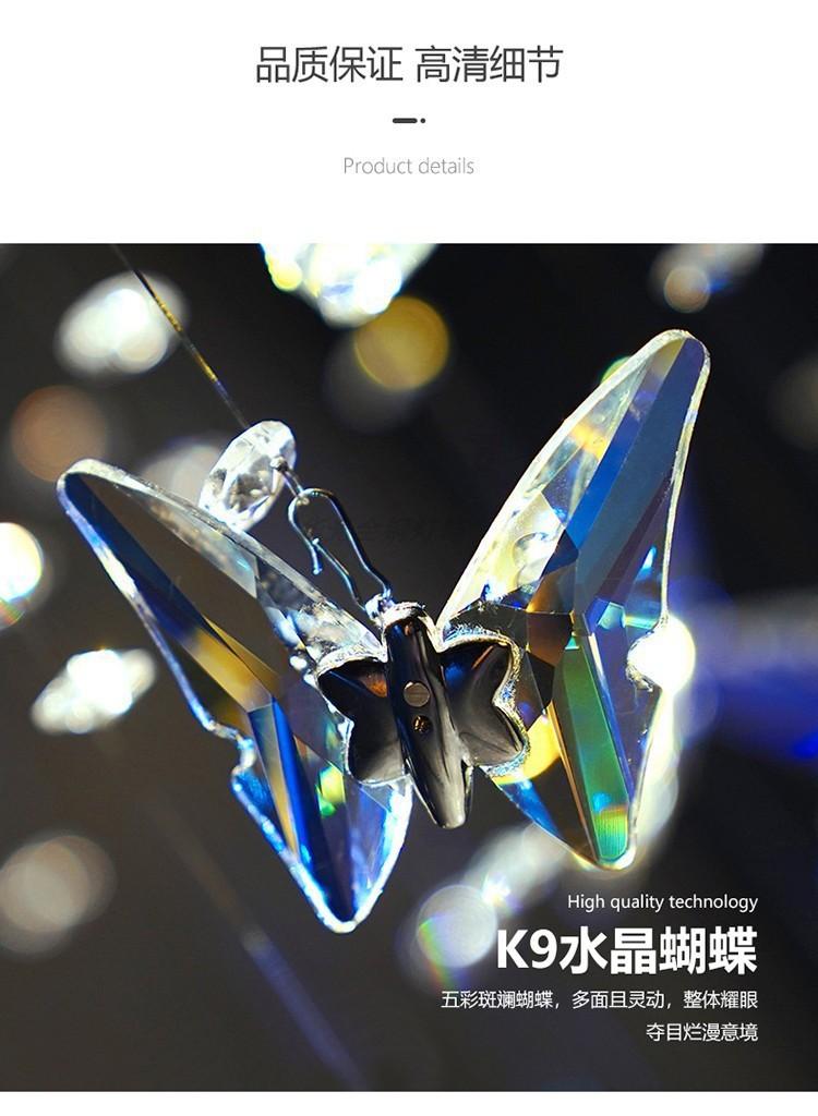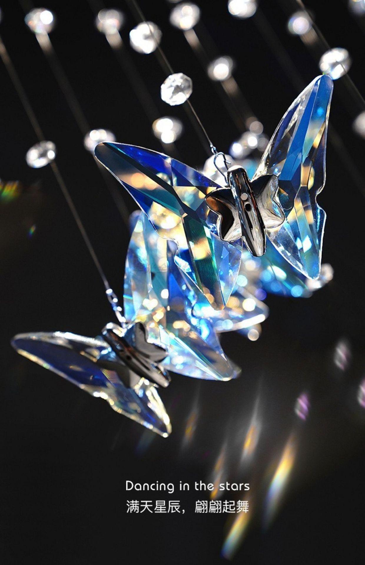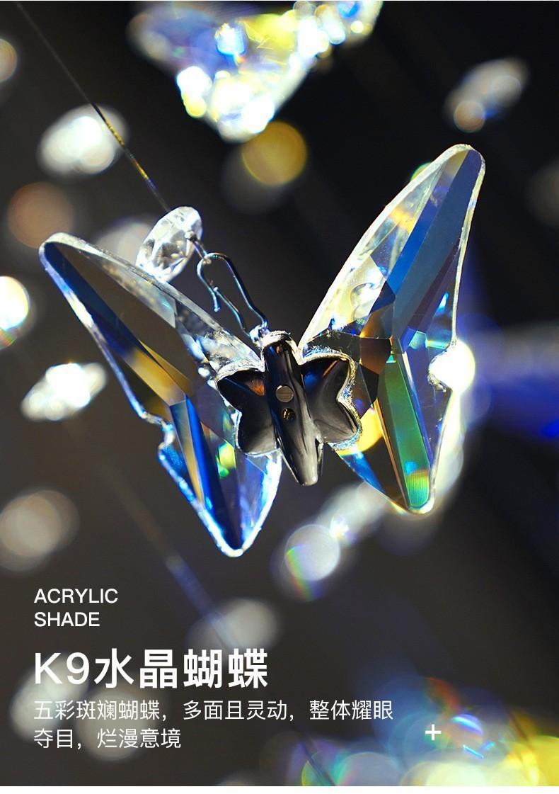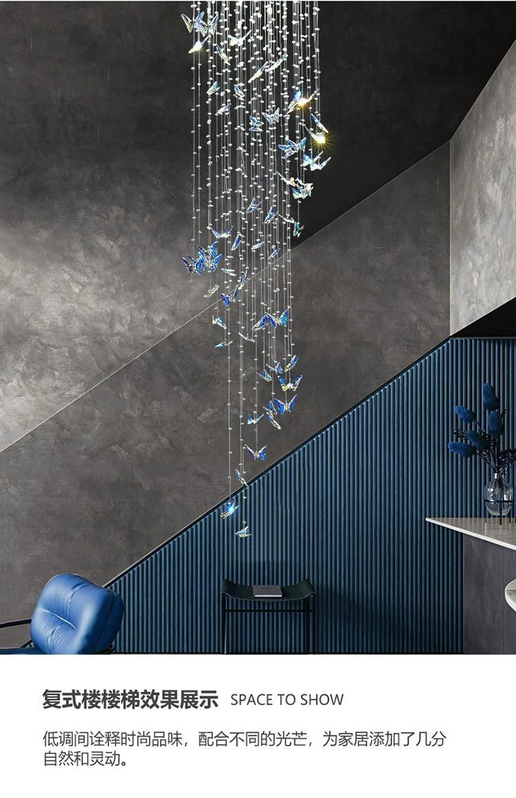 Lámpara de araña de escalera, lámpara de araña larga, lámpara decorativa de cristal de mariposa, lámpara de ingeniería giratoria para edificio dúplex, villa, hotel y club
