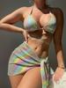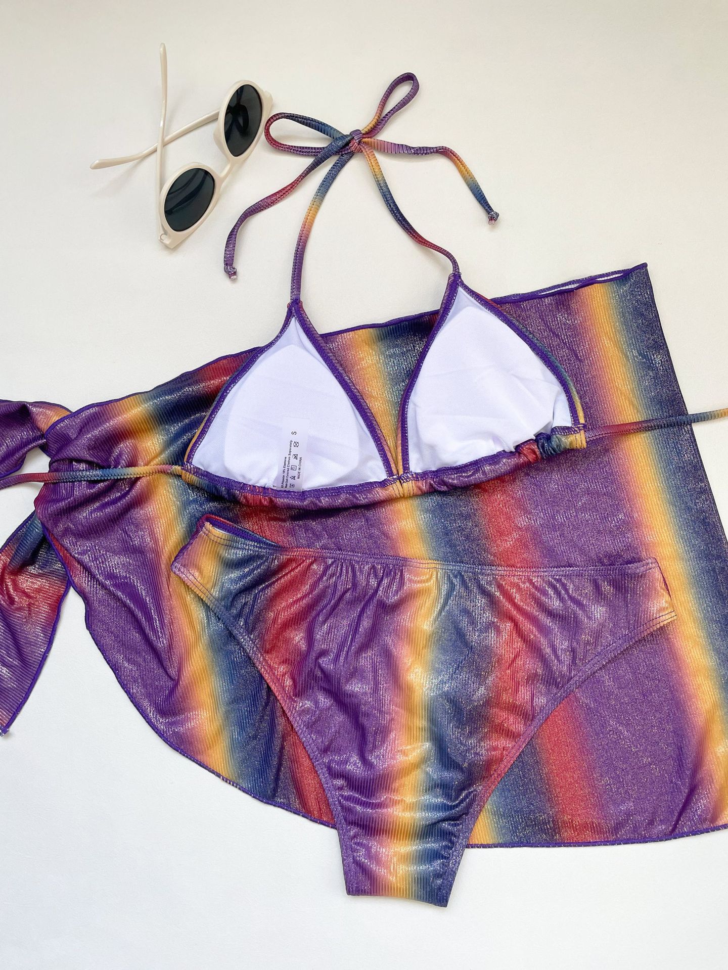 Compra Traje de baño 2023 para mujer Nuevo bikini sexy degradado europeo y americano Traje de baño de tres piezas Estilo Ins Traje de baño con cordones al por mayor en Joom.pro