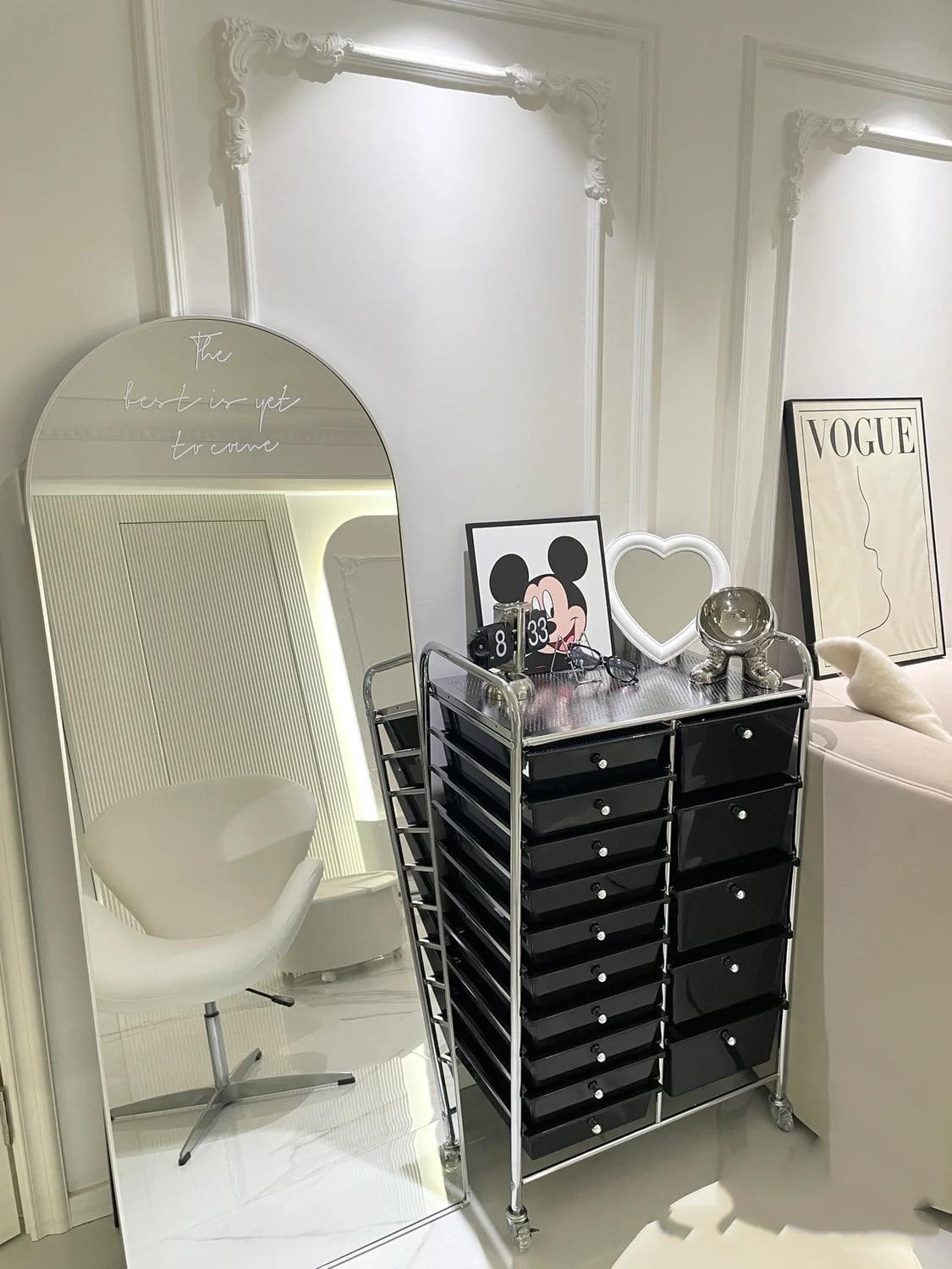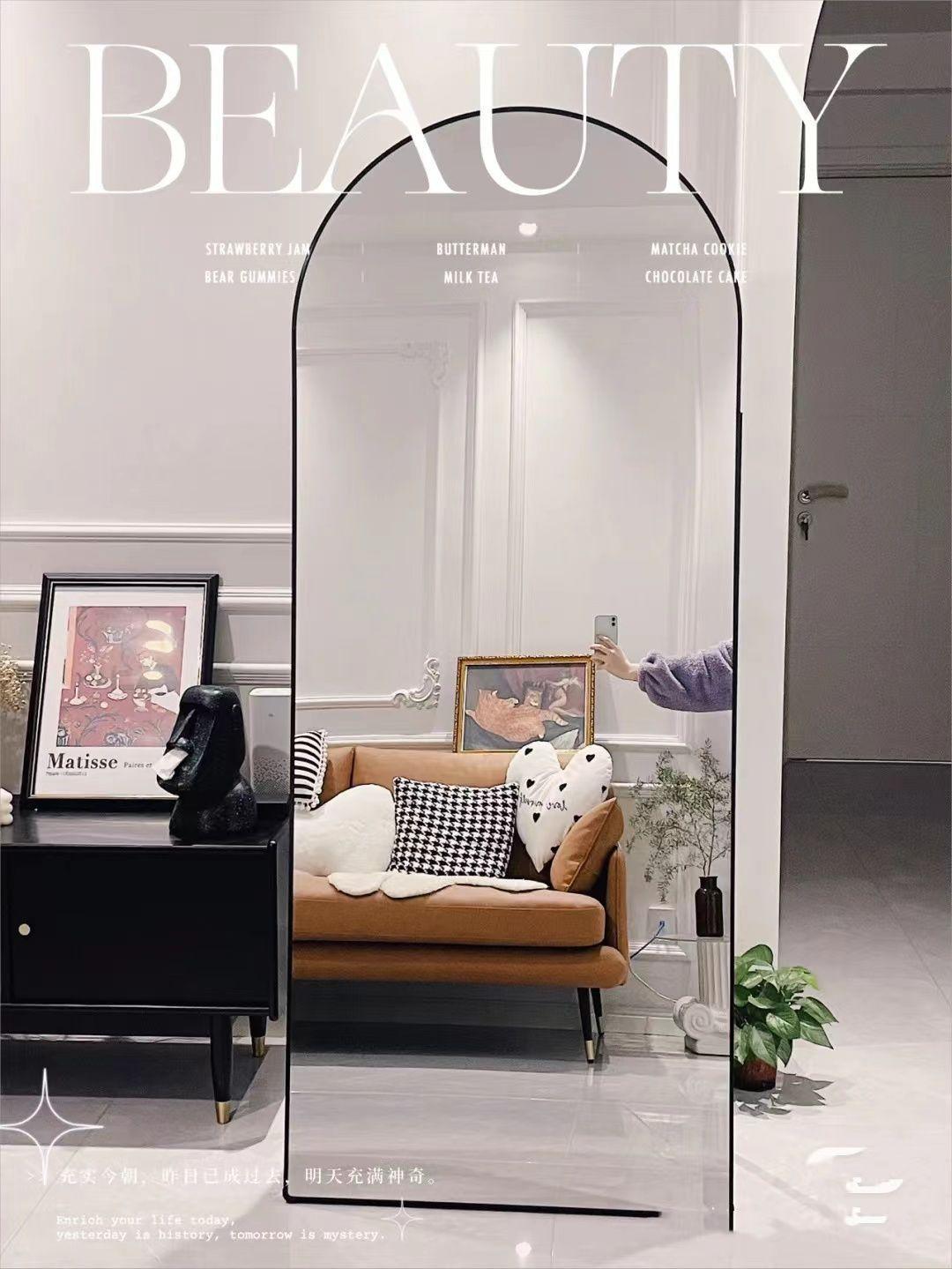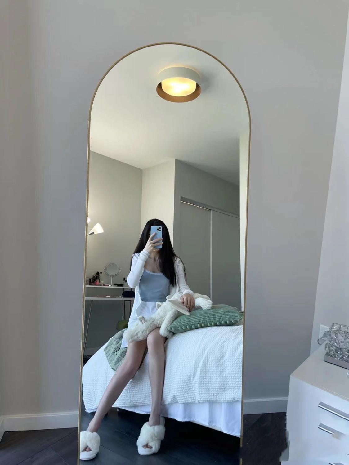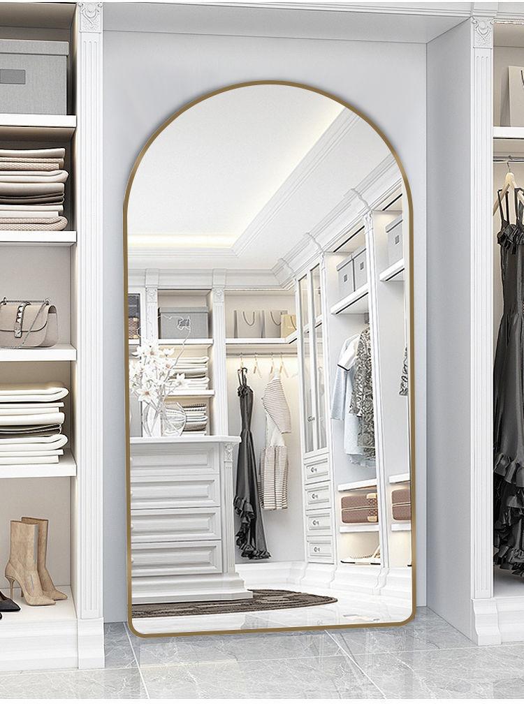 Espejo de cuerpo entero estilo Ins de lujo ligero, espejo de piso, espejo de pared para dormitorio, espejo para niñas, espejo de belleza para tienda de ropa.