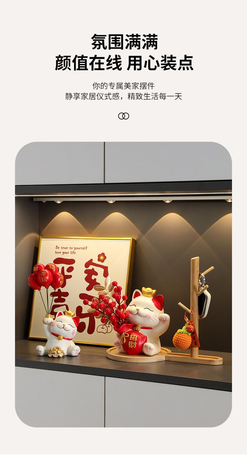 Bandeja de almacenamiento de llaves para pasillo con forma de gato de la suerte, decoración ligera, regalo de lujo, mueble de TV para sala de estar, decoración del hogar, inauguración de la casa