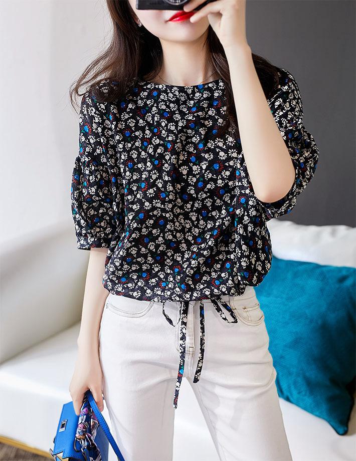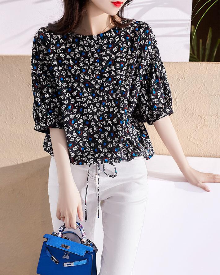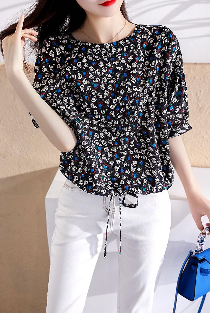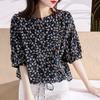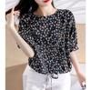 Camisa de gasa de media manga para mujer, ropa de verano para mujer 2021, nueva camisa pequeña estampada de estilo coreano, blusa holgada con mangas de murciélago que cubre el vientre