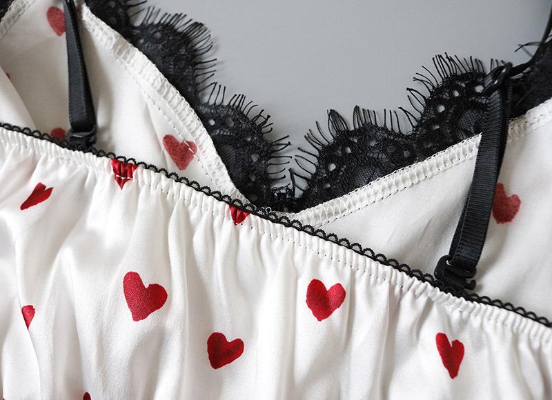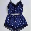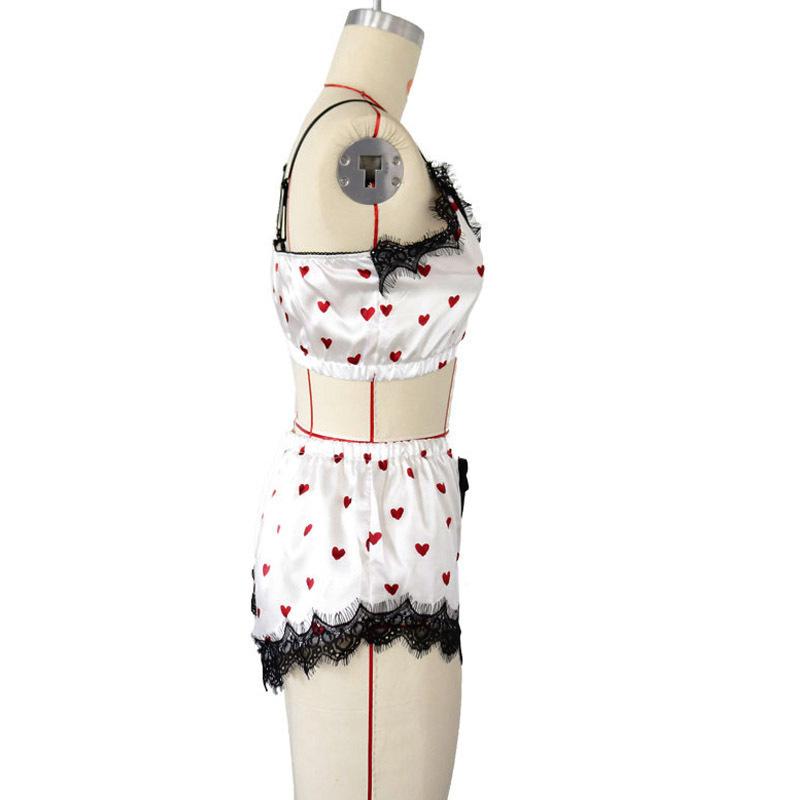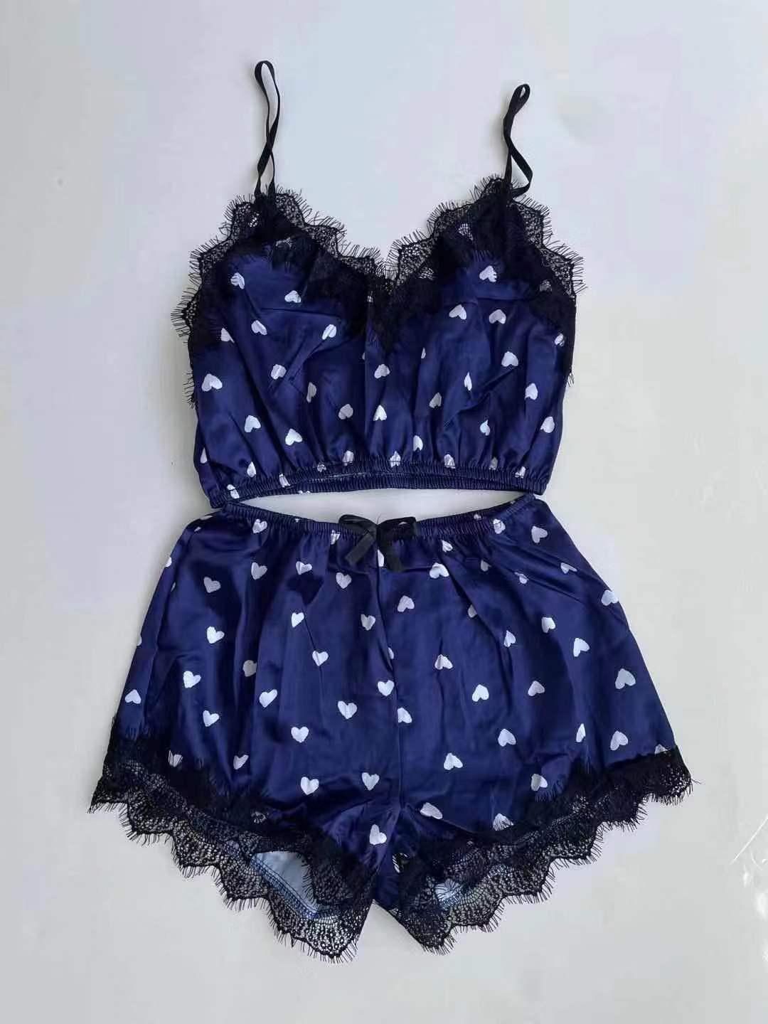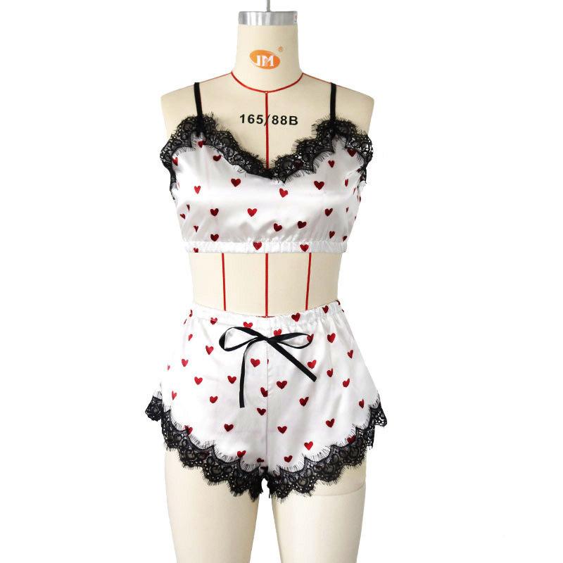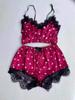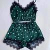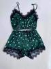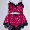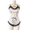 Conjunto de pijama y pantalones cortos de talla grande con sujetador de encaje y tirantes de satén estampado sexy para el hogar de comercio exterior europeo y americano