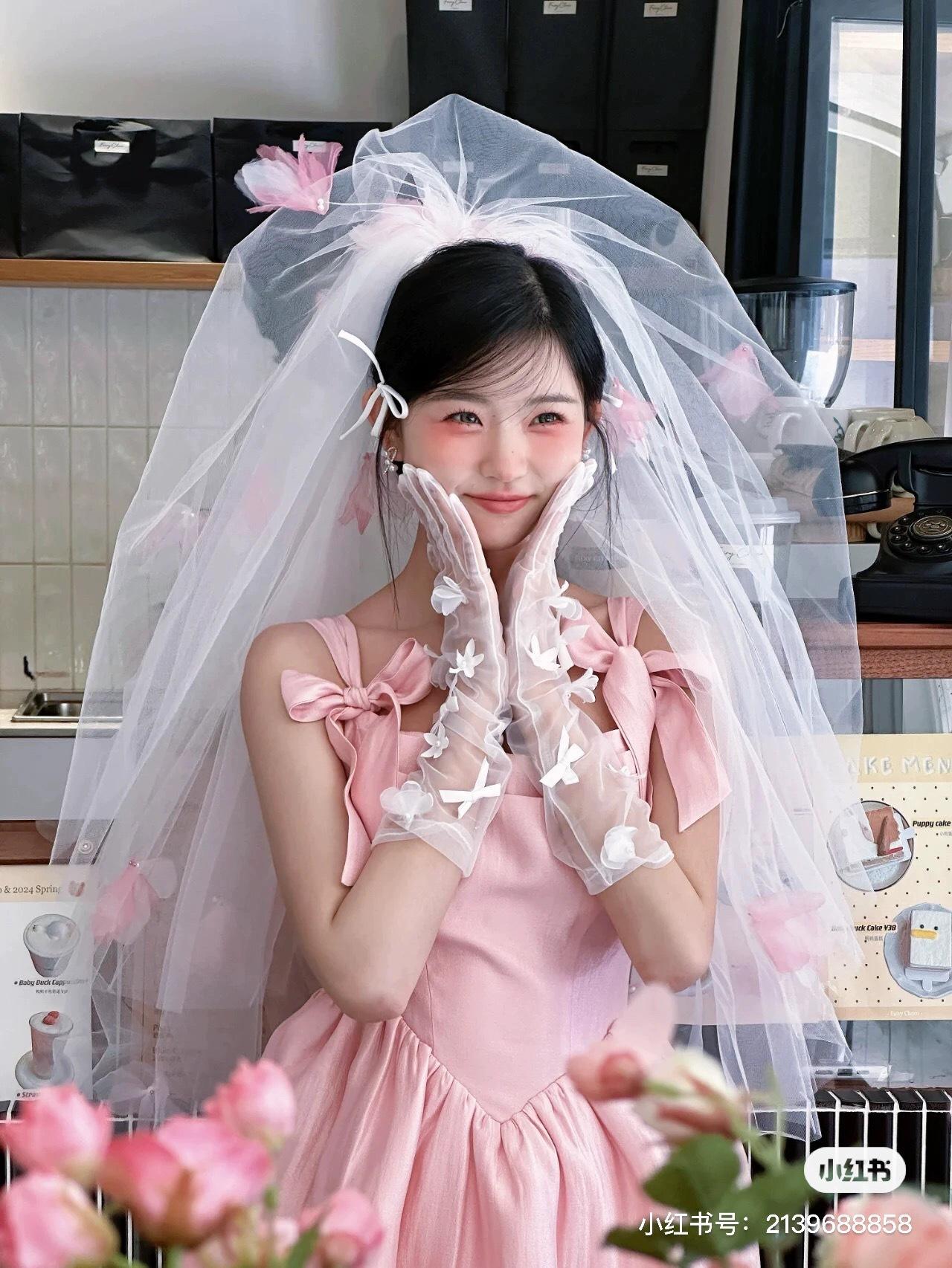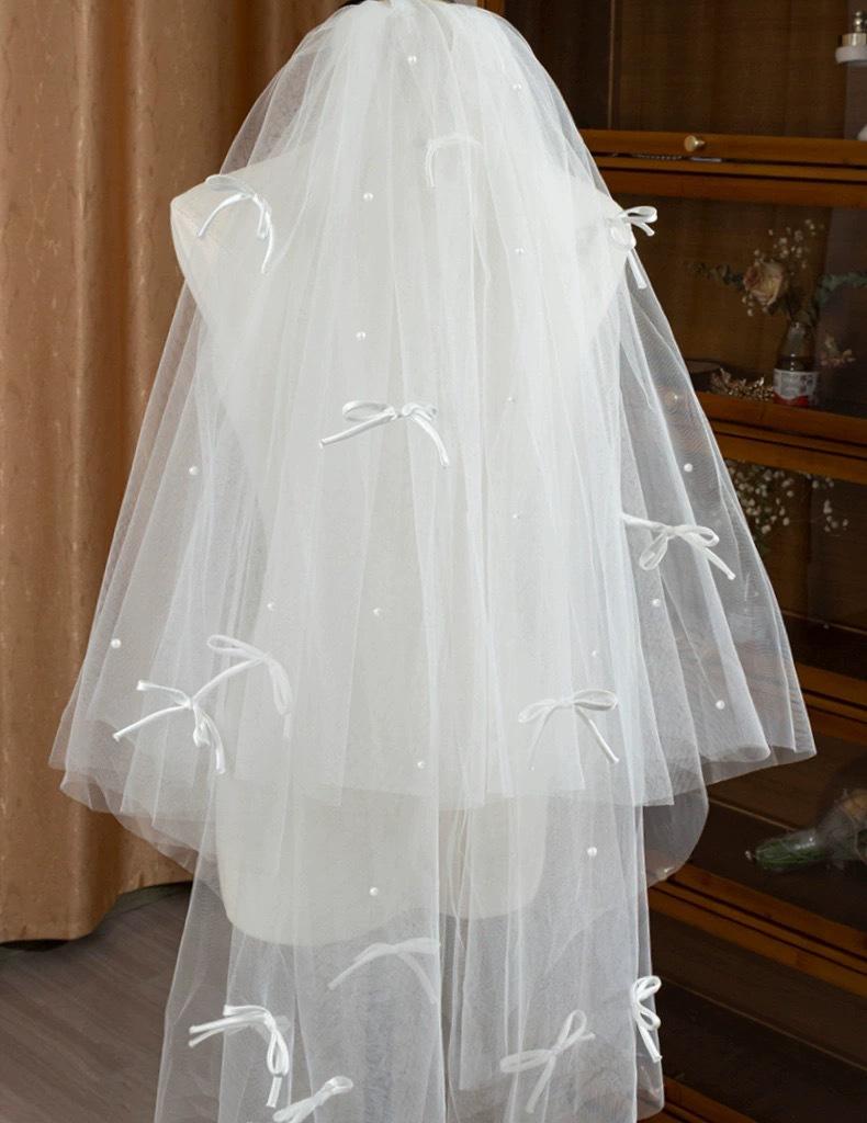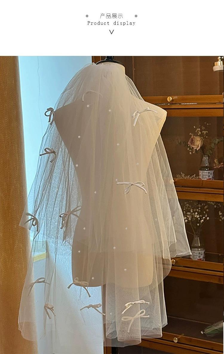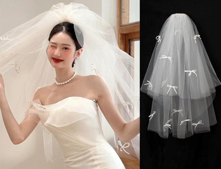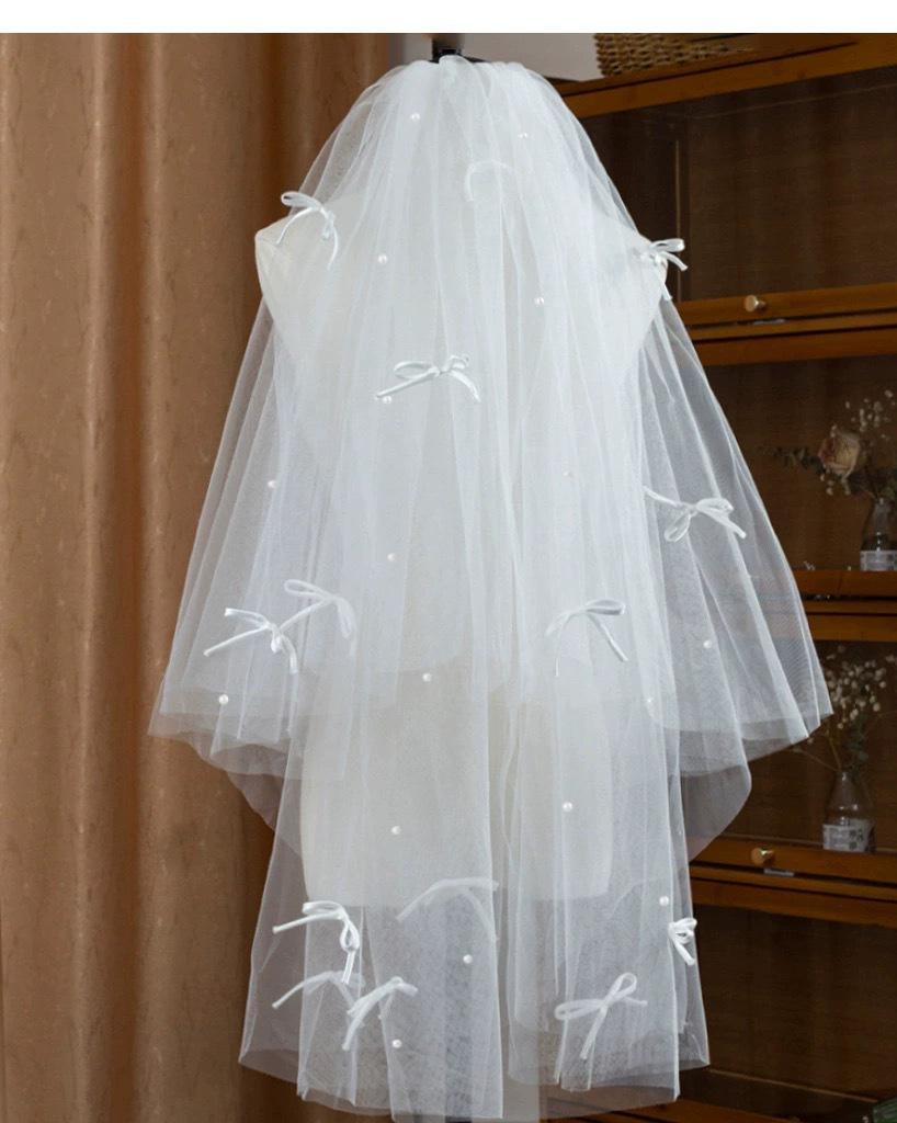 Tocado de velo de novia estilo coreano, belleza de hada, pequeño lazo, perla, accesorios para el cabello, vestido de novia principal, lindos accesorios para fotos