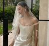 (No Pearl) Rice White 3 Layer Butterfly Pearl Veil with Hair Comb