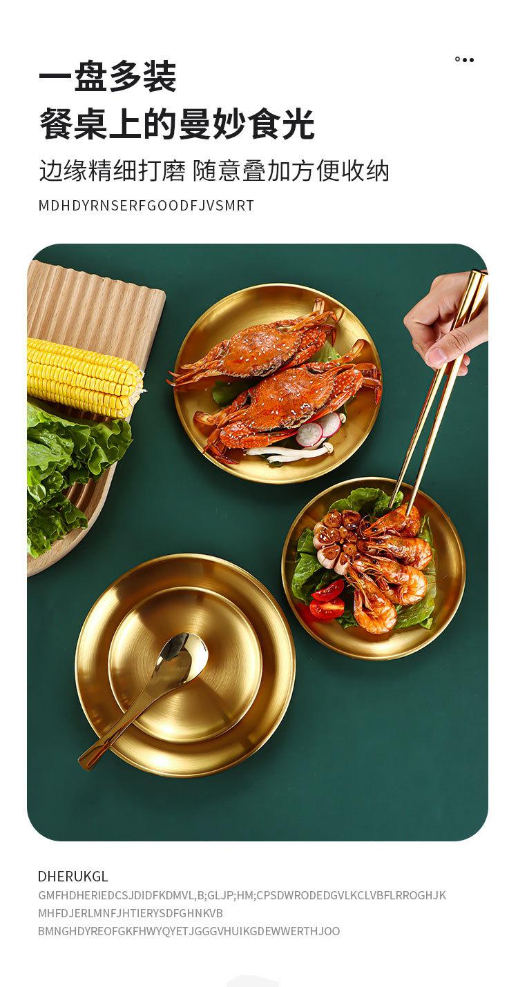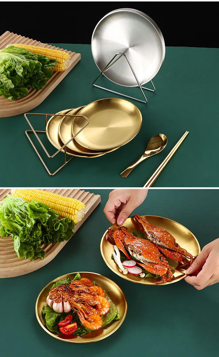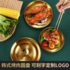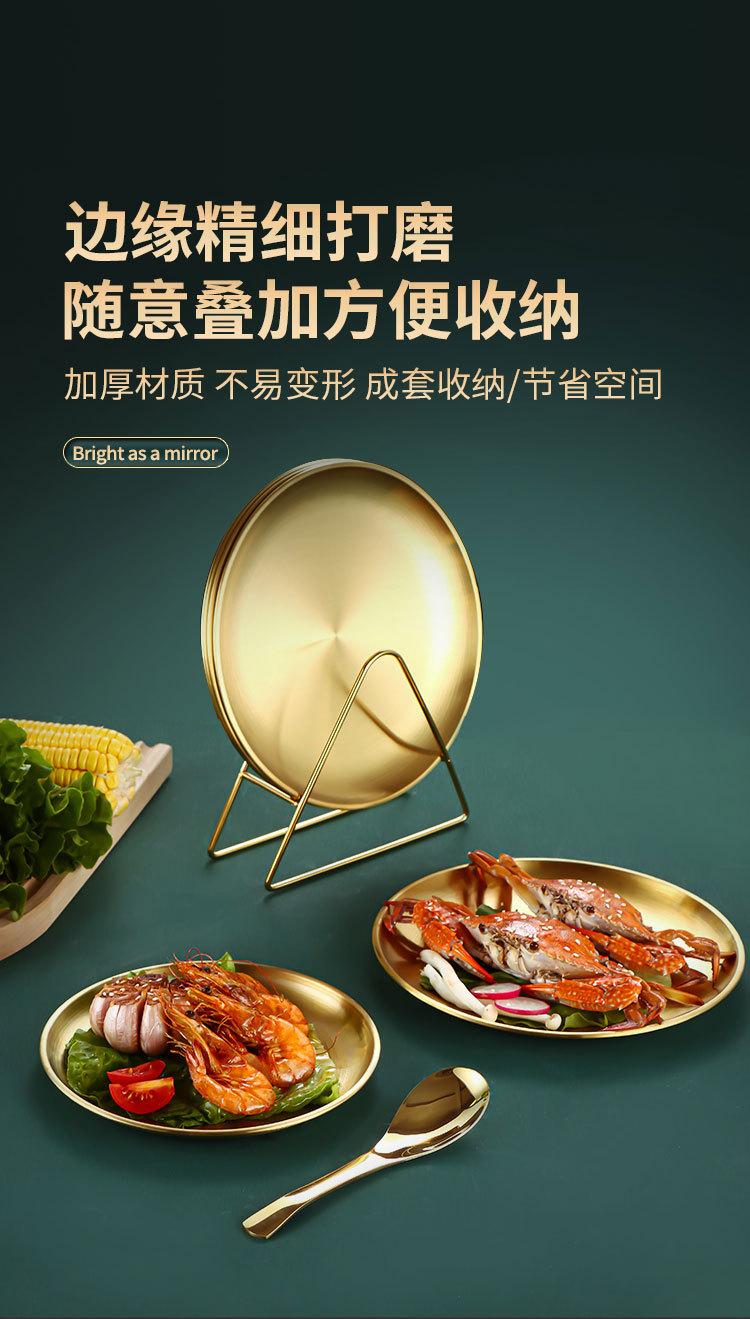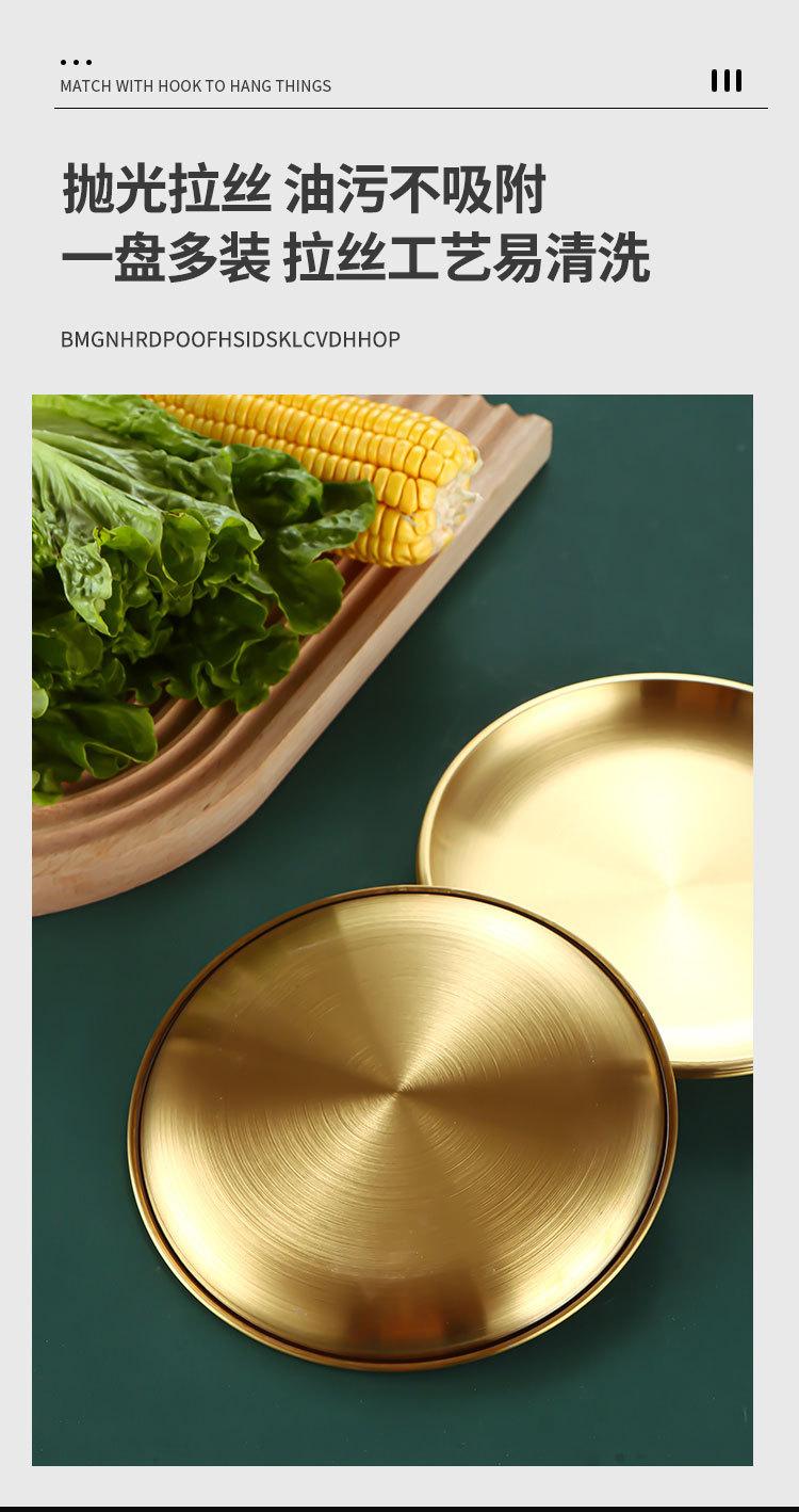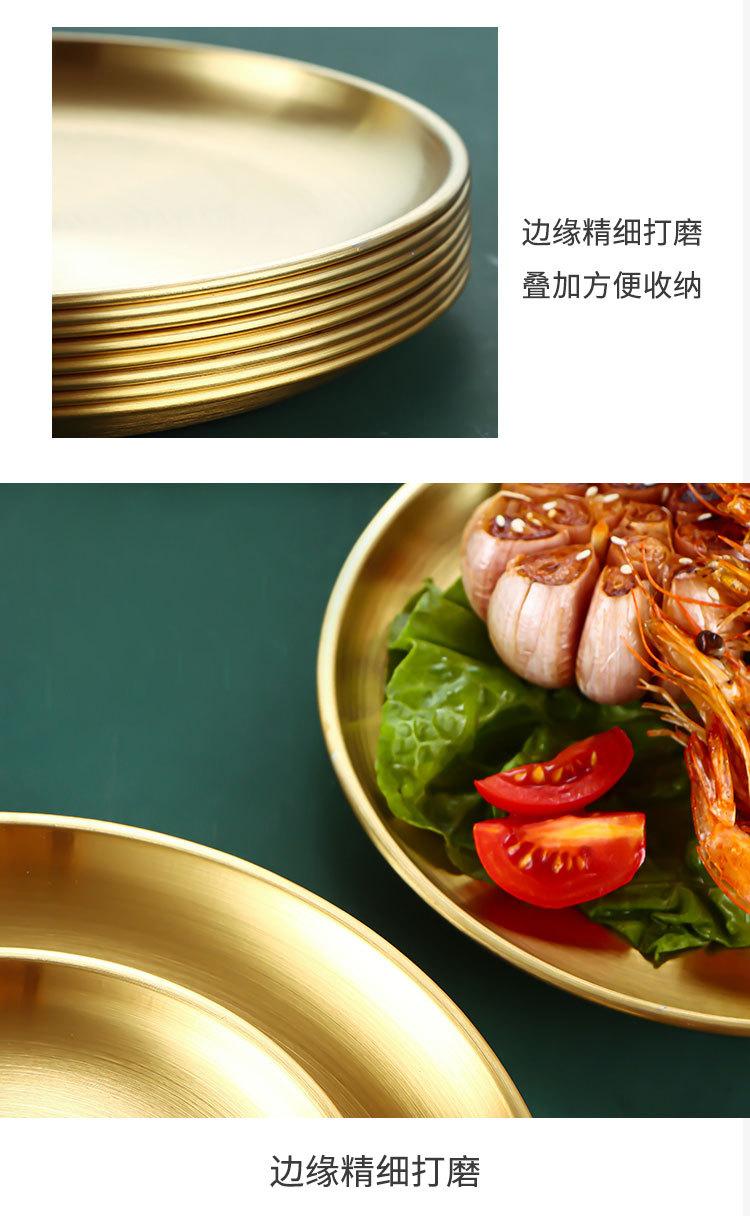 Plato de cena dorado comercial de disco grueso de acero inoxidable 304, bandeja de barbacoa para restaurante coreano, plato de hueso, plato plano y poco profundo
