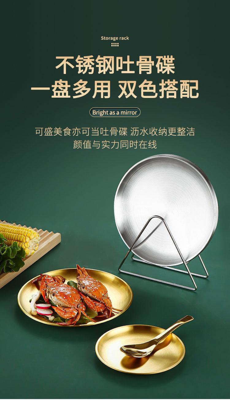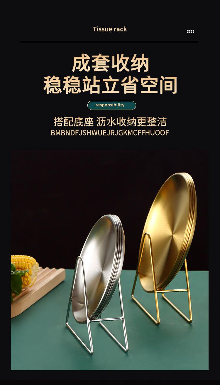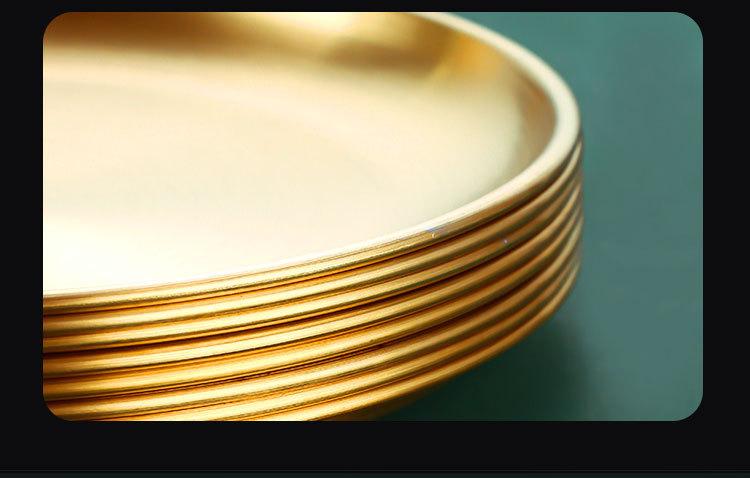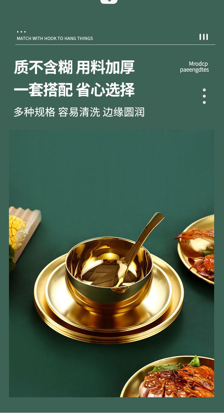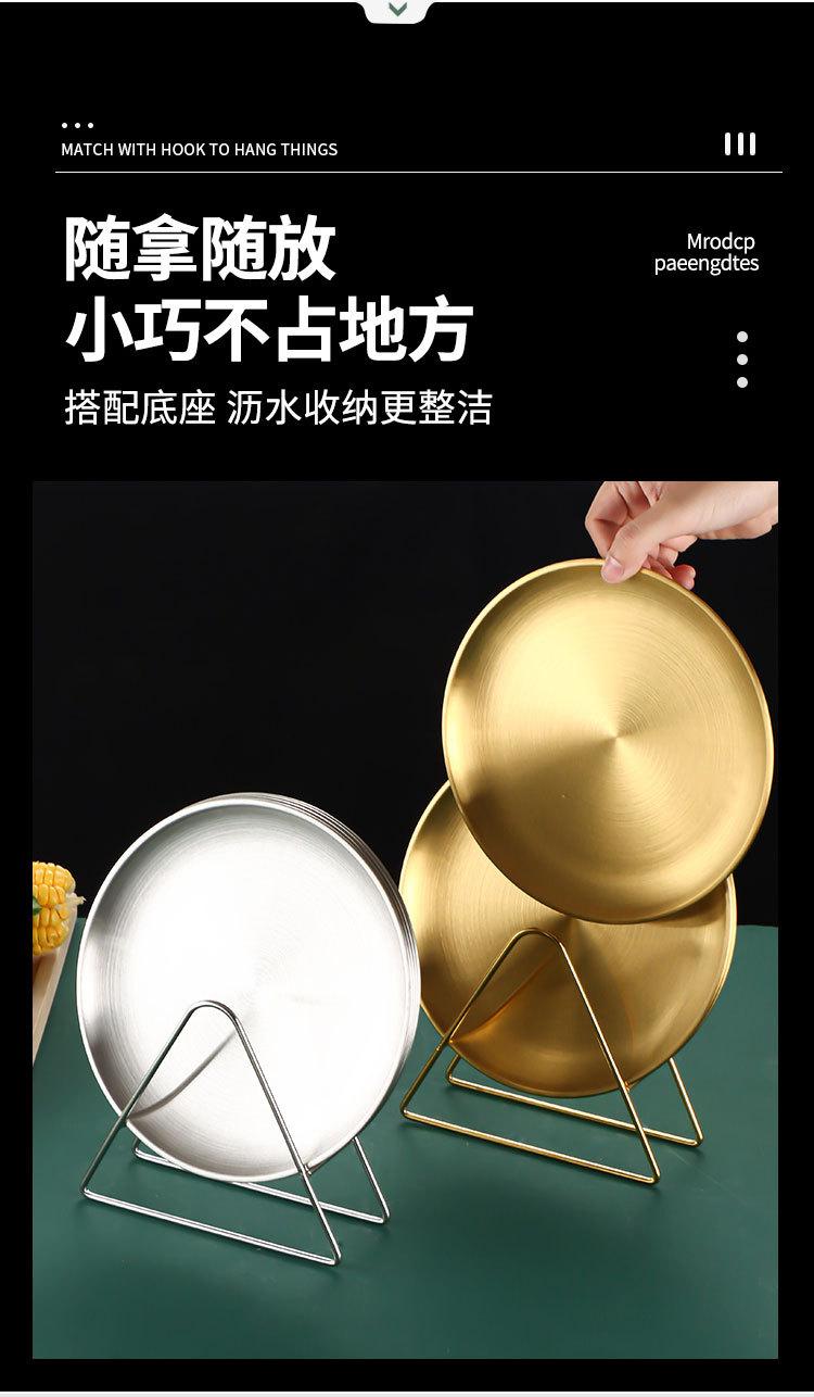 Plato de cena dorado comercial de disco grueso de acero inoxidable 304, bandeja de barbacoa para restaurante coreano, plato de hueso, plato plano y poco profundo