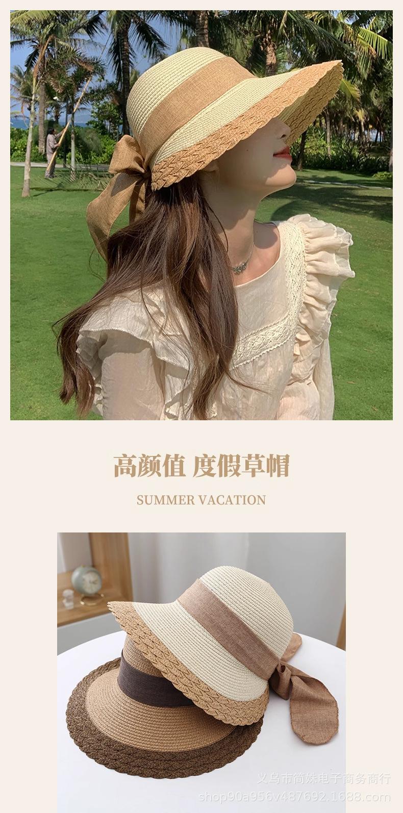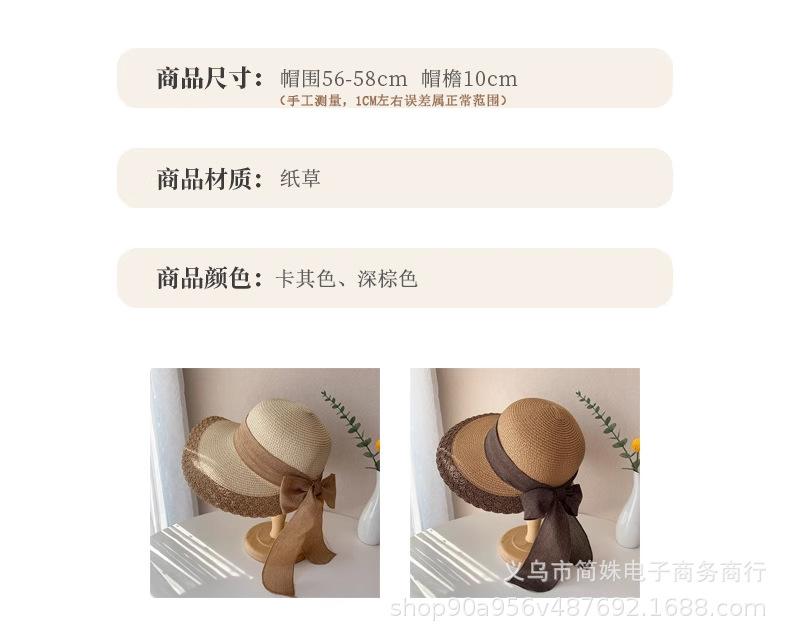 | Sombrero de ala ancha para mujer, novedad de verano, con lazo fino y hueco, para lavabo, para viajes al aire libre | ¥24 |