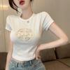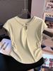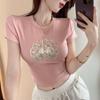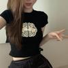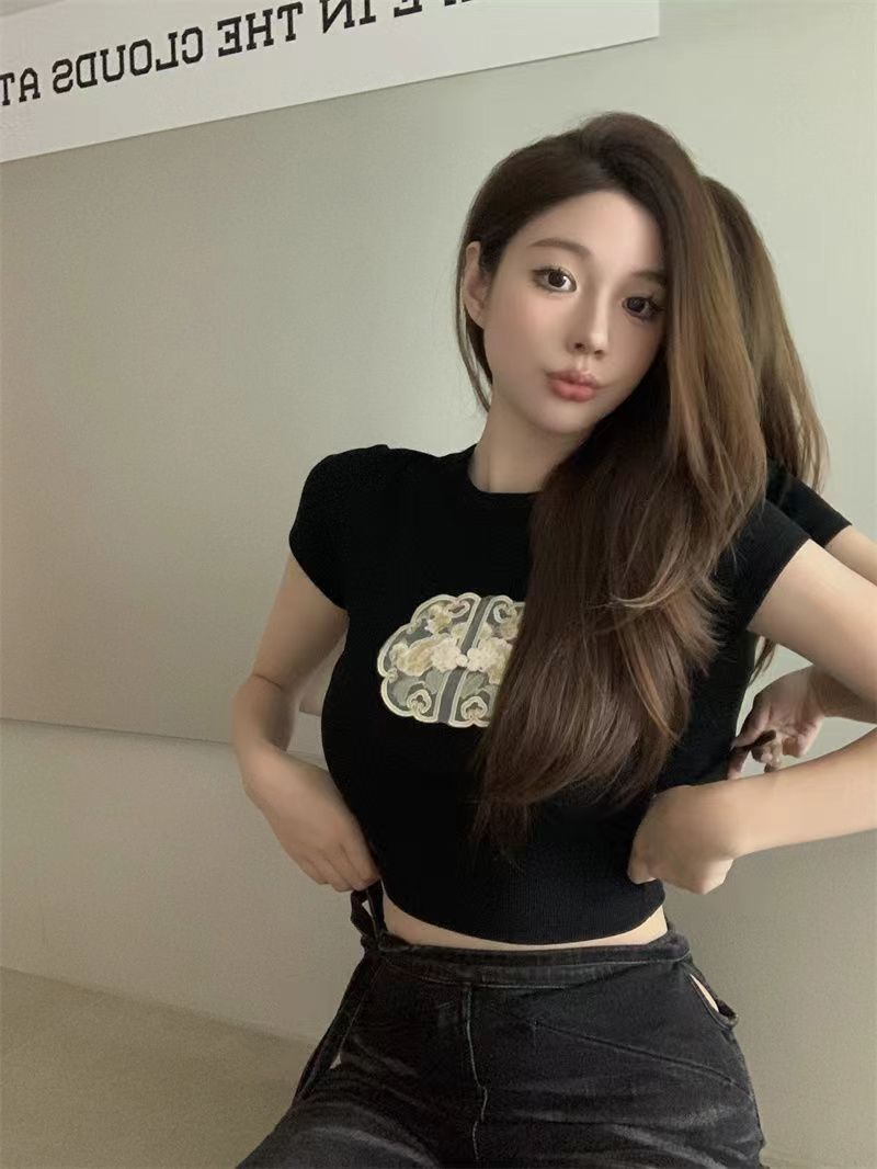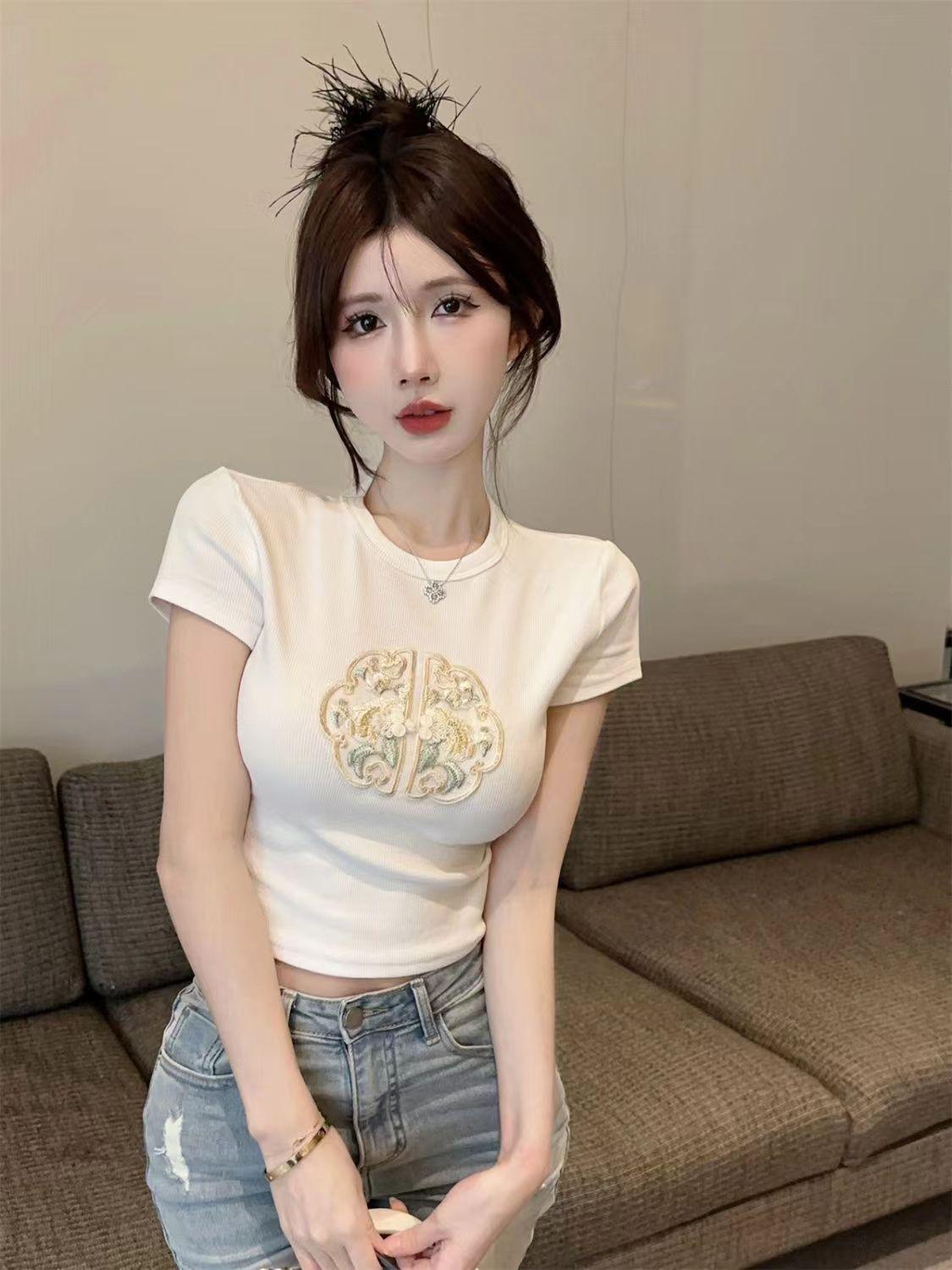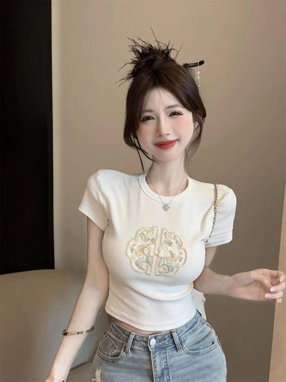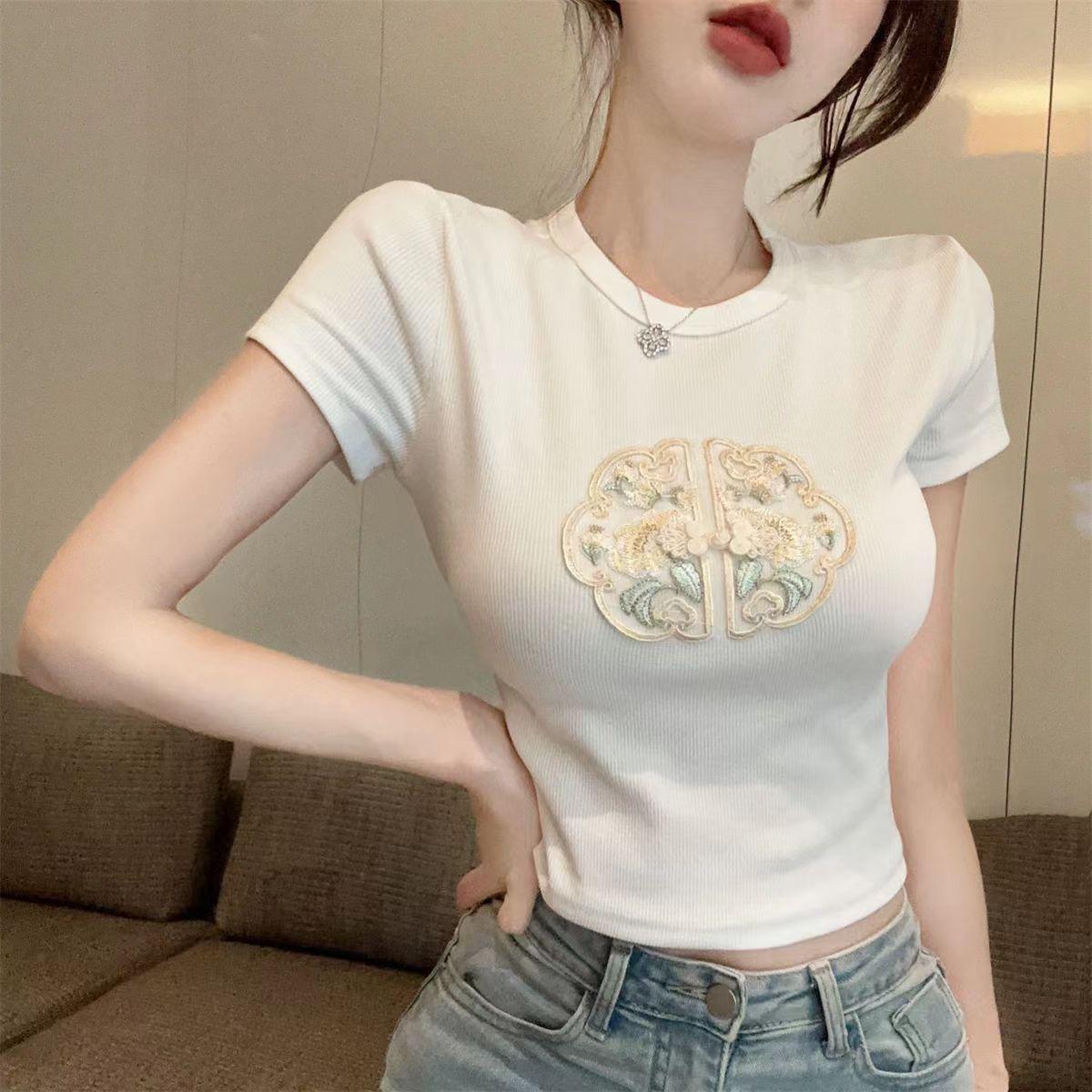Camiseta de manga corta con cuello redondo y estilo nacional chino para mujer, novedad de verano 2024, top corto ajustado estilo Spice Girl.