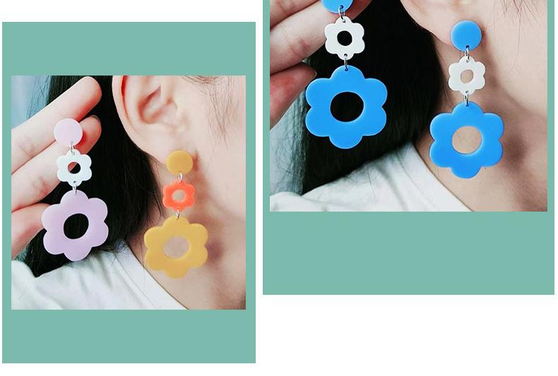 Nuevos pendientes de flores con costuras de colores contrastantes, pendientes de moda, sencillos, frescos, dulces y lindos, pendientes de acrílico para mujer