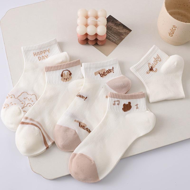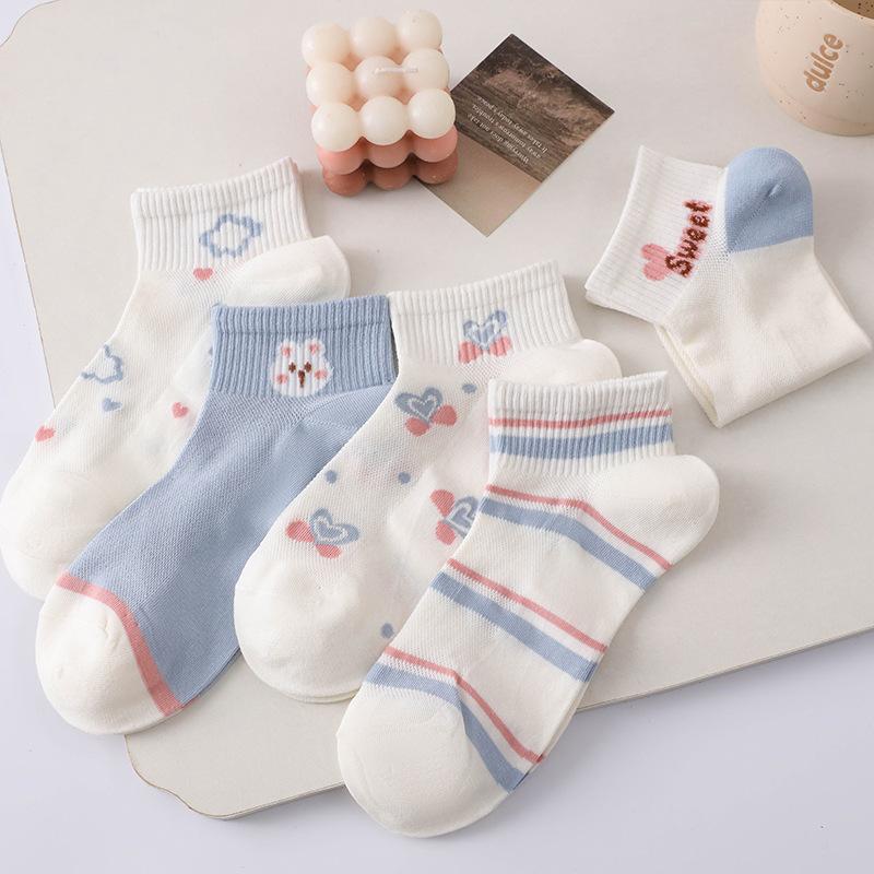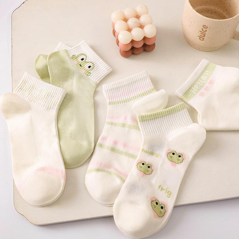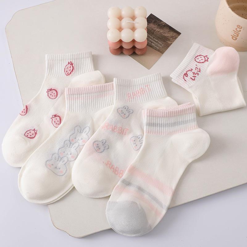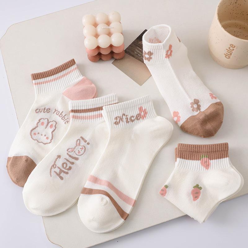 Calcetines sin hueso calcetines cortos de mujer calcetines de malla de dibujos animados lindos calcetines de barco de algodón fino de verano fino deportivo absorbente del sudor