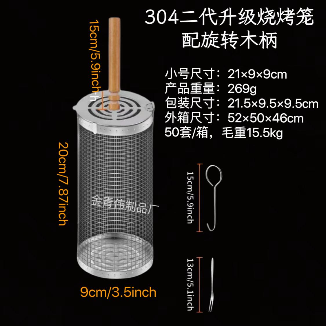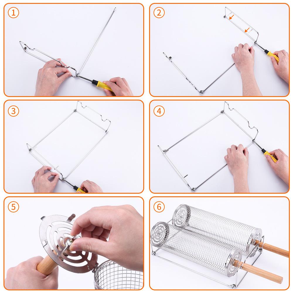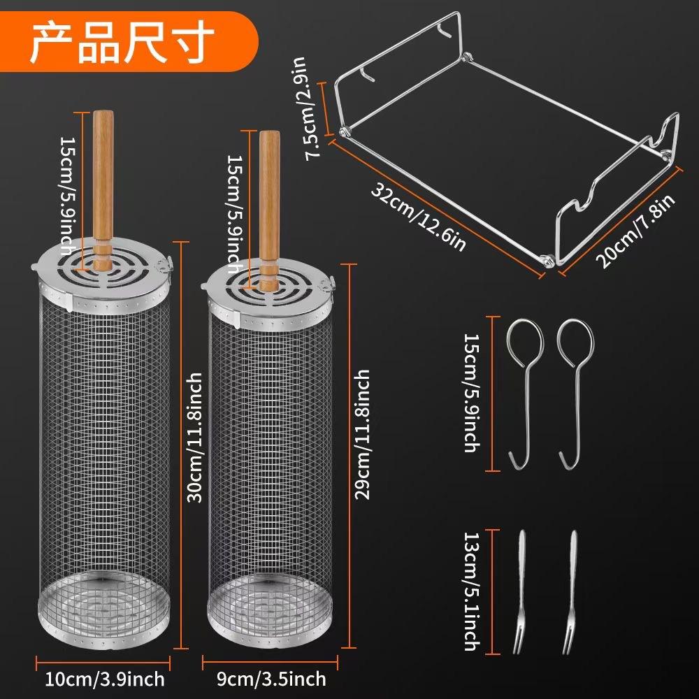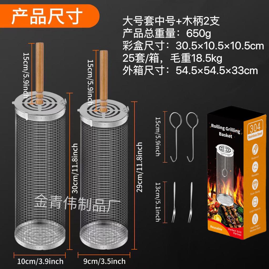 Jaula rodante para barbacoa transfronteriza, cesta para barbacoa BBQ de acero inoxidable 304 con mango de madera, barril giratorio para barbacoa, Amazon no infractor