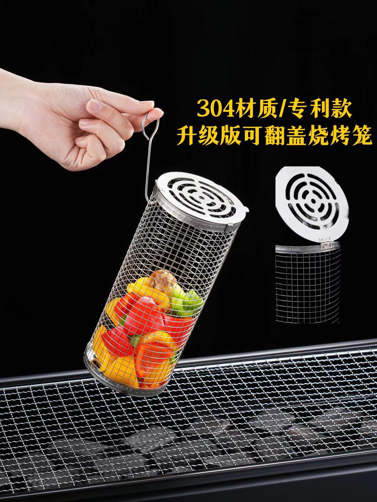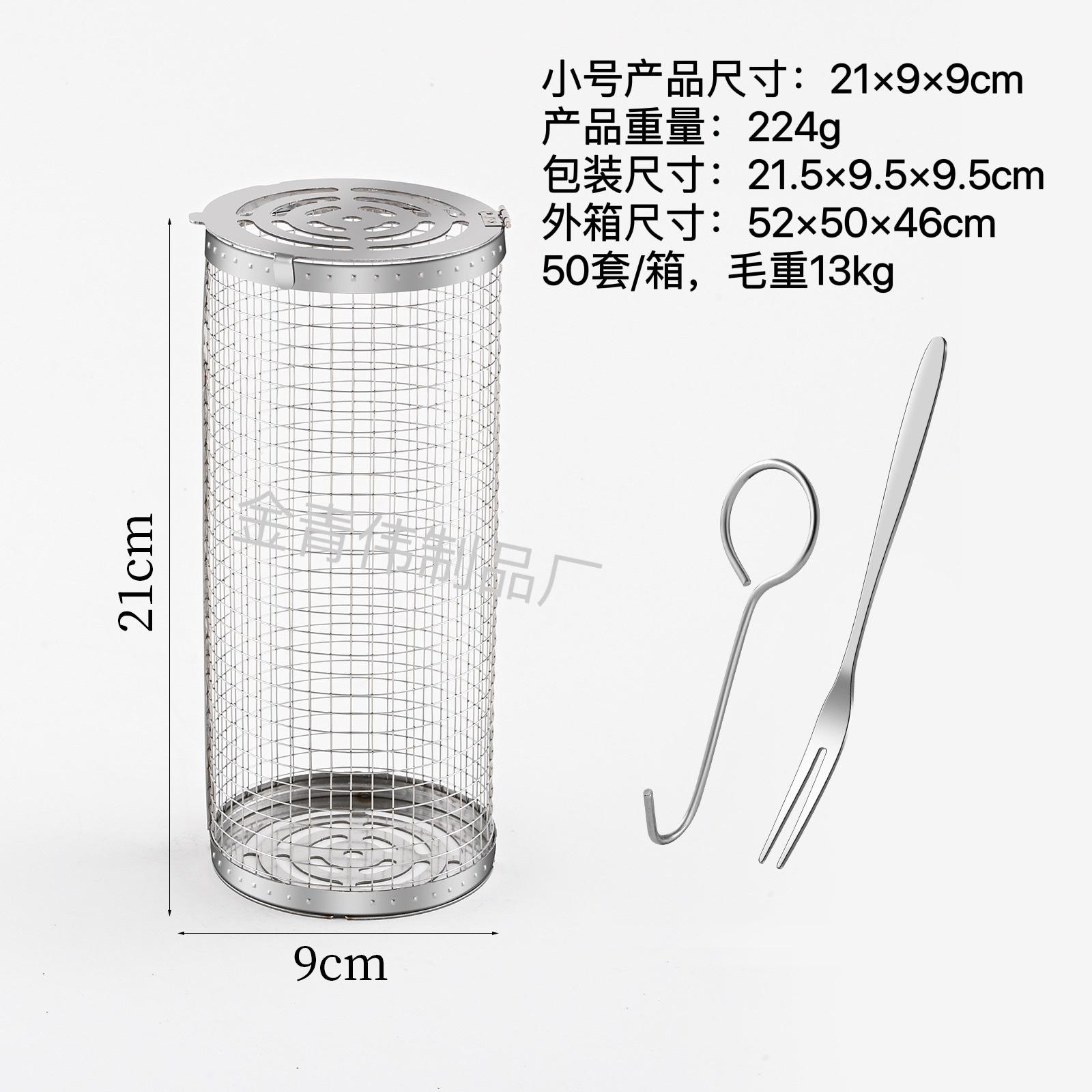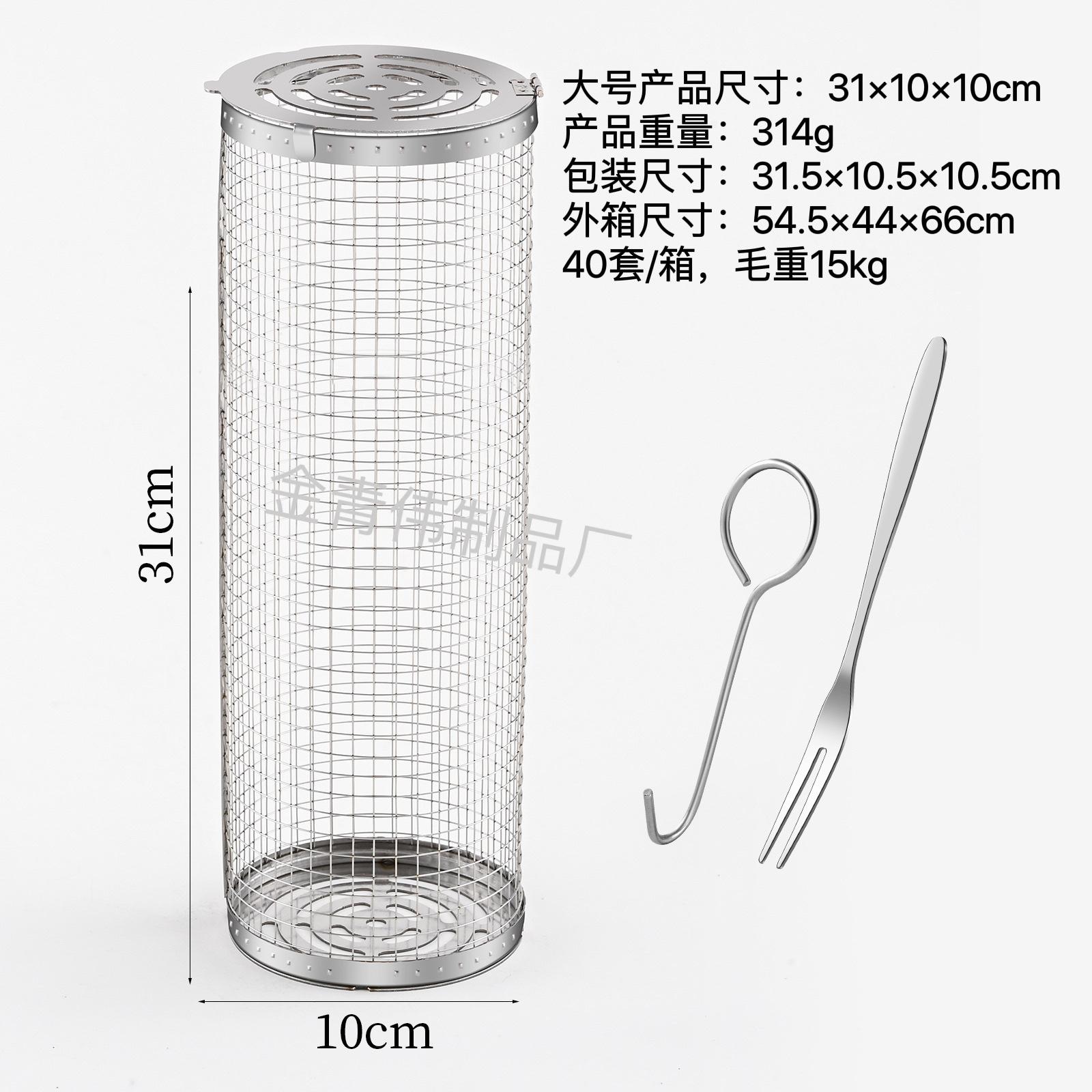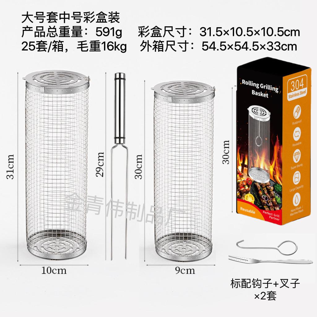 Jaula rodante para barbacoa transfronteriza, cesta para barbacoa BBQ de acero inoxidable 304 con mango de madera, barril giratorio para barbacoa, Amazon no infractor