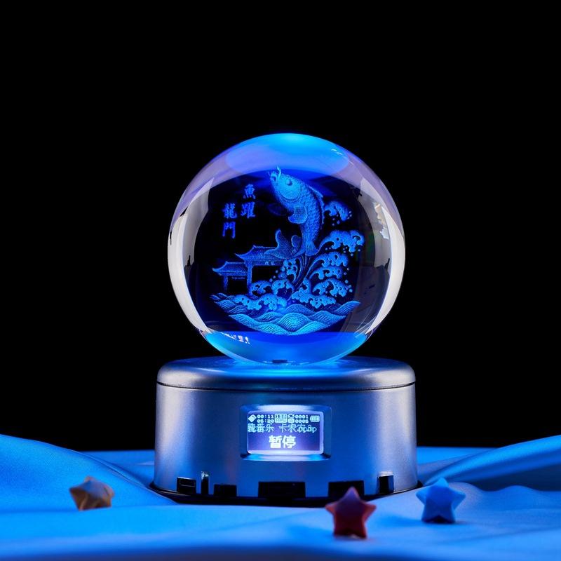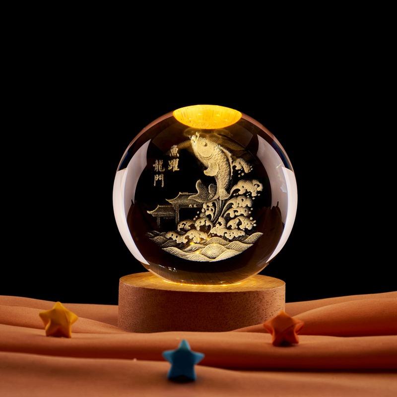 Bola de cristal con tallado láser 3D de Yuyue Longmen, luz nocturna luminosa, artesanías creativas para decoración del hogar, adornos