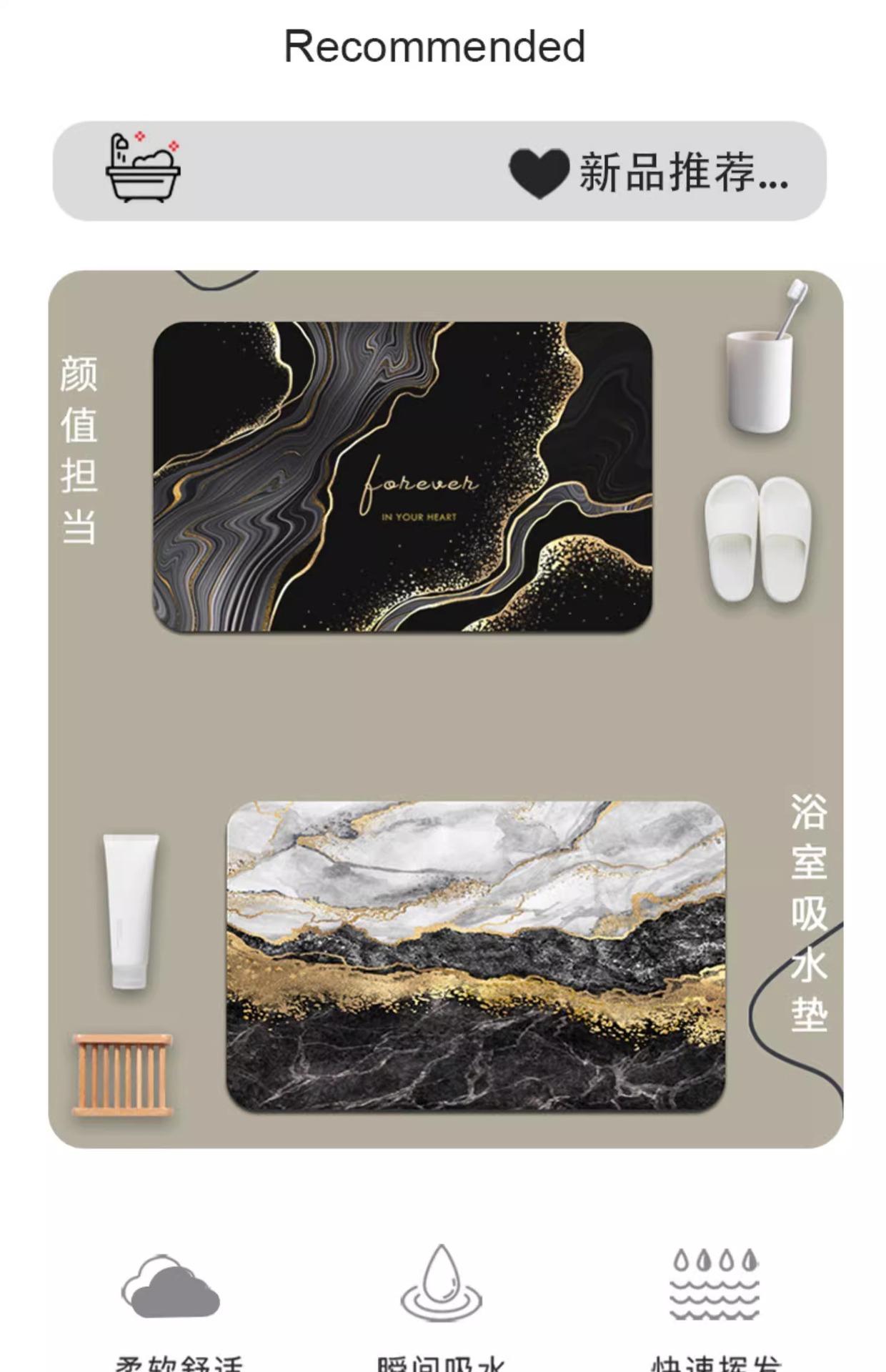 Alfombrilla de baño de diatomeas, de secado rápido, antideslizante, absorbente, para puerta de baño