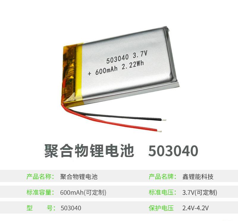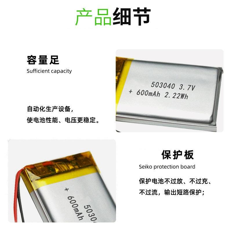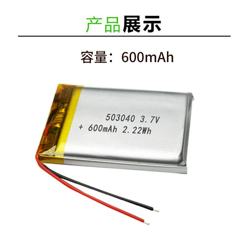 503040 Batería de Almacenamiento de Energía de Polímero 600mAh Equipo Médico 3.7V Paquete Blando Batería de Litio Paquete de Batería de Litio