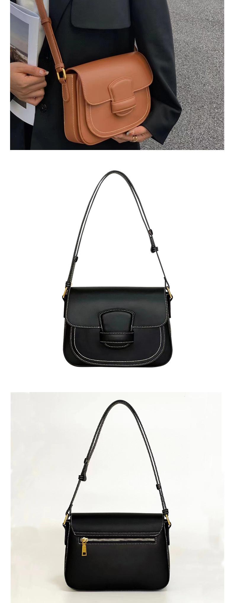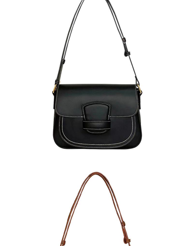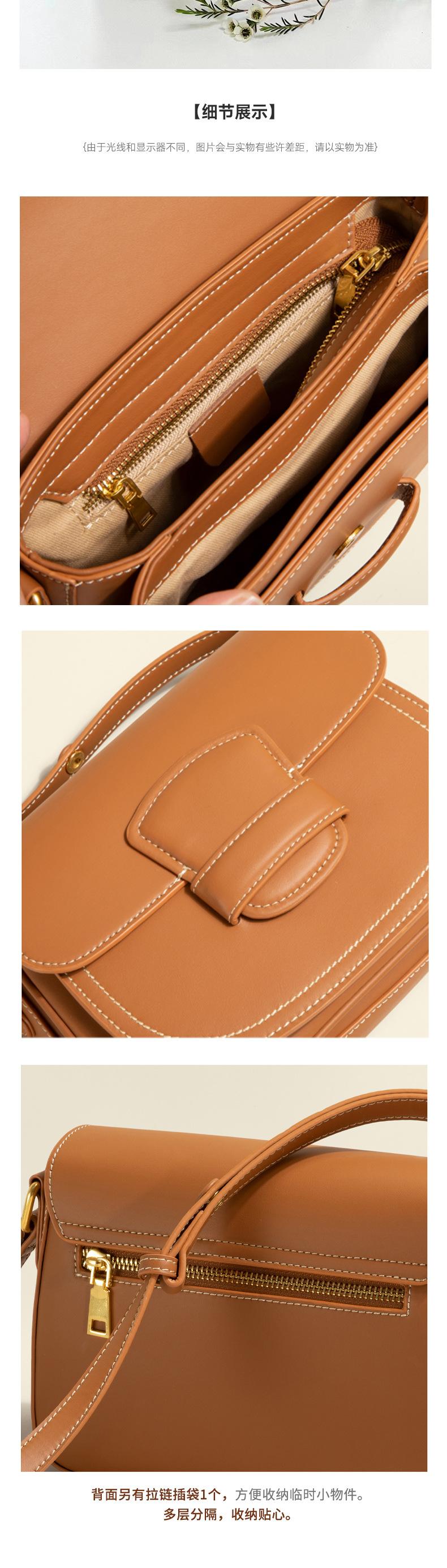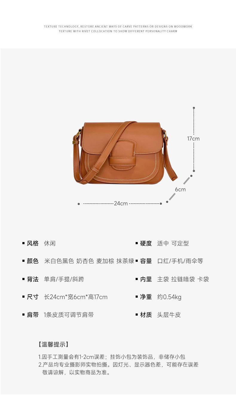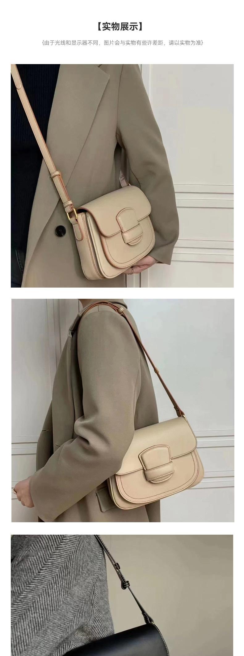 Bolso de mujer de piel auténtica, diseño de nicho francés, tipo sillín, primera capa de piel de vaca, de alta calidad, bandolera de un solo hombro, cuadrada, color liso, combina con todo.