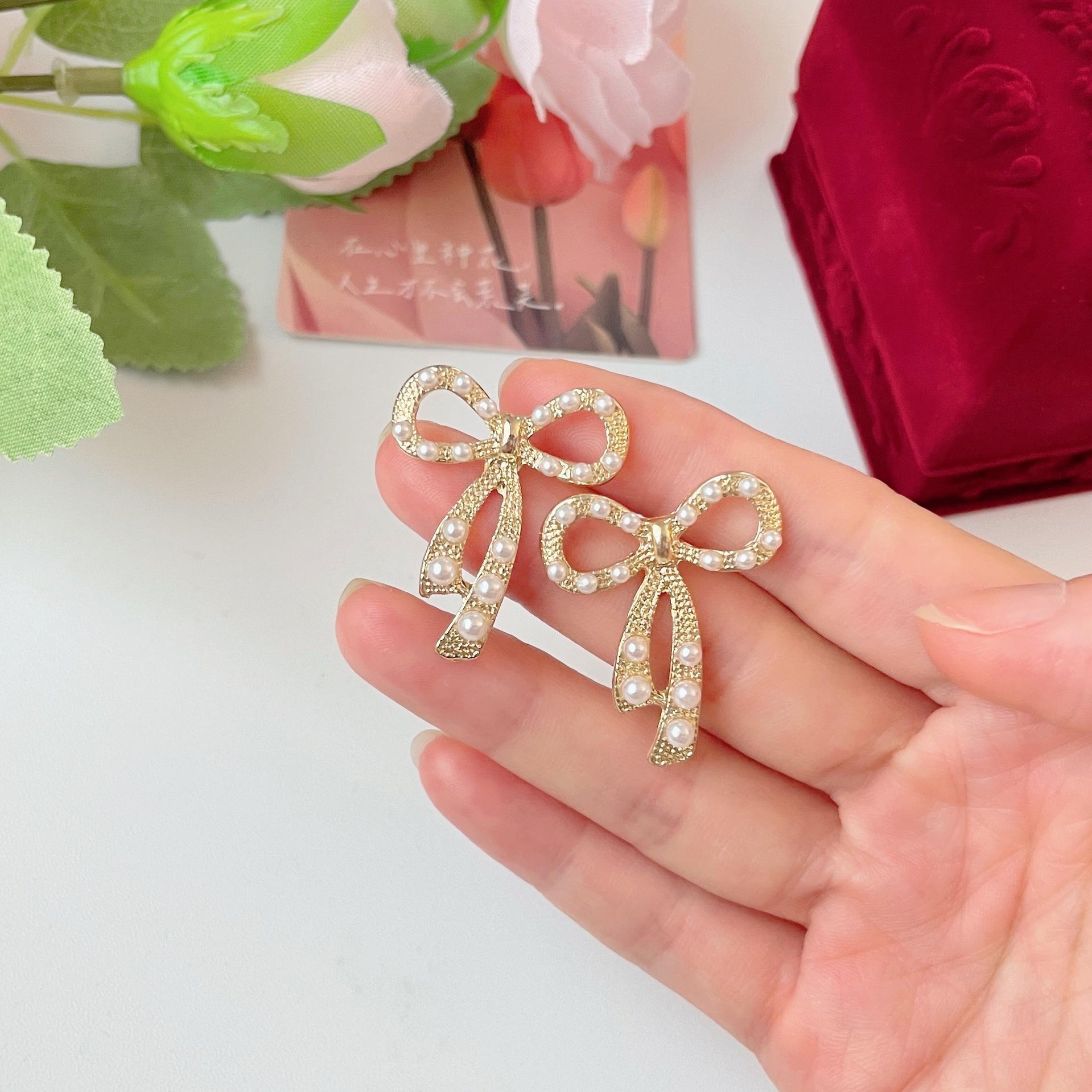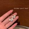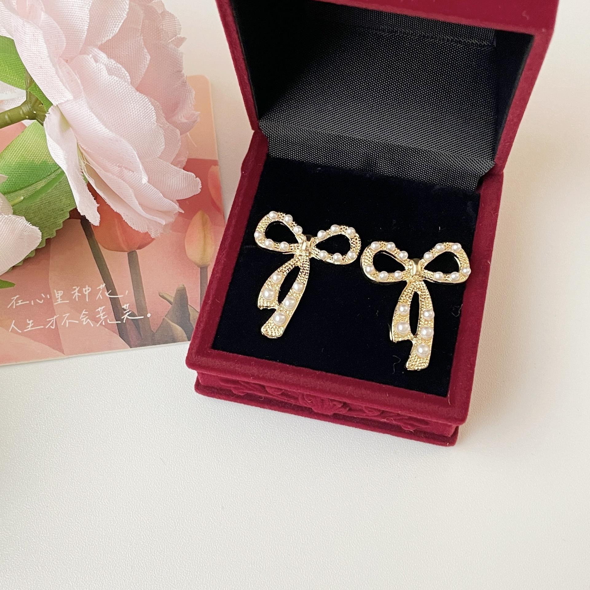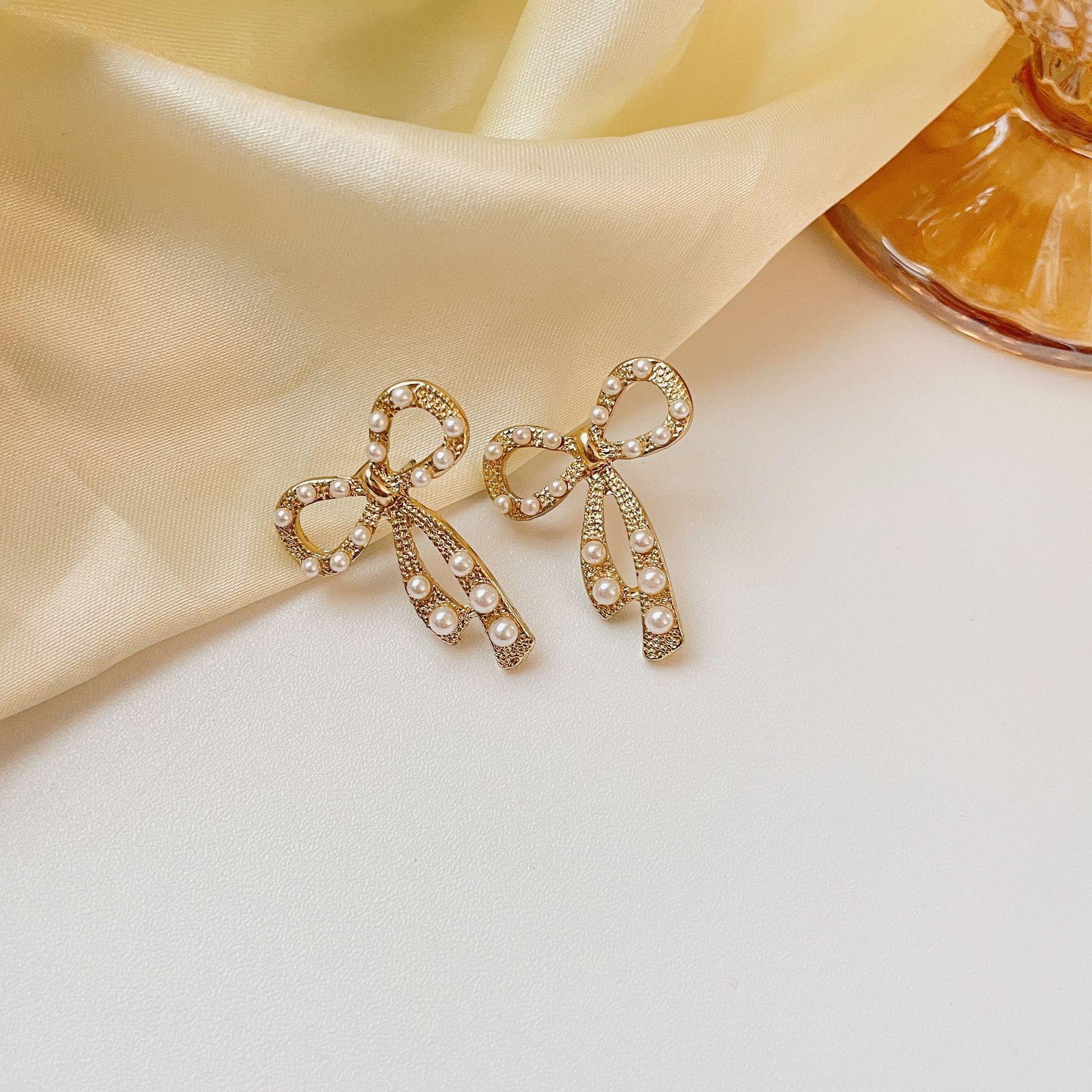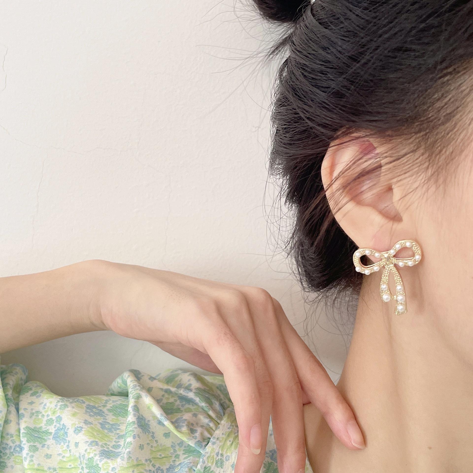 Pendientes de lazo de perla para mujer, elegantes, sencillos y de alta gama, 2023, nuevos y modernos pendientes de plata con pasador y clip para la oreja.