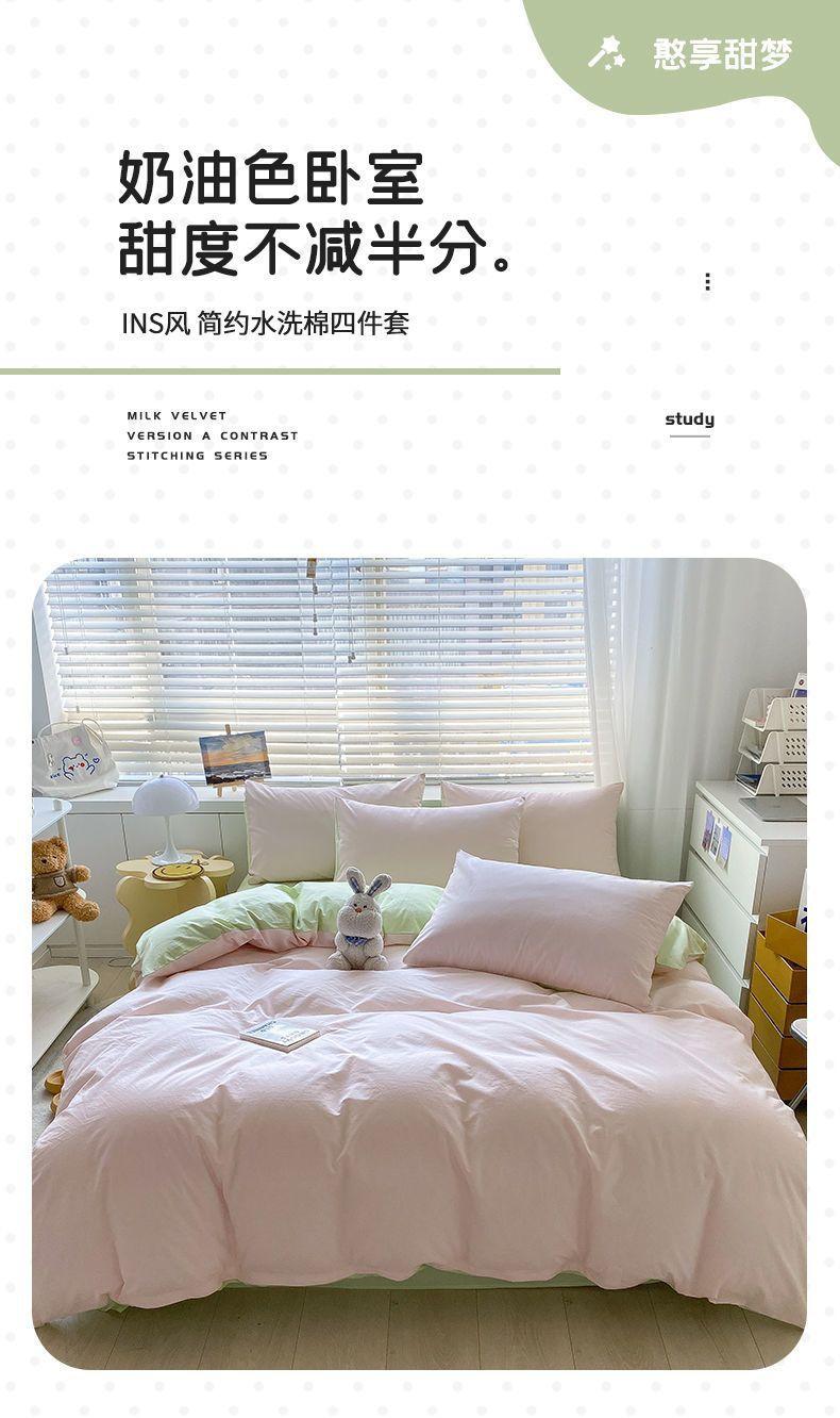 Ropa de cama Nanjiren de cuatro piezas, sábana de color liso, funda de edredón, dormitorio de estudiantes, cama individual, cama doble, ropa de cama de tres piezas