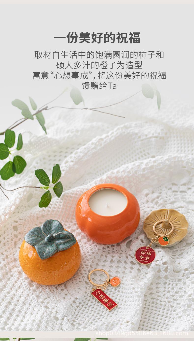 Vela Aromática Naranja Caqui Xinxiang Vaso de Cerámica Vacío DIY Contenedor de Cera de Soja Fragancia Romántica para Interior Regalo Hecho a Mano