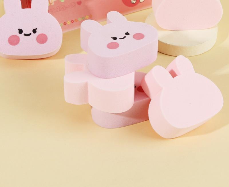 Nueva esponja húmeda y seca de conejo para maquillaje facial, herramientas de maquillaje de belleza, color rosa, 6 bolsitas de esponja, venta al por mayor