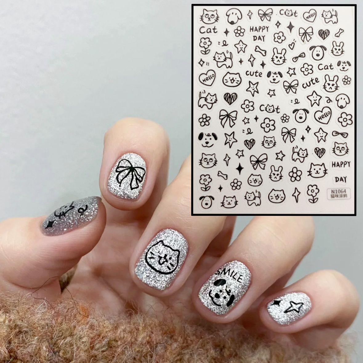¡Alivio de celebridad en línea! Stickers para uñas de gato nuevo popular lindo gato de dibujos animados ins gatito adhesivo stickers para manicura