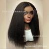 Pelucas para Mujeres Europeas y Americanas, Frente de Encaje, Cabello Largo Liso Yaki, Raya Media, Postizo de Fibra Sintética, Aspecto Natural