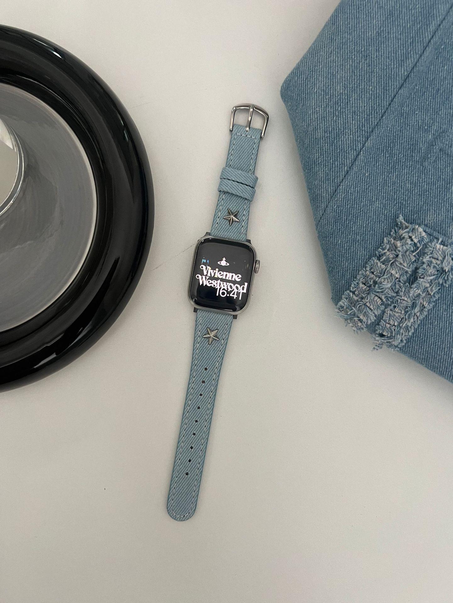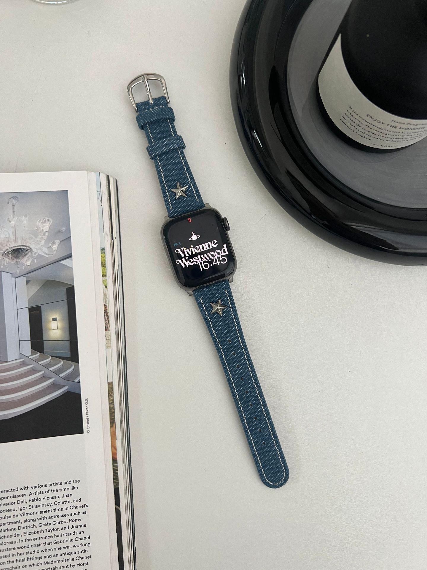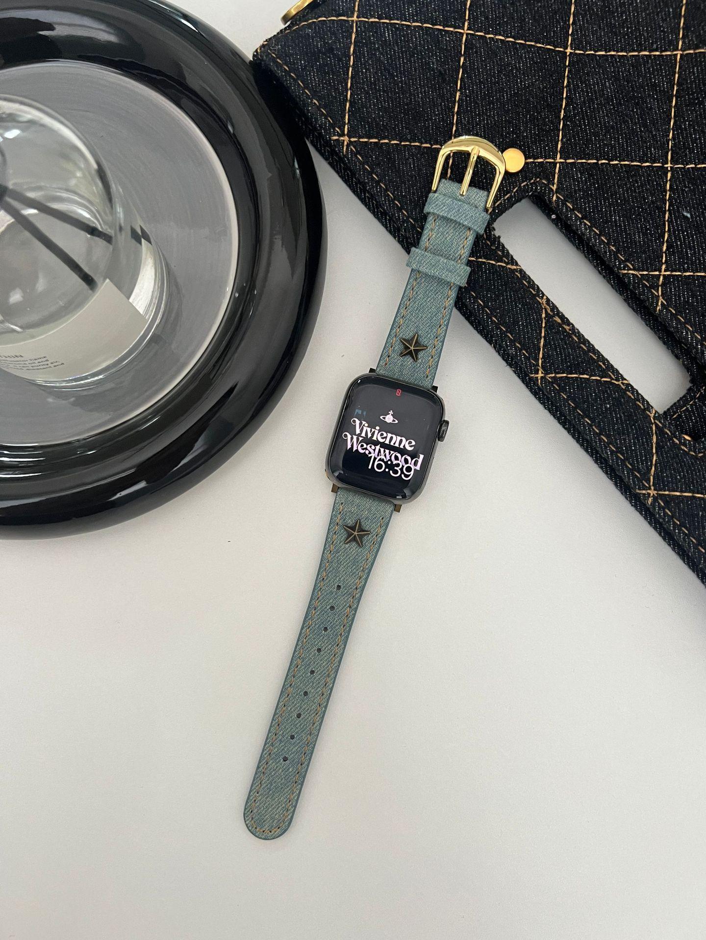 Adecuado para applewatch Apple s9 watch iwatch87 generación se remache estrella Correa de cuero denim nicho