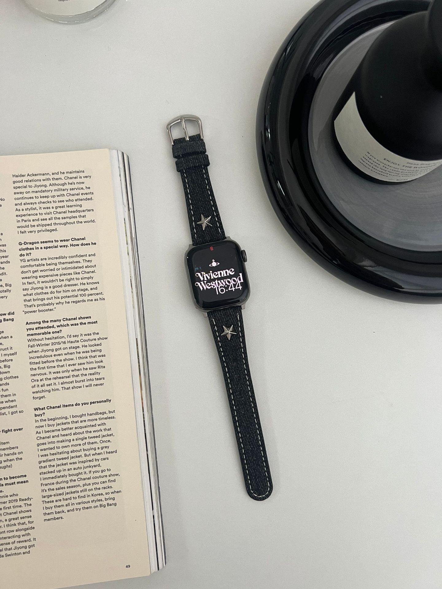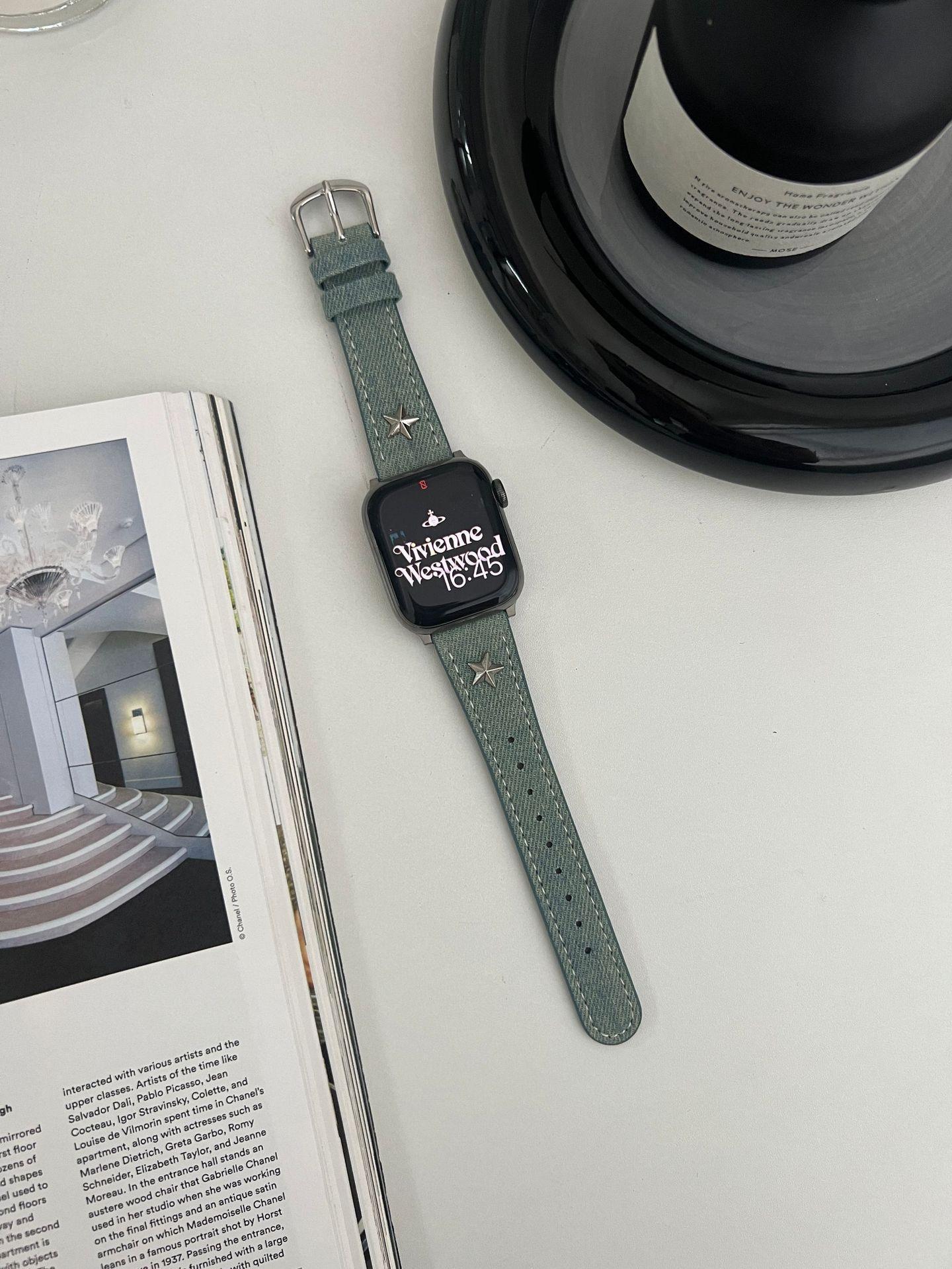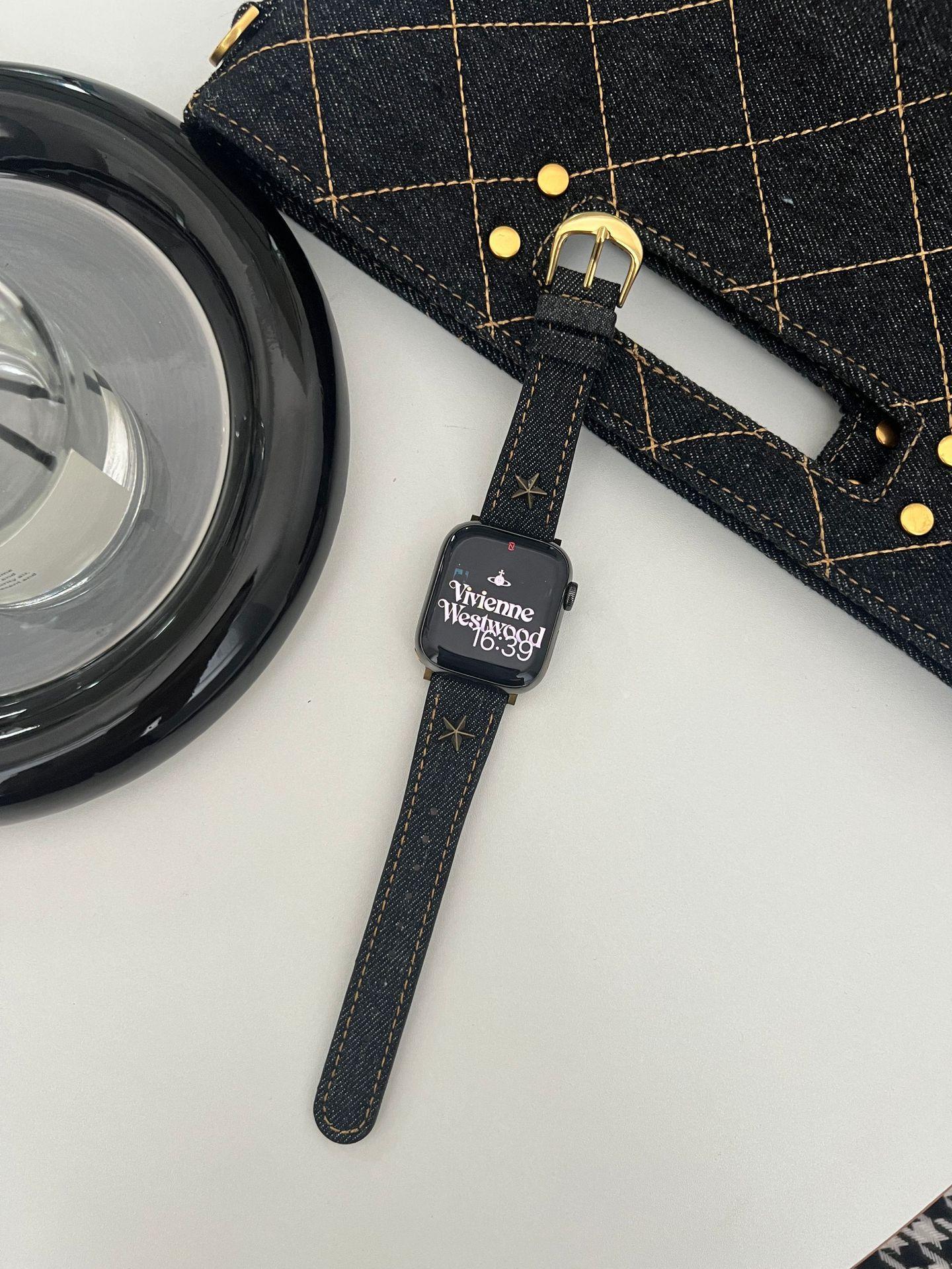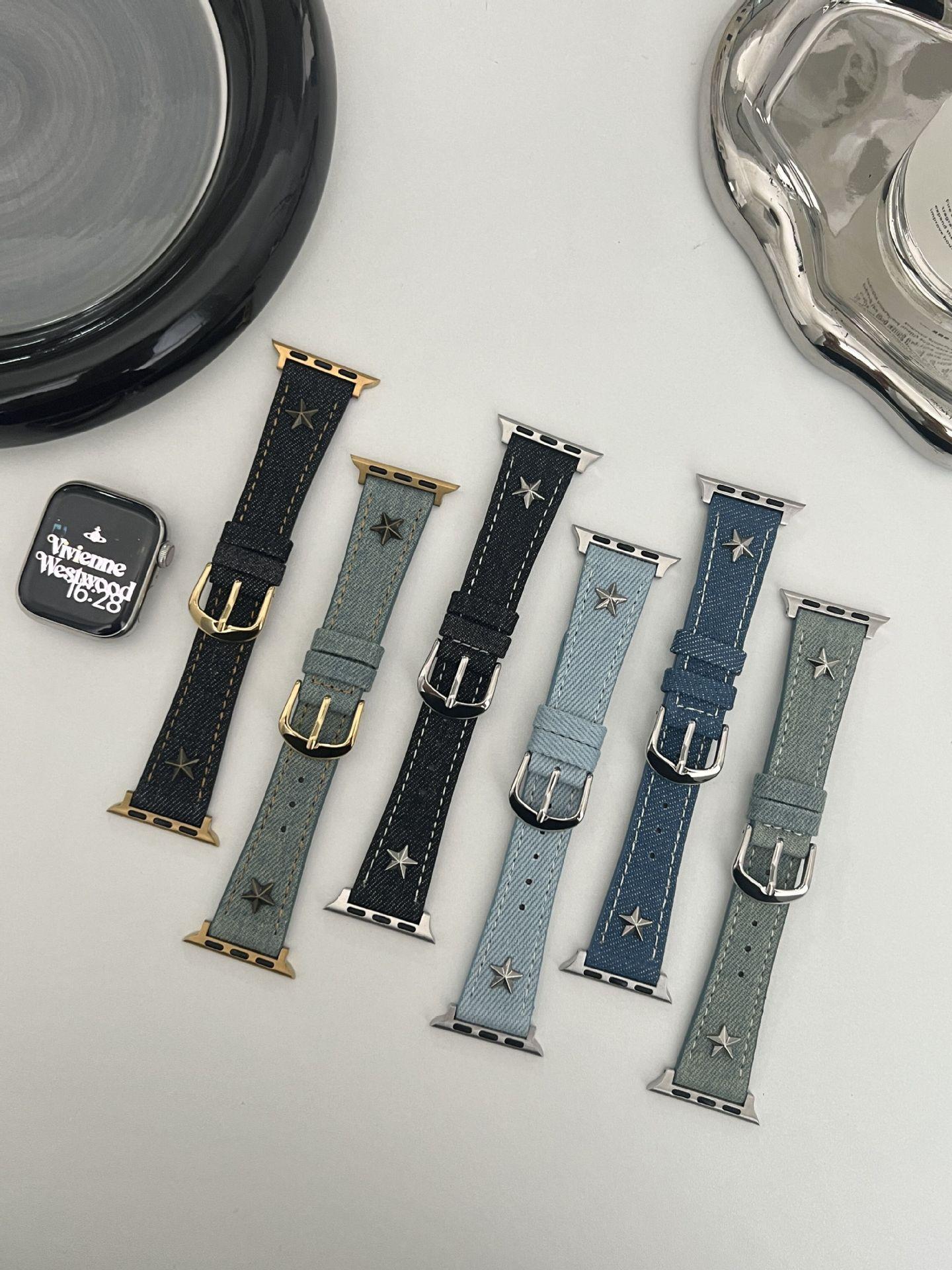 Adecuado para applewatch Apple s9 watch iwatch87 generación se remache estrella Correa de cuero denim nicho