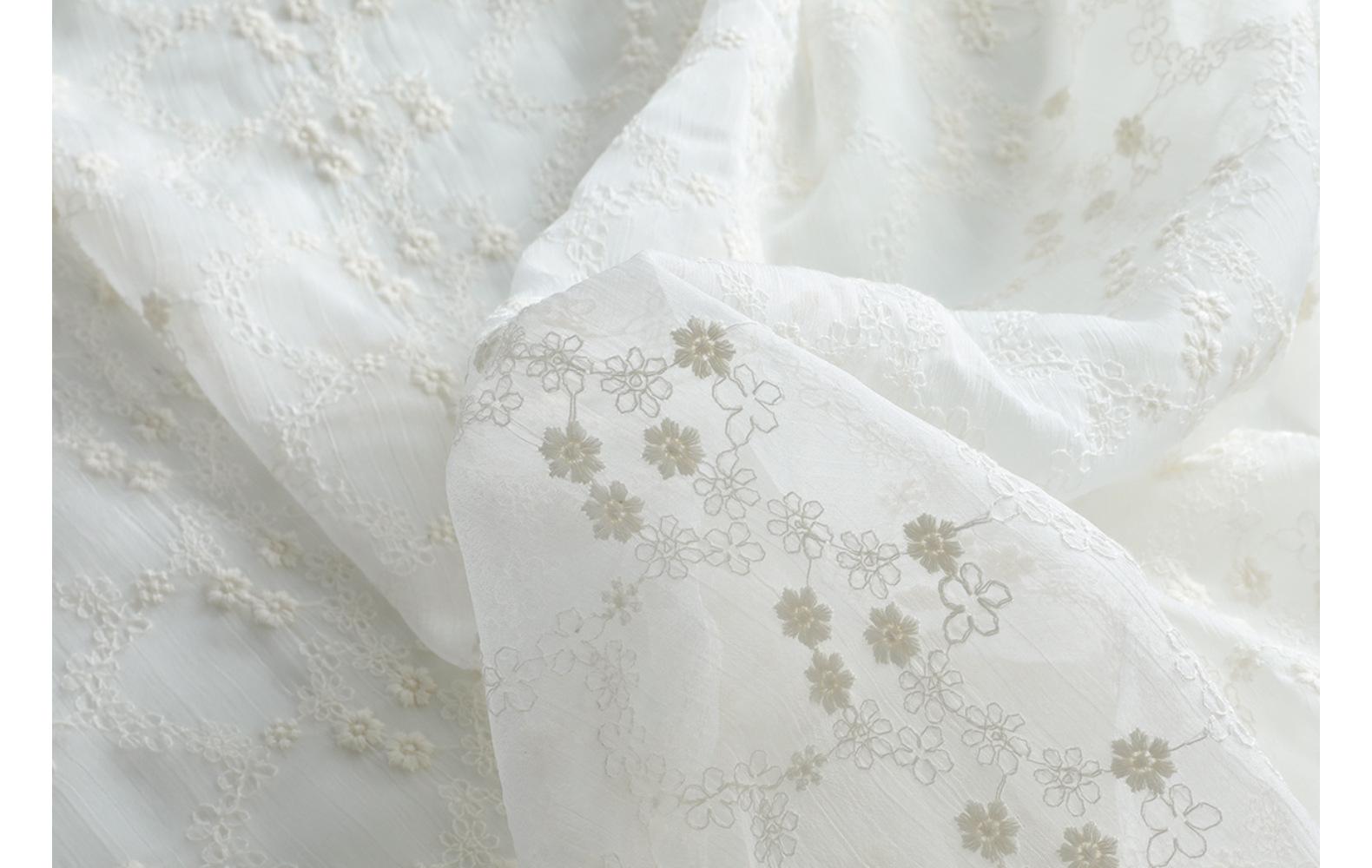 Primavera y verano nueva tela de bordado de hilo de algodón con parte inferior de gasa elegante tela de bordado de encaje francés tela de encaje para mantel