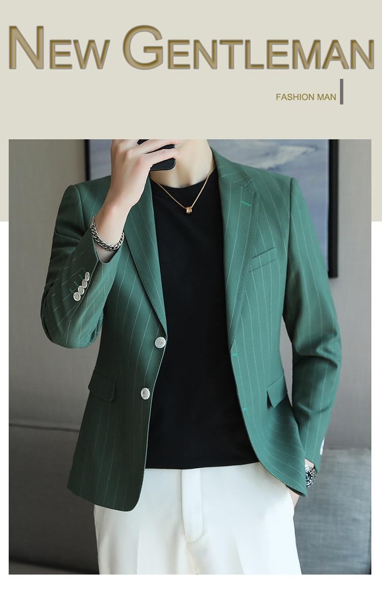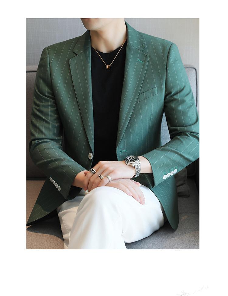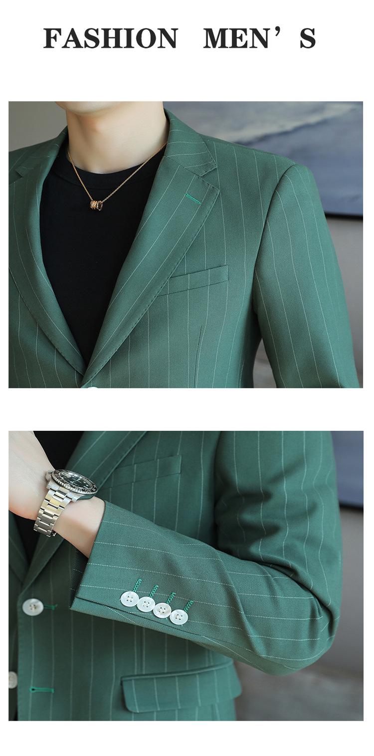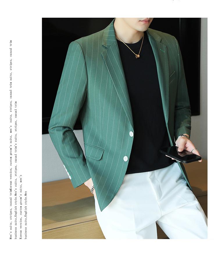 Chaqueta de traje casual verde de primavera para hombre de una generación, chaqueta de traje de negocios de rayas anchas y entallada de 2 botones