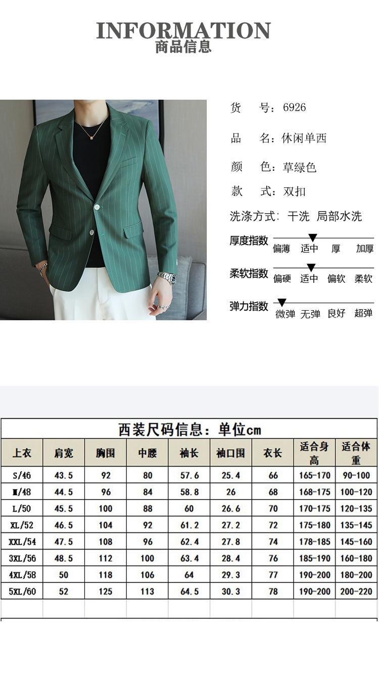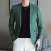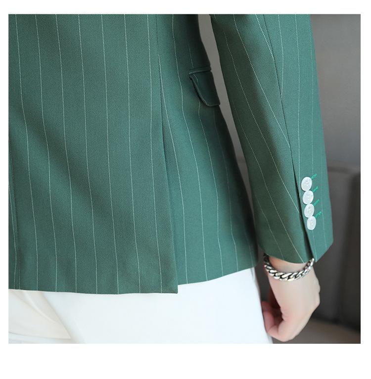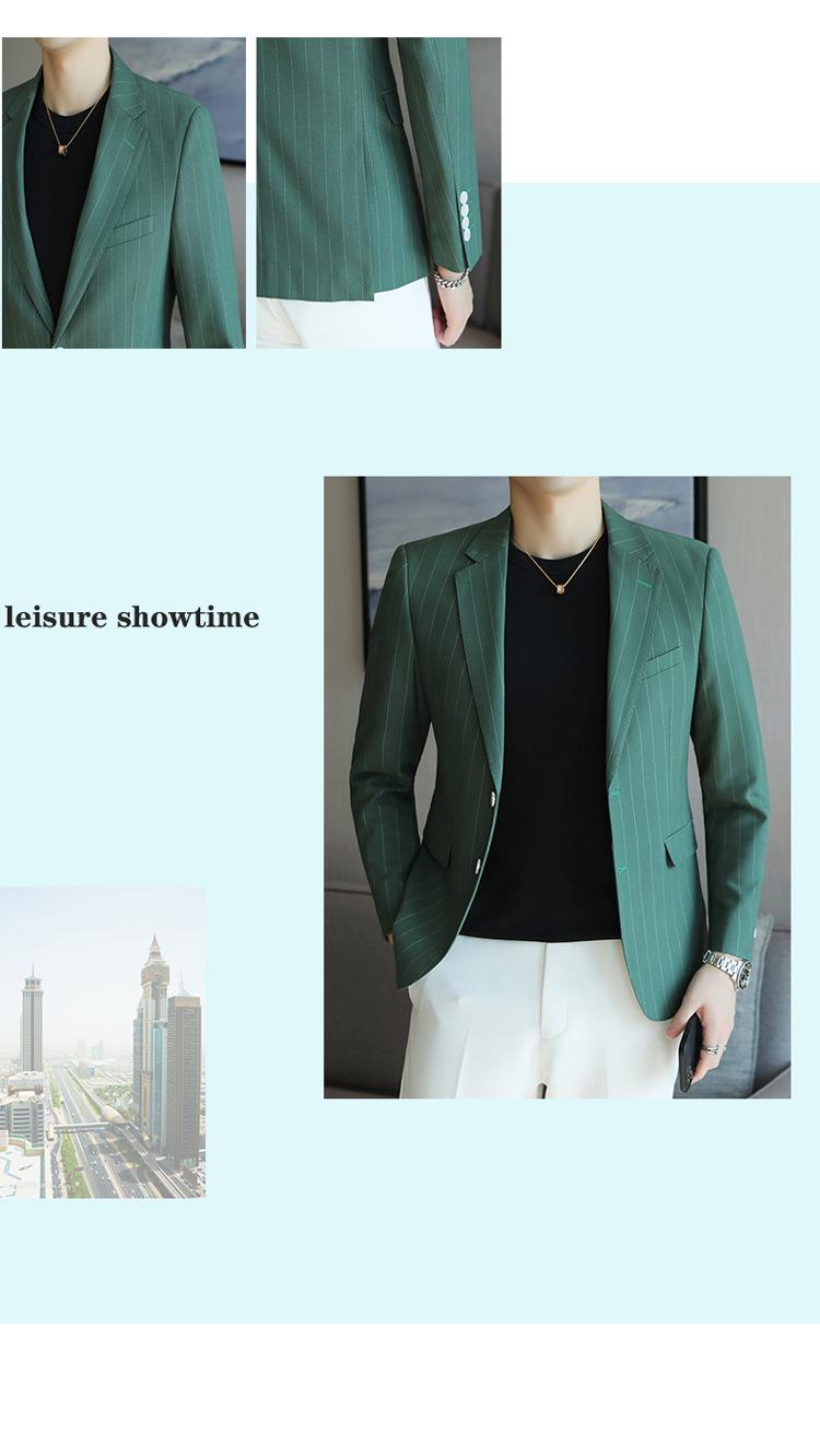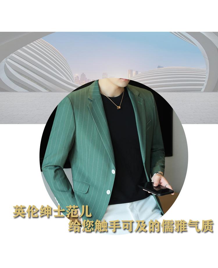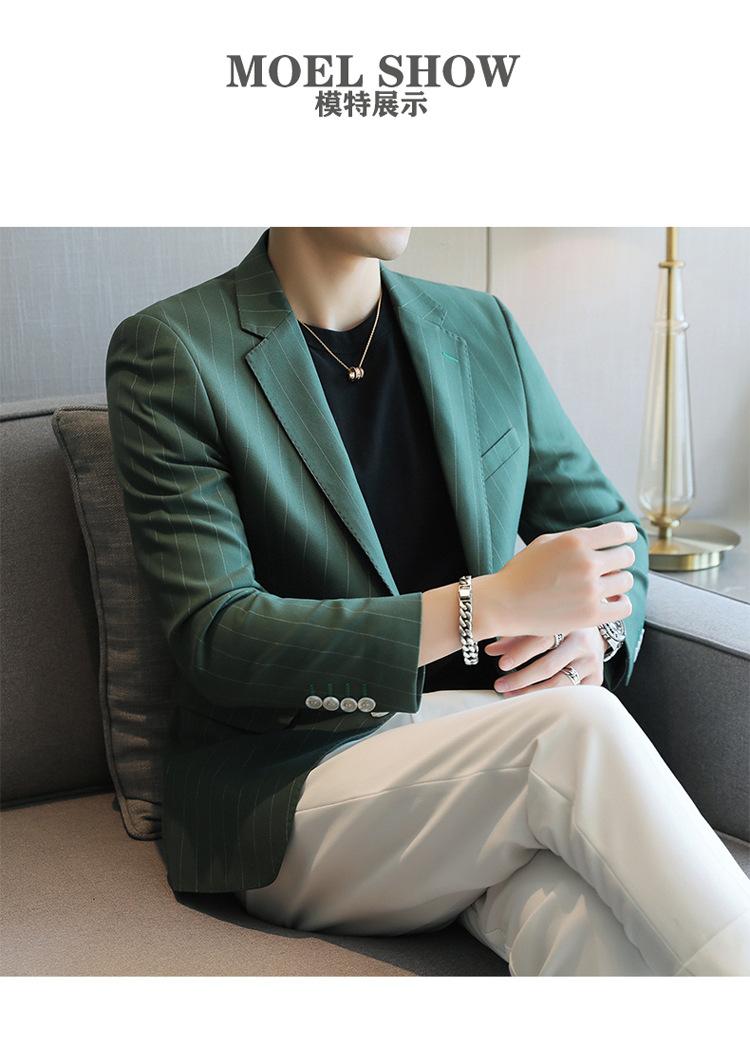 Chaqueta de traje casual verde de primavera para hombre de una generación, chaqueta de traje de negocios de rayas anchas y entallada de 2 botones