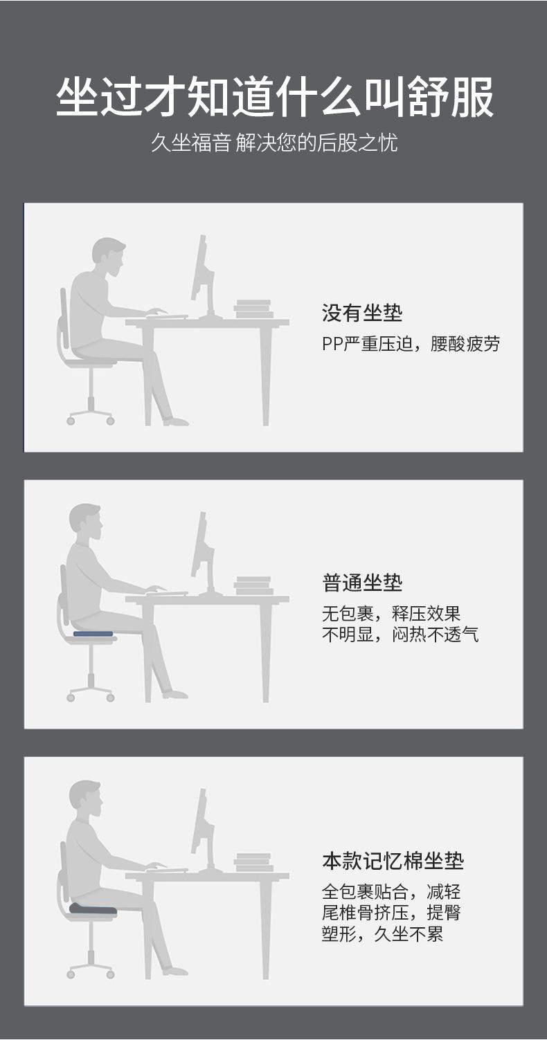 Cojín para Asiento de Coche Cojín de Asiento de Espuma Viscoelástica Cojín Recortado Cojín para Silla Hemorroides Cojín de Rebote Lento Oficina Silla Sedentaria Cojín Exportación