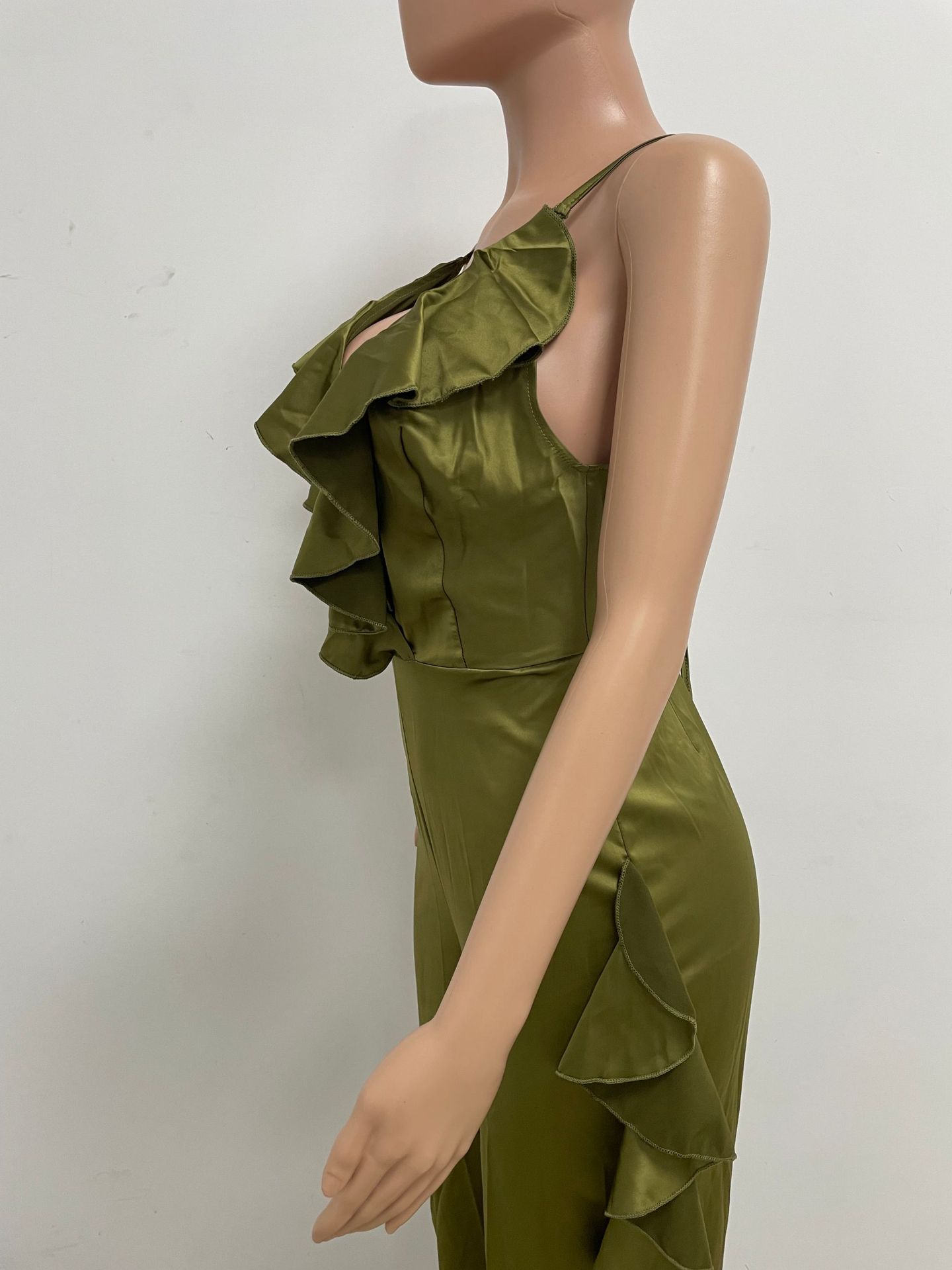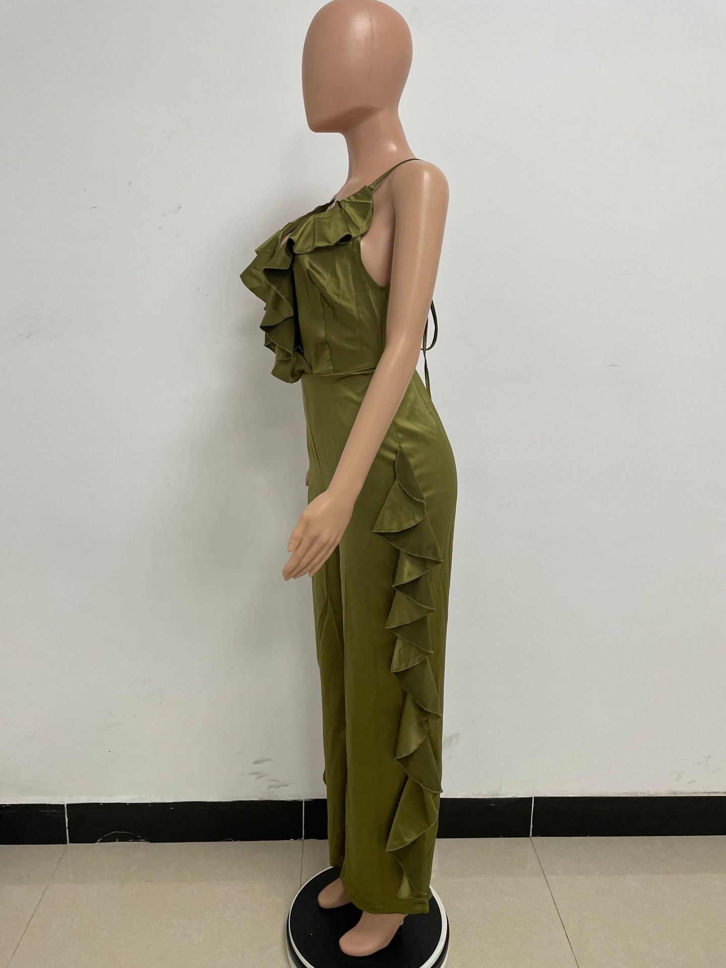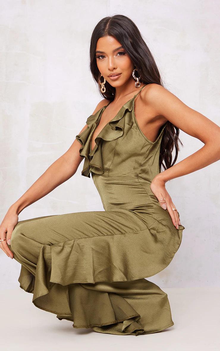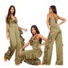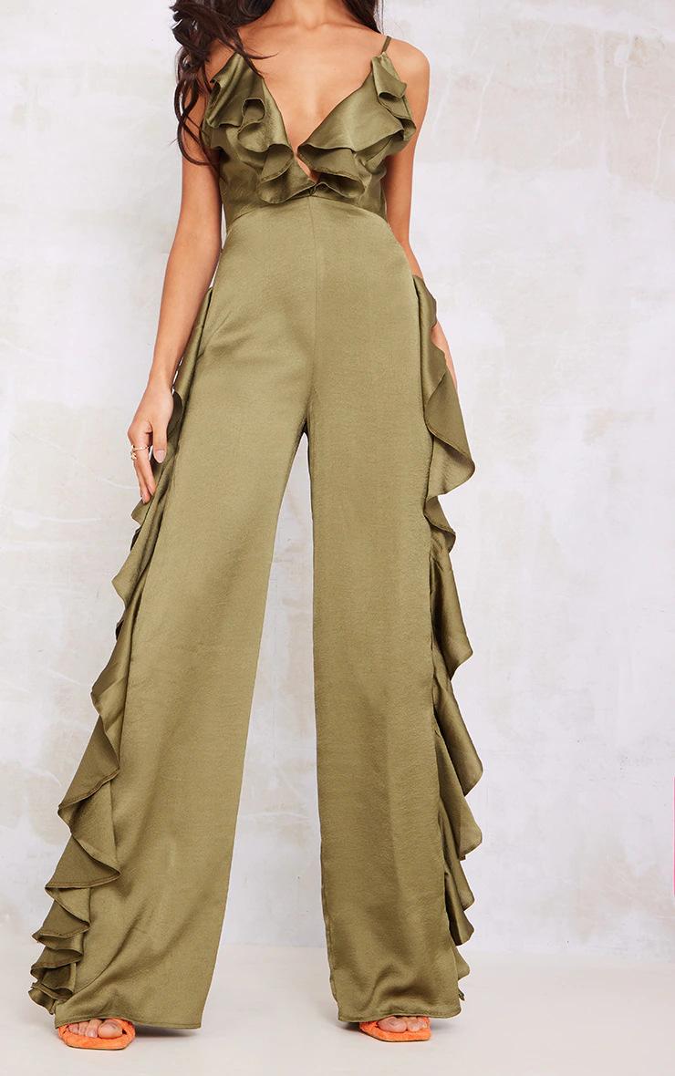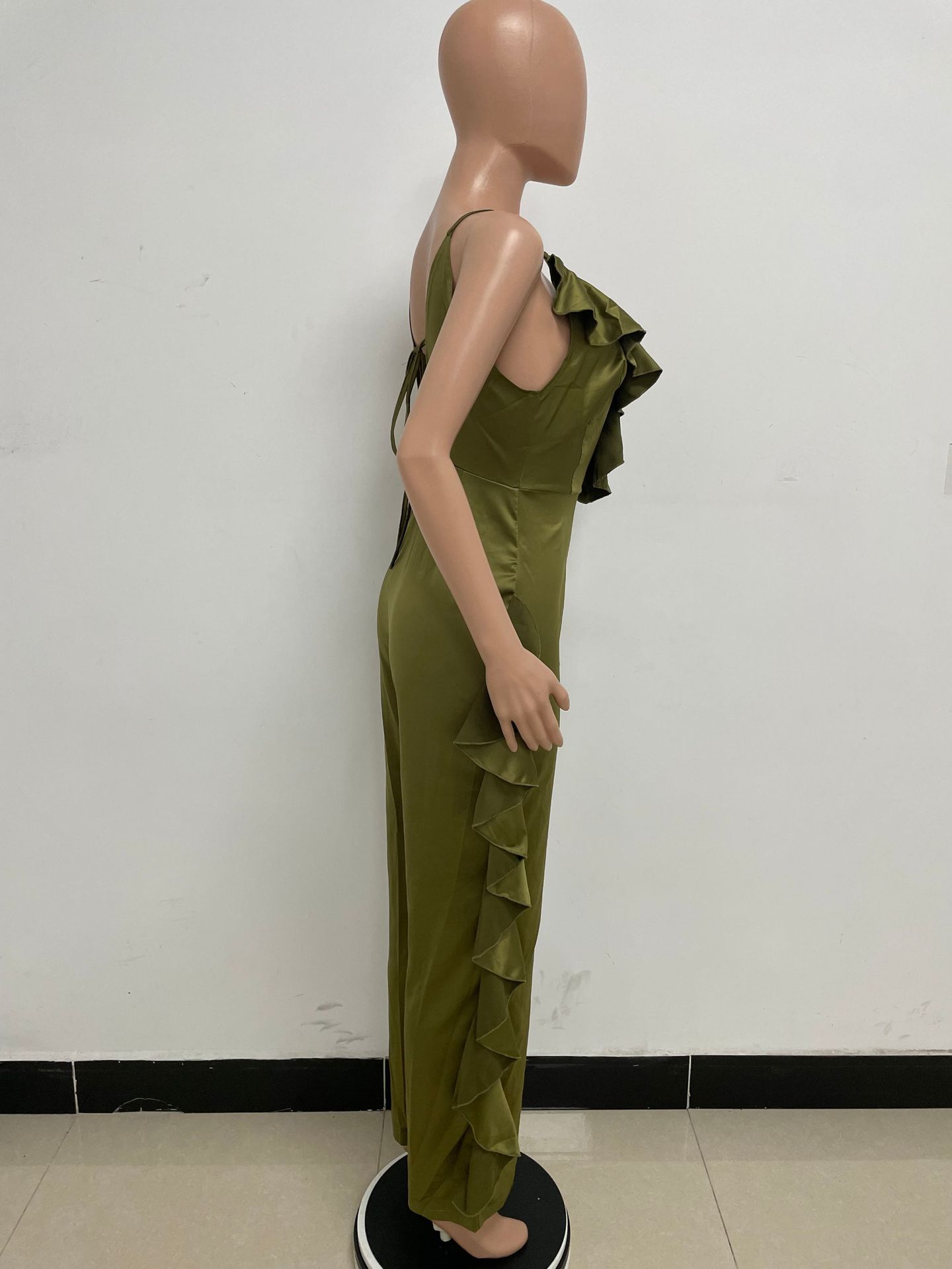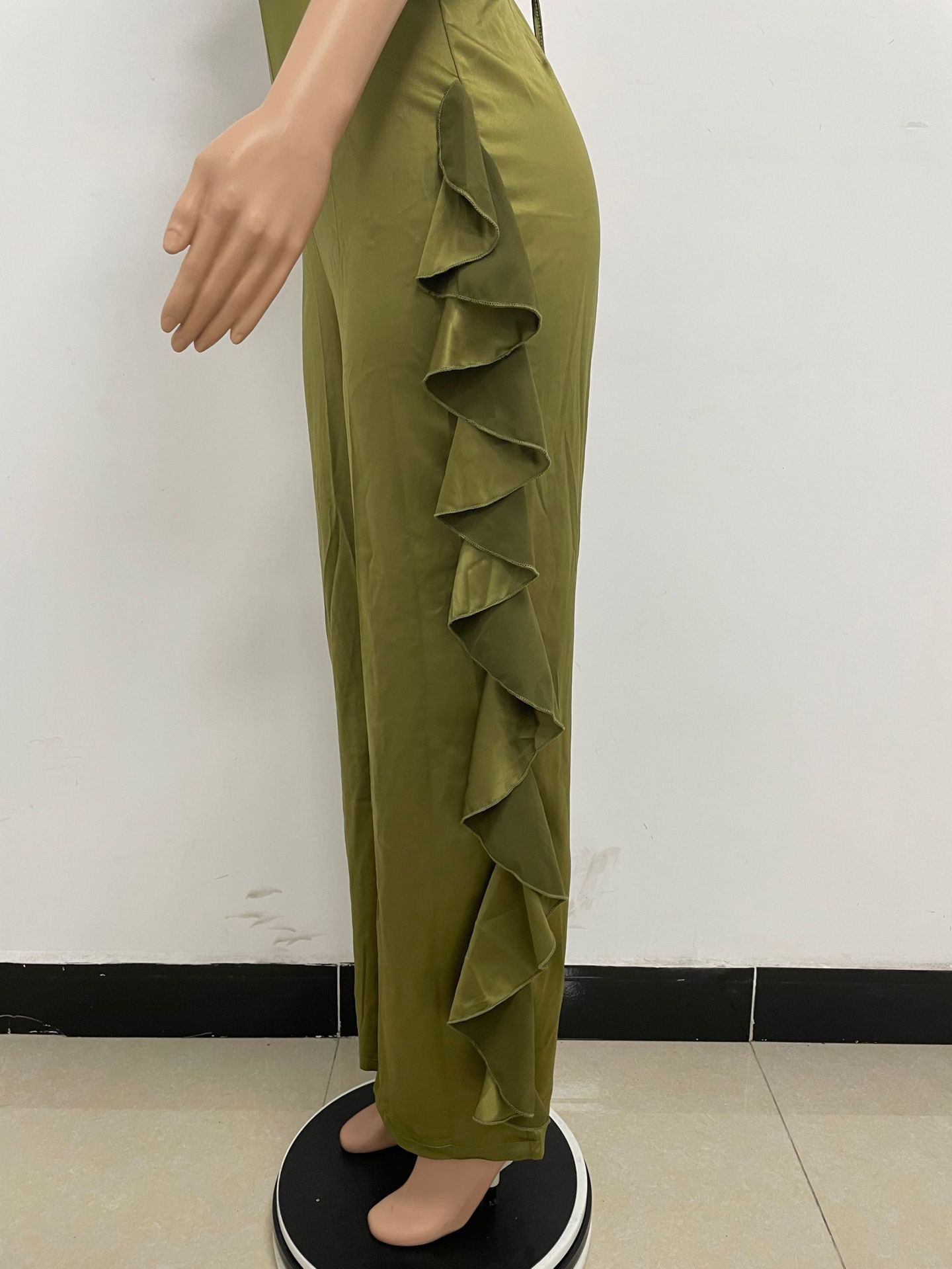 Ropa de Mujer de Comercio Exterior INS Mono de Satén con Espalda Descubierta y Escote en V Profundo para Mujer Verano Color Sólido Tirantes con Volantes Mono Europeo y Americano Mujer