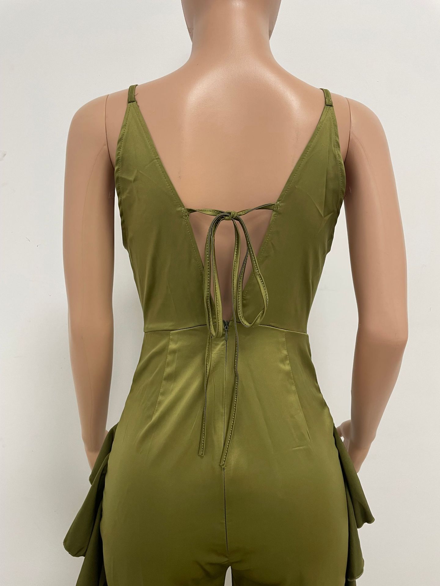 Pure color, ruffles, satin, tie back, backless, deep v, straps