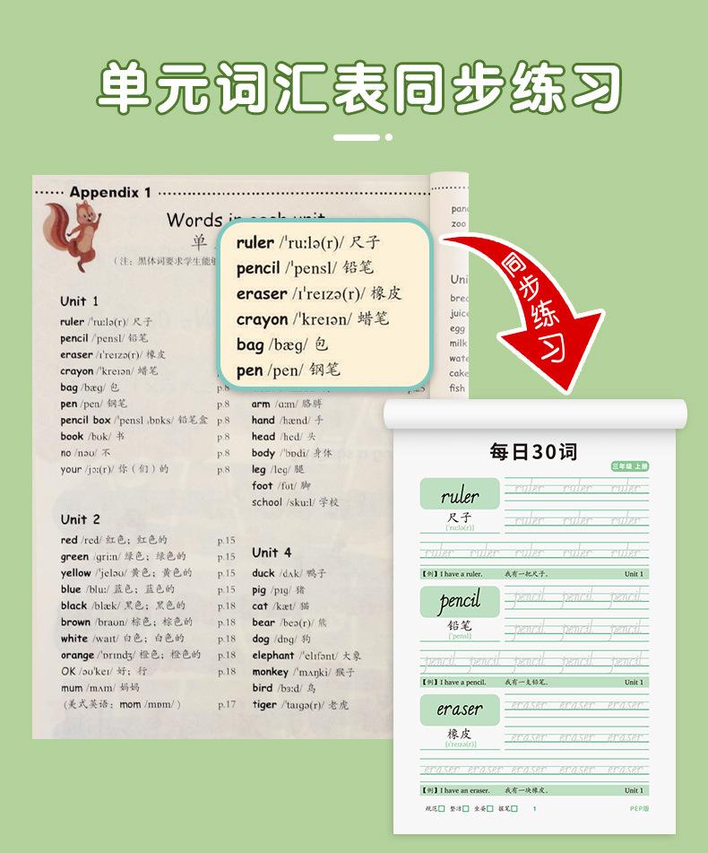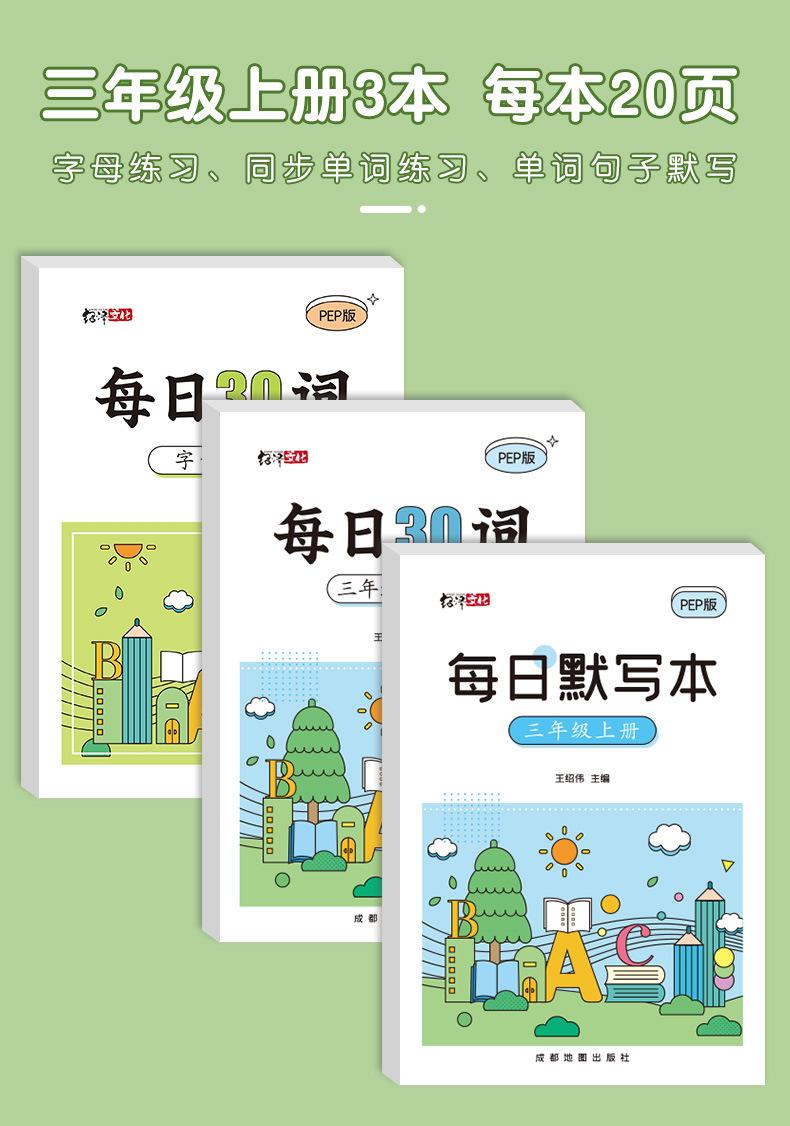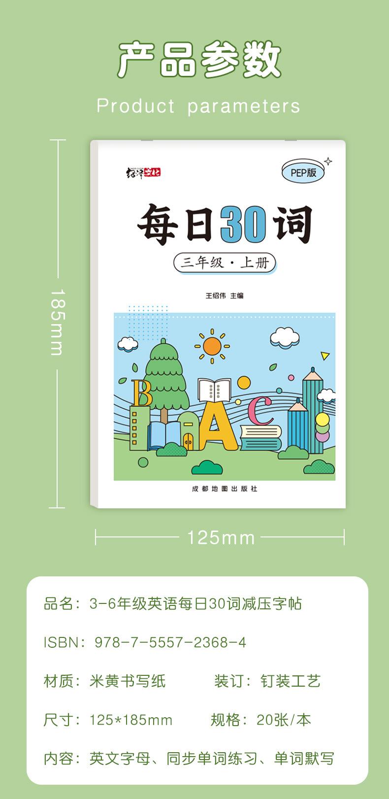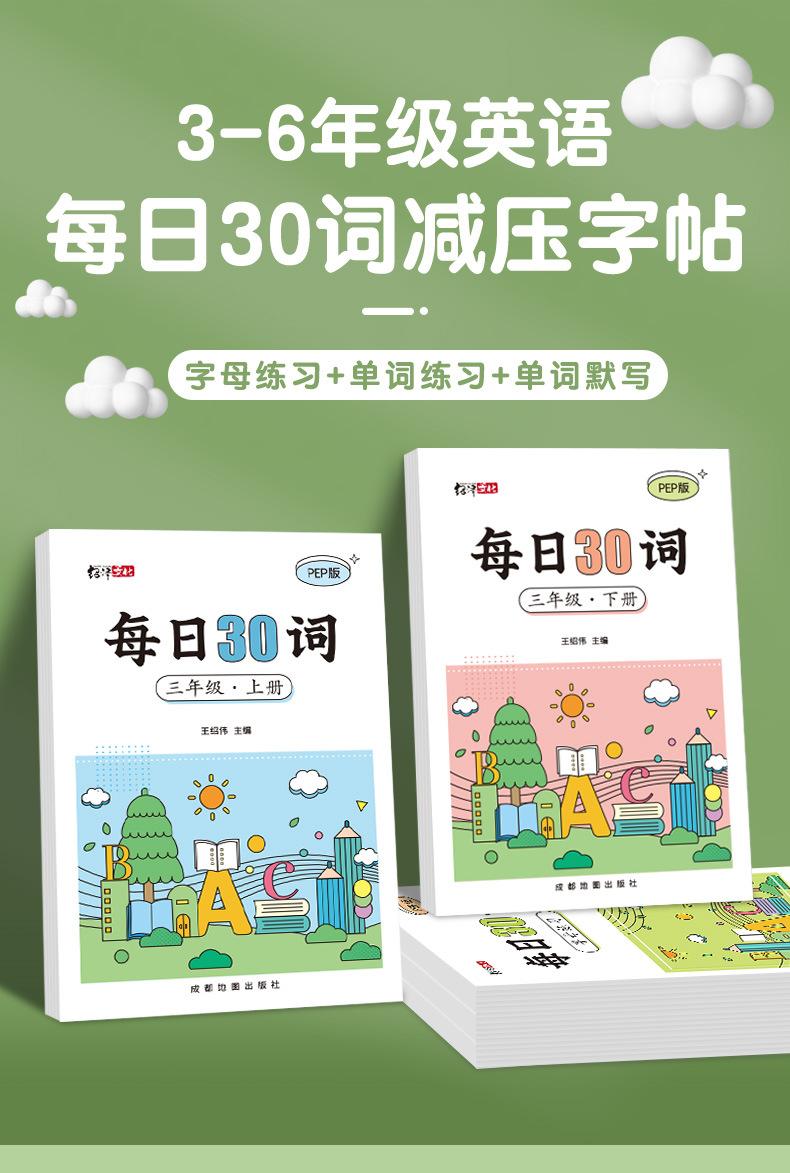 Libro de Copia de Inglés de Tercer Grado de Primaria Diario 30 Palabras Edición Educación del Pueblo Práctica Sincronizada de Palabras y Letras Libro de Copia para Práctica de Dictado