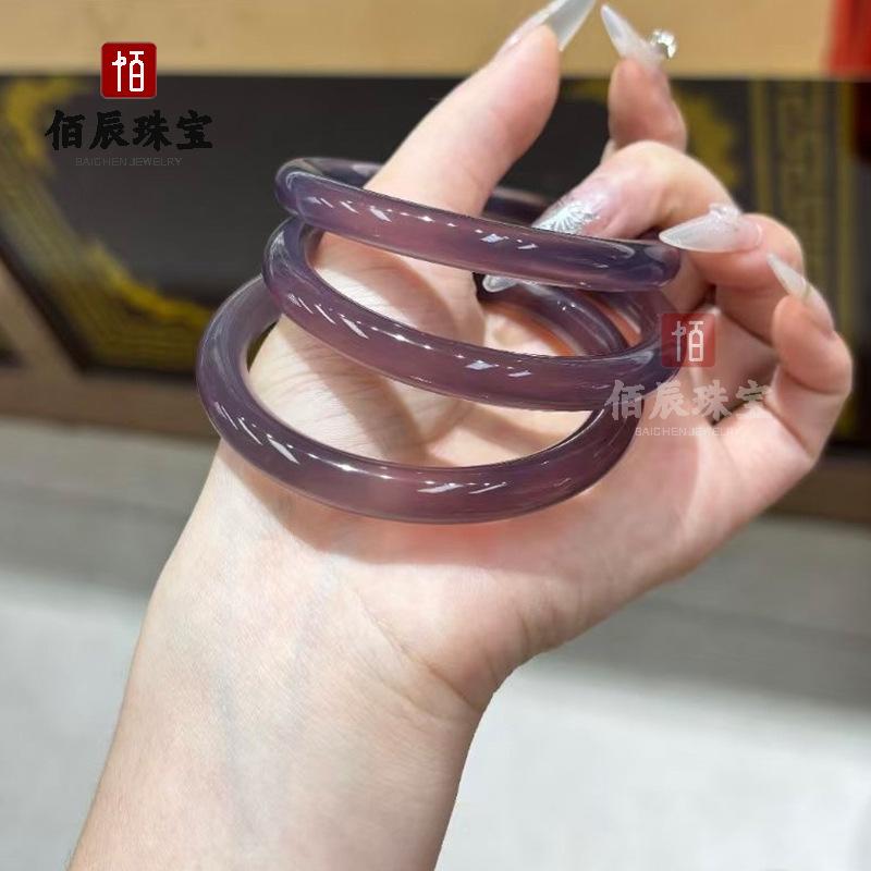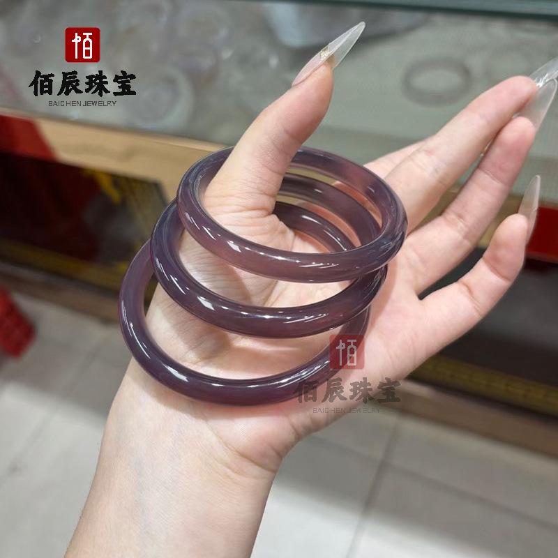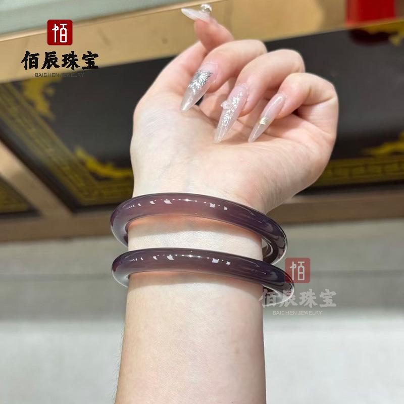 Pulsera de Ágata Calcedonia Púrpura Emperador de Hielo para Mujer Pulsera Redonda de 8 mm Pulsera de Jade Translúcido de Hielo Alto Púrpura para Regalos
