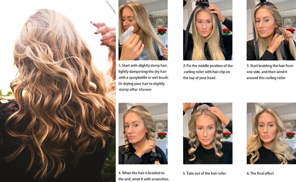 Traje Rizado sin Calor Varilla Rizadora de Cinta para Noche con Horquilla Ondas Suaves Naturales Perezosas DIY Forma Dormir de Noche