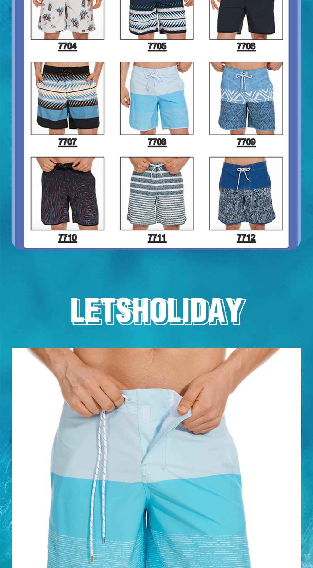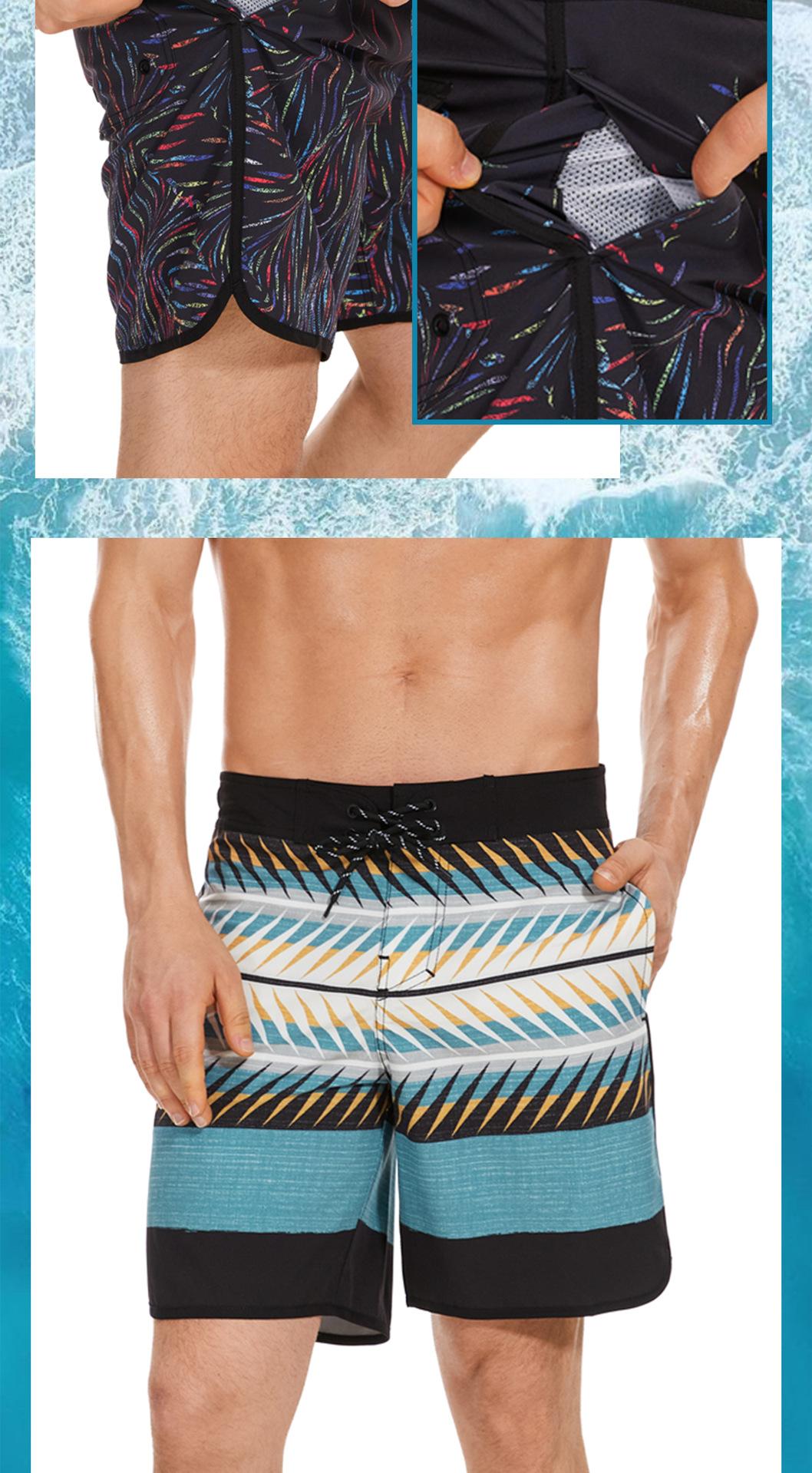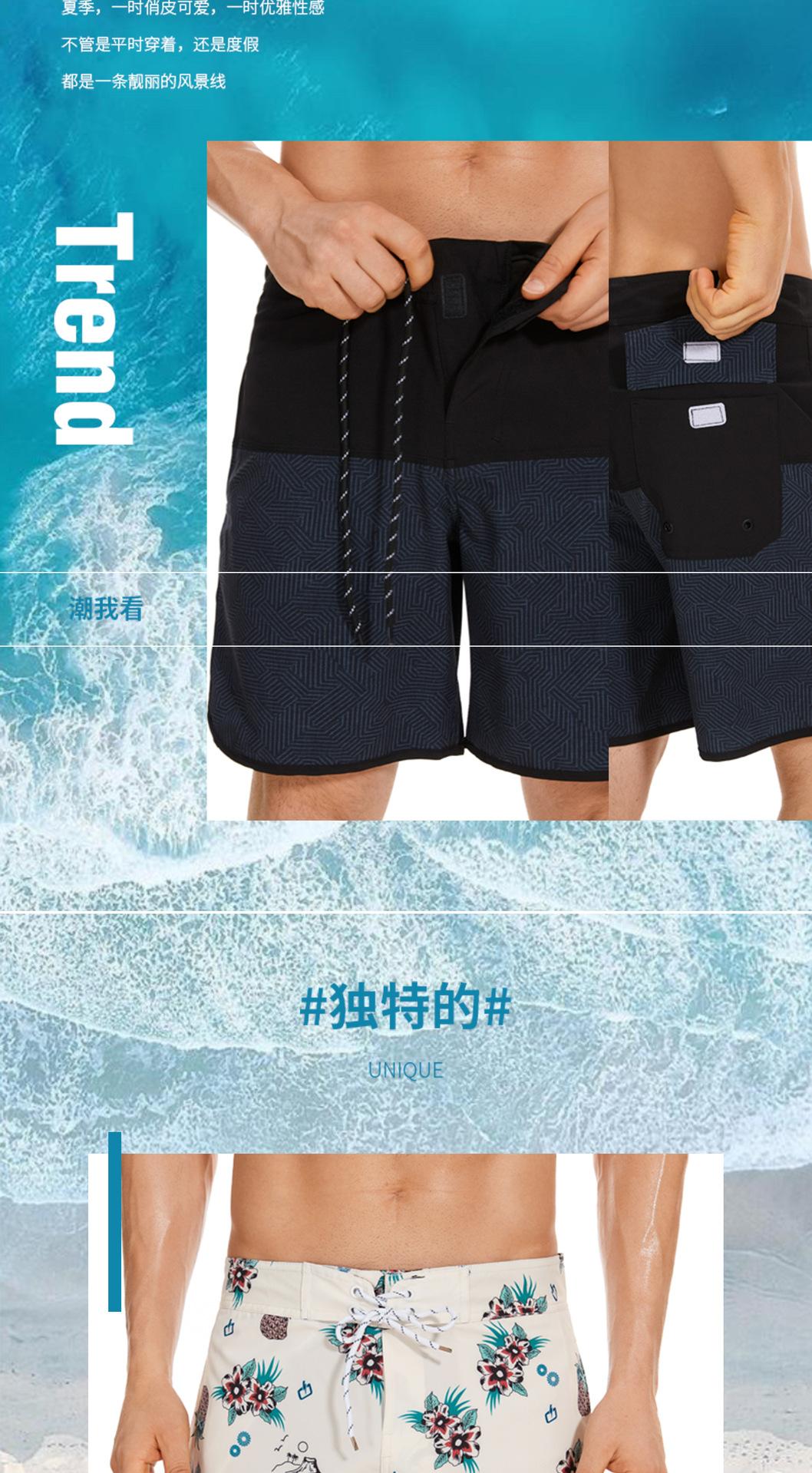Pantalones cortos para hombre transfronterizos, bañadores de secado rápido para hombre, pantalones de playa holgados a la moda con diseño estampado y múltiples bolsillos.