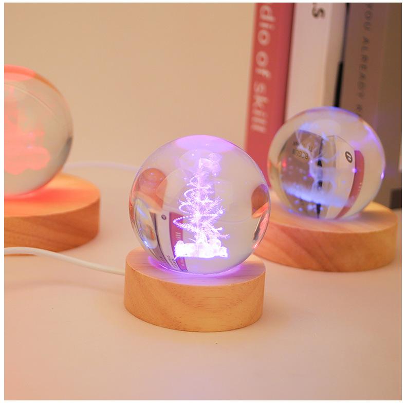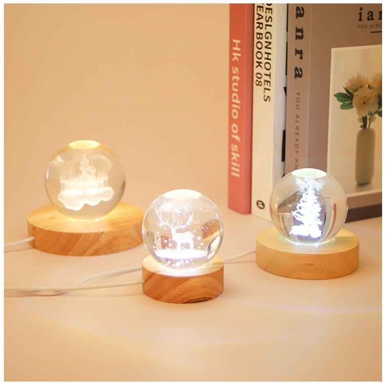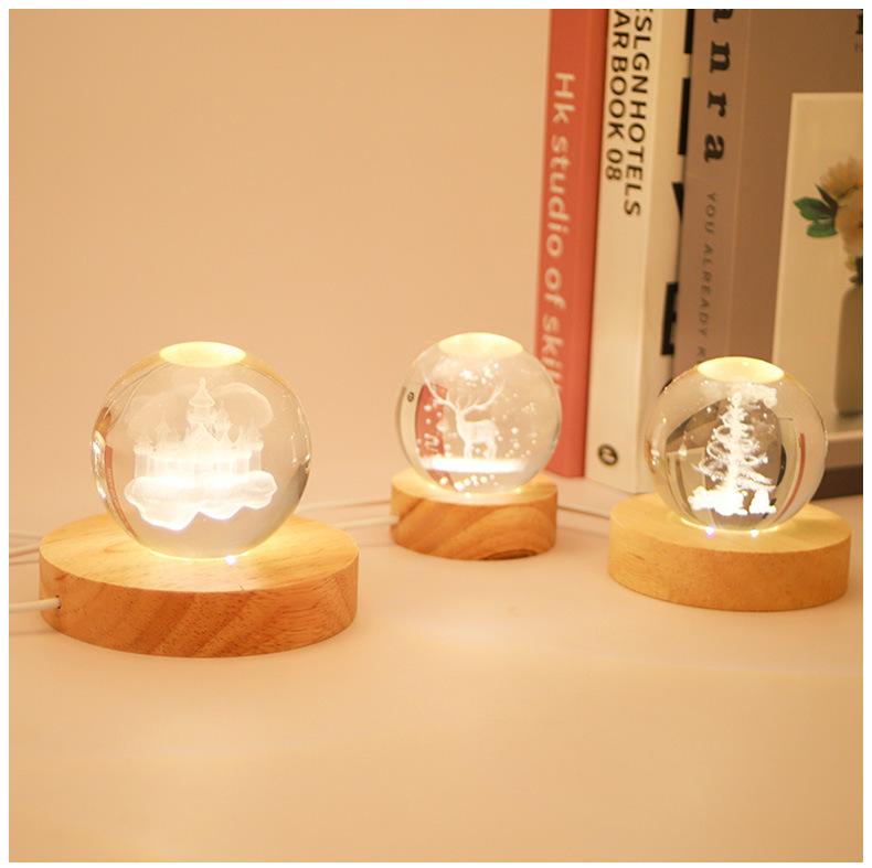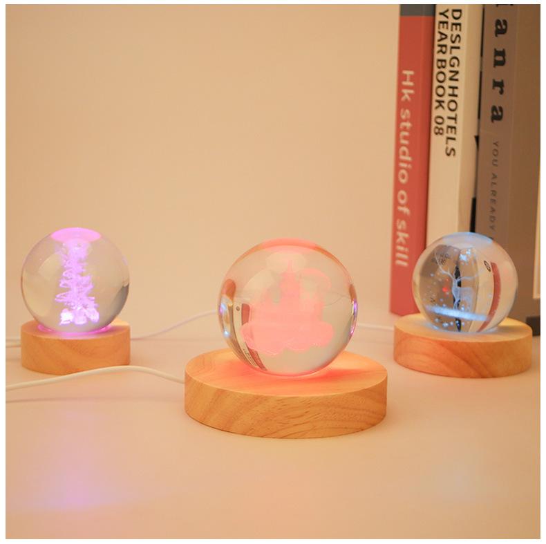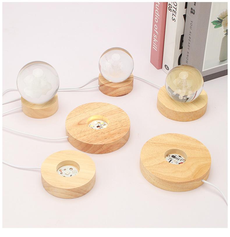 Base Luminosa de Madera Sólida Redonda Bola de Cristal DIY Luz Nocturna Decoración de Botella de Vino Pequeña Adornos LED Idea de Regalo USB