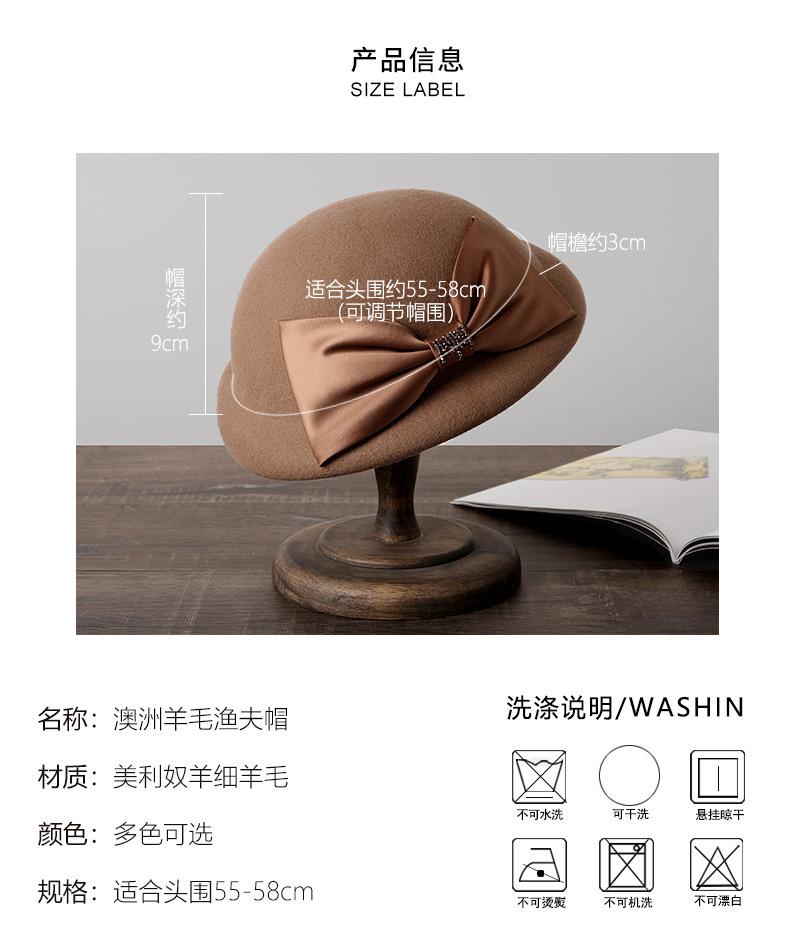 Sombrero de pescador de lana para mujer, cálido, estilo coreano, combinable, estilo británico, vintage, estilo japonés, moderno, para otoño e invierno.
