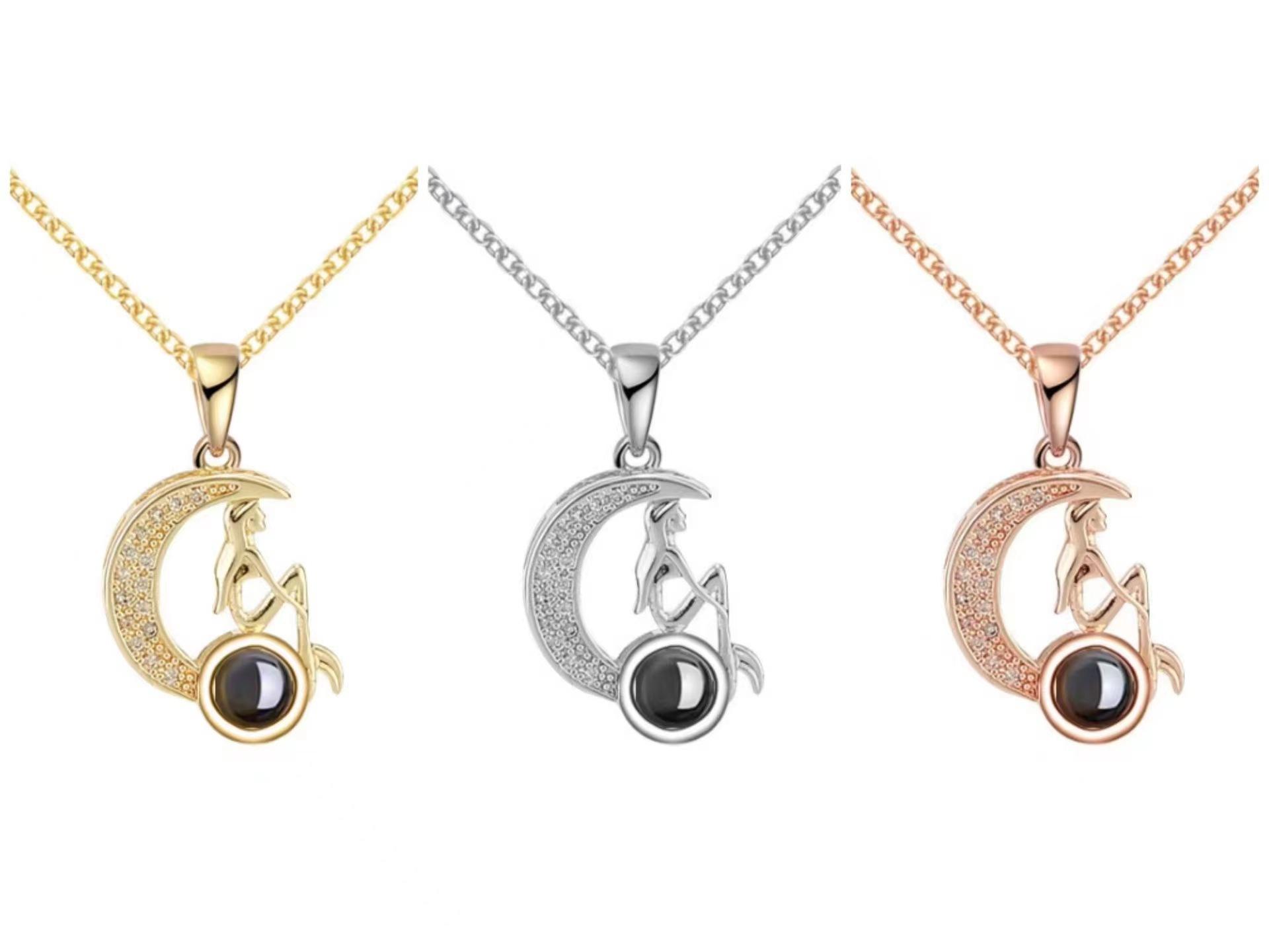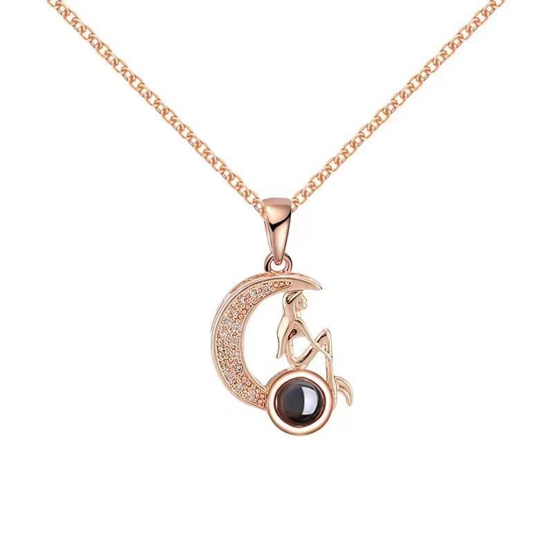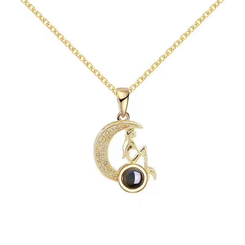 Collar de proyección de luna de venta caliente transfronterizo, cadena de clavícula para mujer, moda personalizada con incrustaciones de diamantes, joyería personalizada con foto