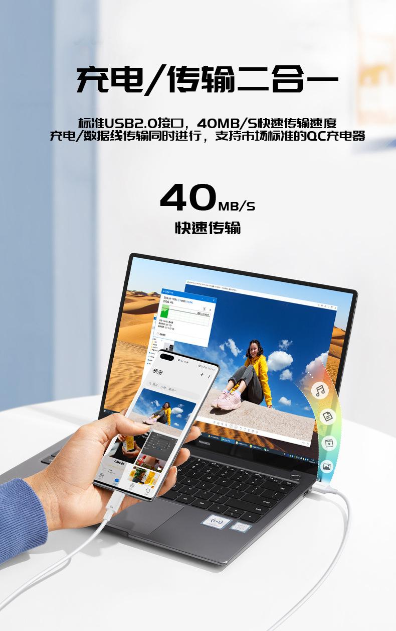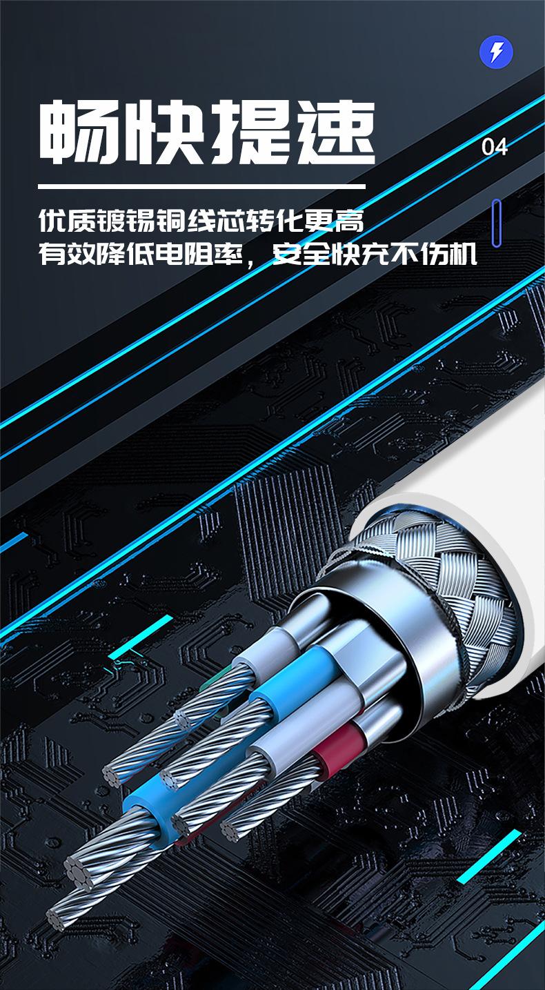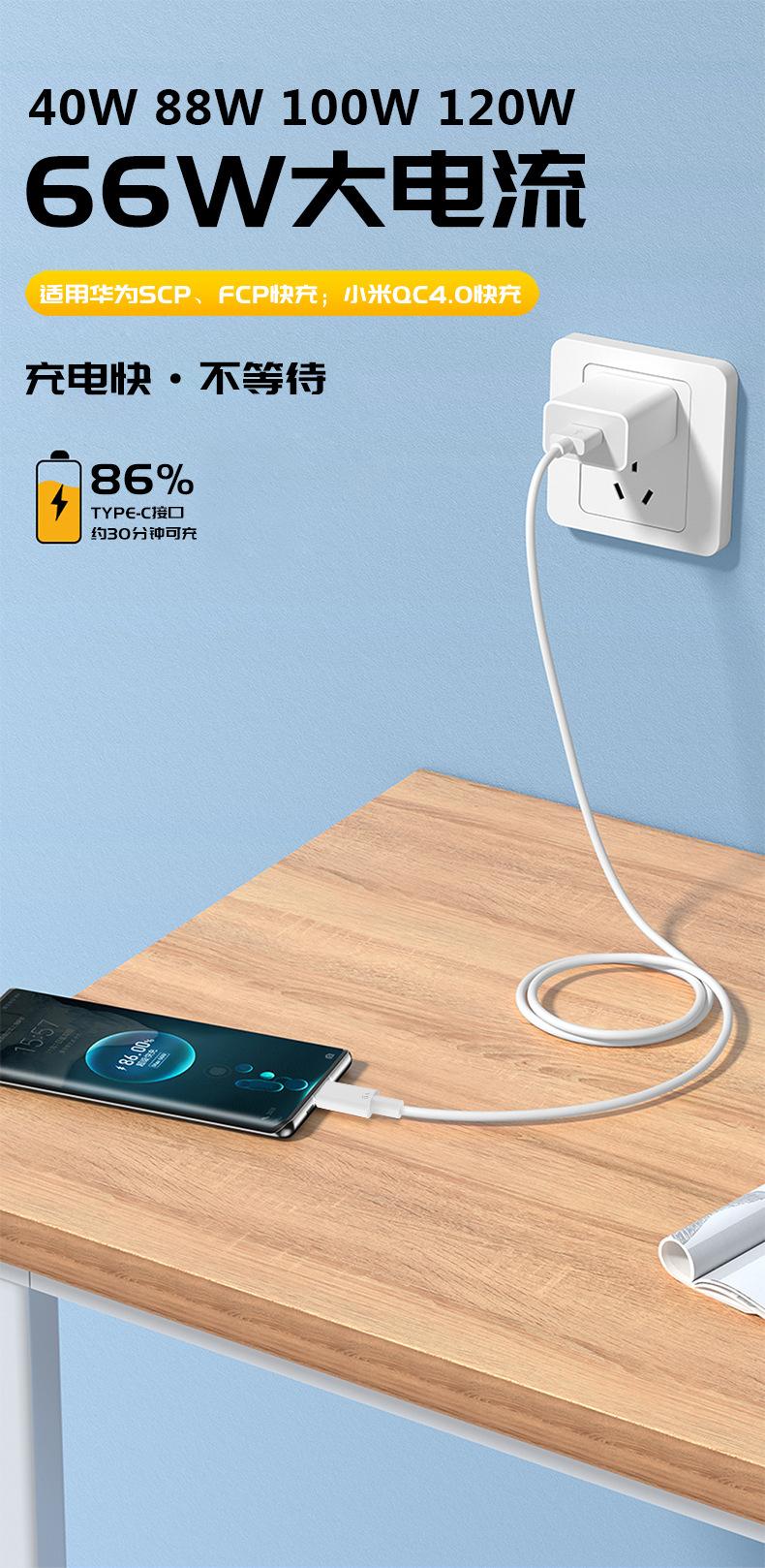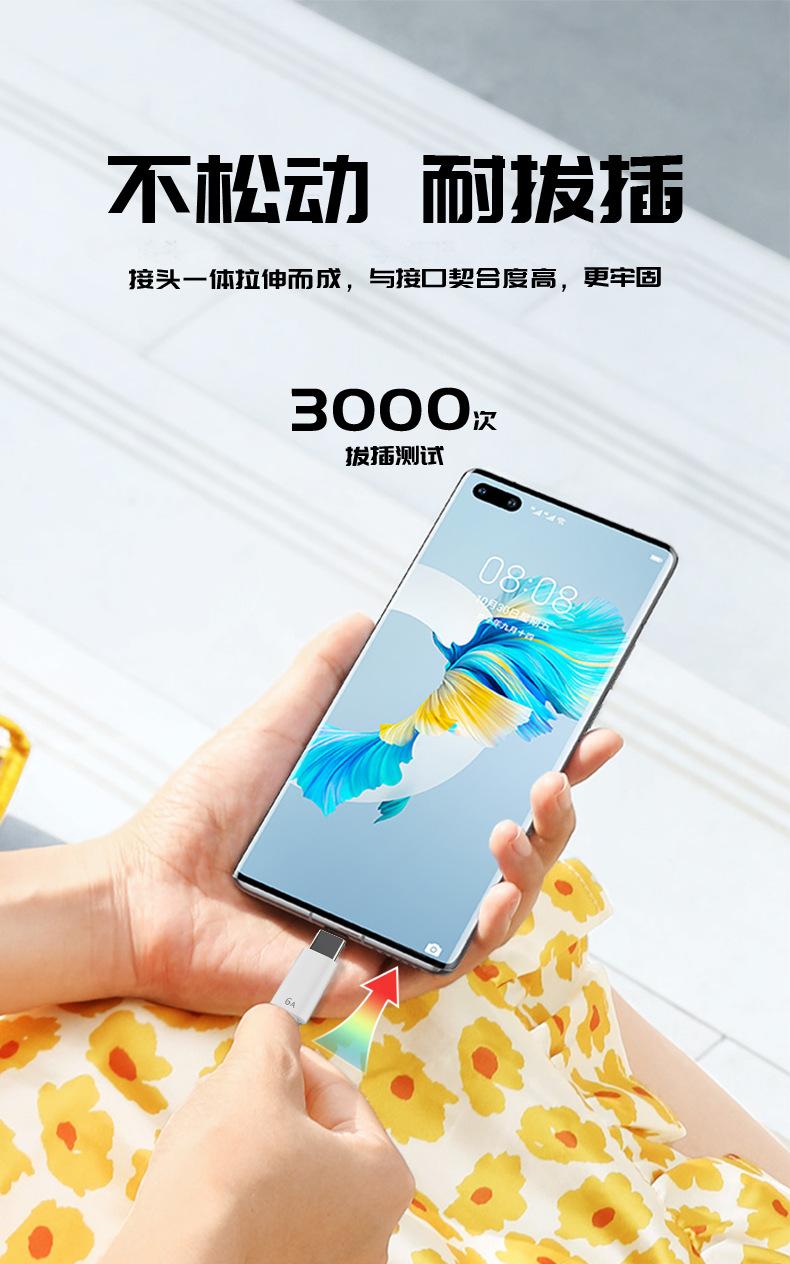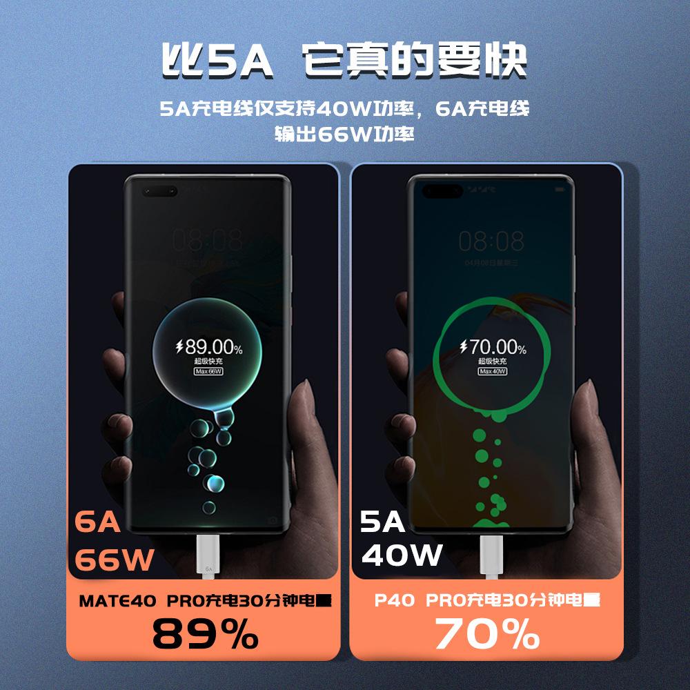 Cable 6A Huawei tipo-c especificaciones: 50 0.1 latón X2 núcleos para carga, 100 0.1 latón en total para carga; 10 0.1 latón X2 núcleos para datos, 20 0.1 hilos de cobre en total, cubierta exterior de TPE, diámetro del cable OD3.8mm, moldeo por inyección en ambos extremos, doble película interior, cabezal de moldeo por inyección de goma TPE, terminal A macho alta corriente + tipo-c cabezal integrado elástico doble resistencia, núcleo de goma naranja.